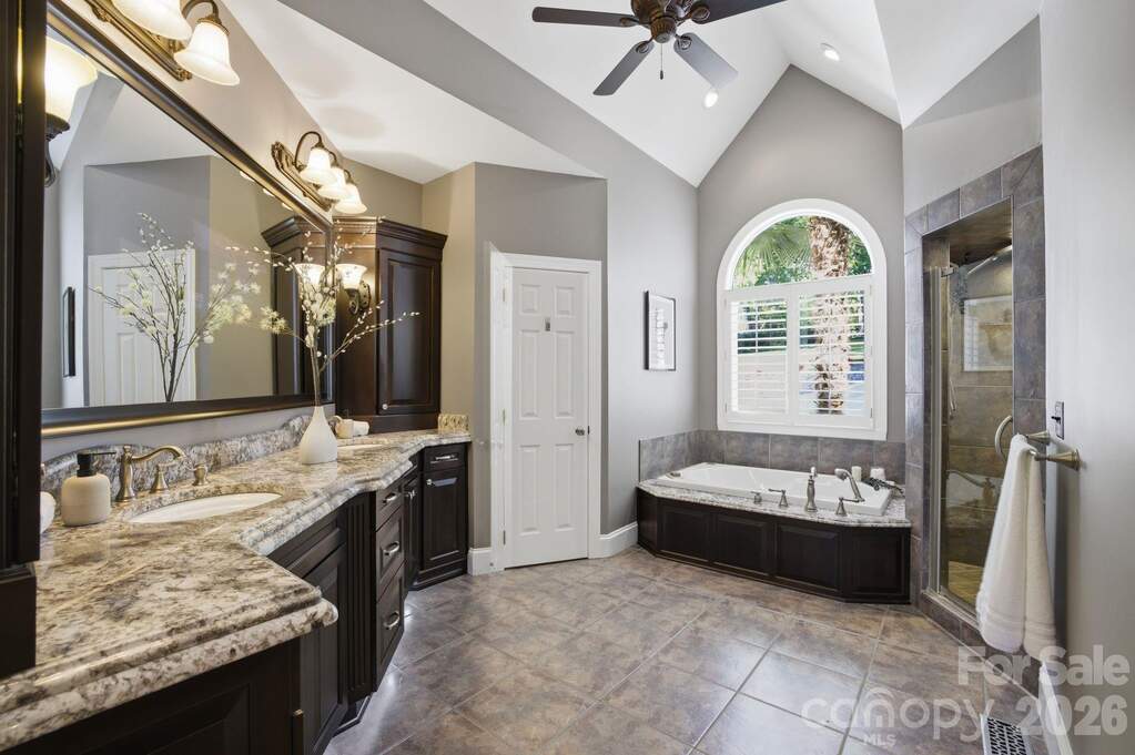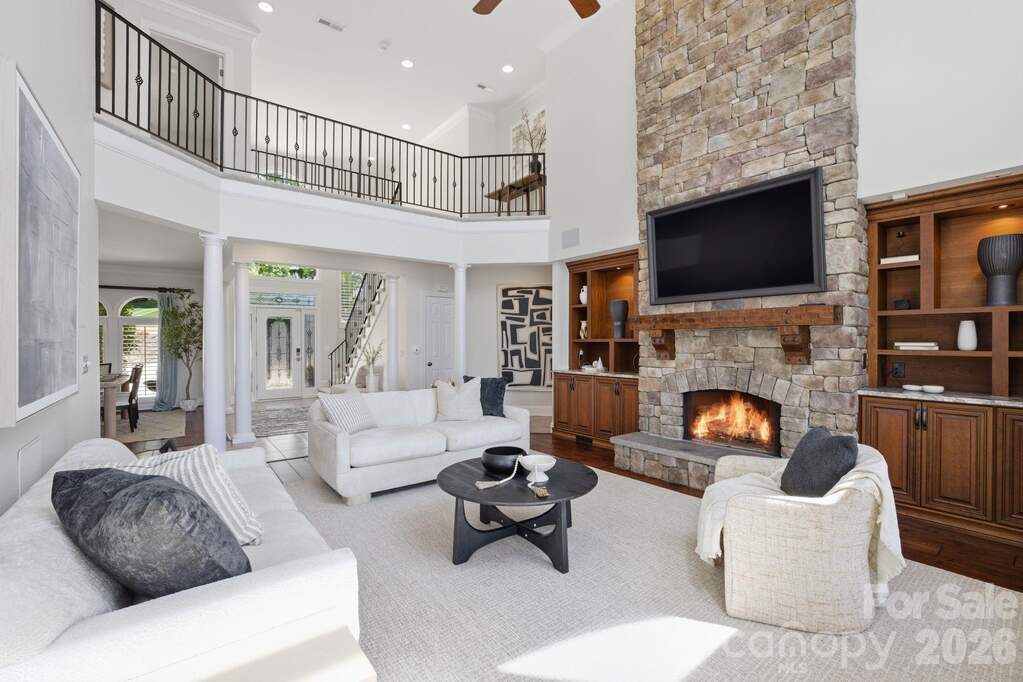Positioned on nearly an acre along the shores of Lake Norman, this exceptional waterfront estate is thoughtfully oriented to capture breathtaking west-facing sunset views. A rarity among homes on the lake, this premier positioning creates a seamless connection to the outdoors, filling the interiors with natural light throughout the day and culminating in unforgettable sunsets each evening. Spanning over 4,700 square feet, the home offers five bedrooms and a thoughtfully designed layout ideal for both everyday living and elevated entertaining. The main level begins with a grand two-story foyer that opens into an impressive great room with soaring ceilings, a stone fireplace, and custom built-ins, all overlooking the lake. A formal dining room with arched windows flows seamlessly into a well-appointed kitchen featuring premium appliances, generous cabinetry, and a central island, along with an inviting breakfast area. The main-level primary suite serves as a private retreat with a lounge area, spa-inspired bath, expansive custom closet, and direct access to the covered outdoor patio. A spacious laundry room and effortless indoor-outdoor flow complete the main level. Upstairs, three well-appointed guest suites offer comfortable accommodations, complemented by two full bathrooms and flexible living space. The lower level is designed for entertaining and relaxation, featuring a large entertainment room with fireplace and bar, along with an additional bedroom, a secondary living area, and a full bath. A covered patio extends the living space outdoors, leading to the resort-style pool and landscaped grounds. Outdoor living is equally compelling, with multiple covered terraces, integrated audio, heaters, and a fire pit. All thoughtfully positioned to take full advantage of the home's western exposure and stunning sunset backdrop. The private dock with dual boat lifts and a covered lounge creates the ultimate lakefront experience, offering front-row seats to some of Lake Norman's most picturesque evenings. Additional highlights include both an attached two-car garage and a detached two-car garage, along with extensive upgrades throughout. Located in the heart of Mooresville, just minutes from dining, shopping, and marinas, this home offers a rare blend of luxury, functionality, and truly exceptional west-facing sunset views over Lake Norman.