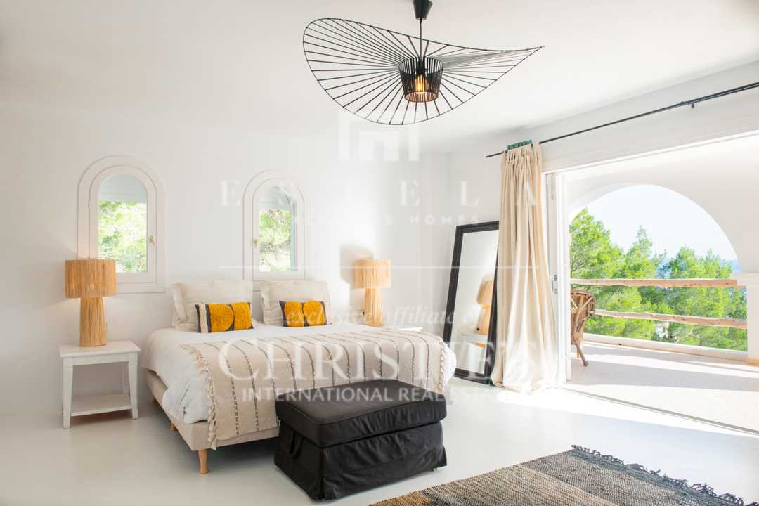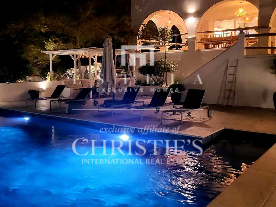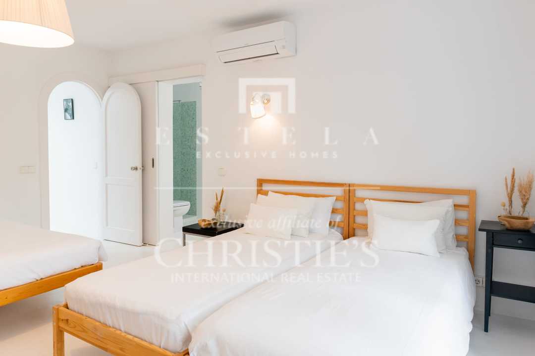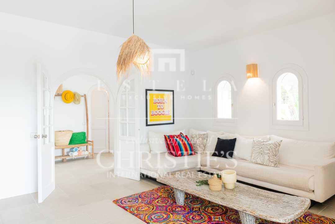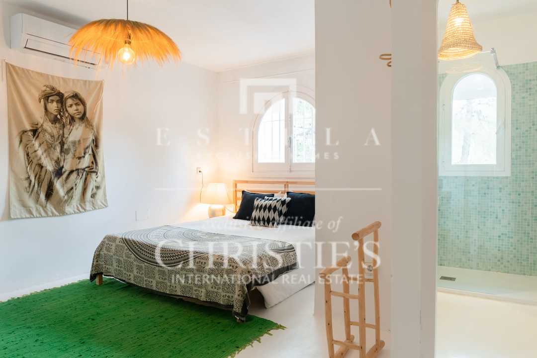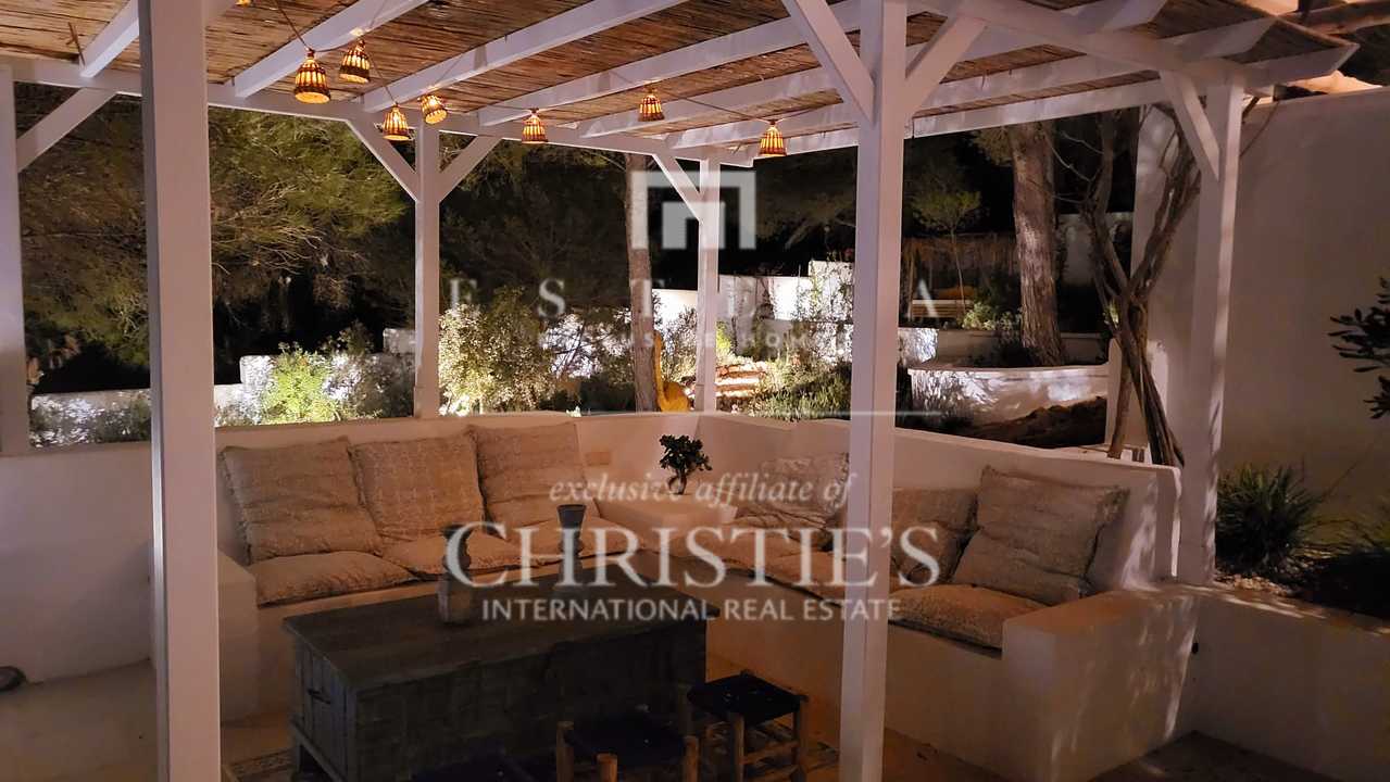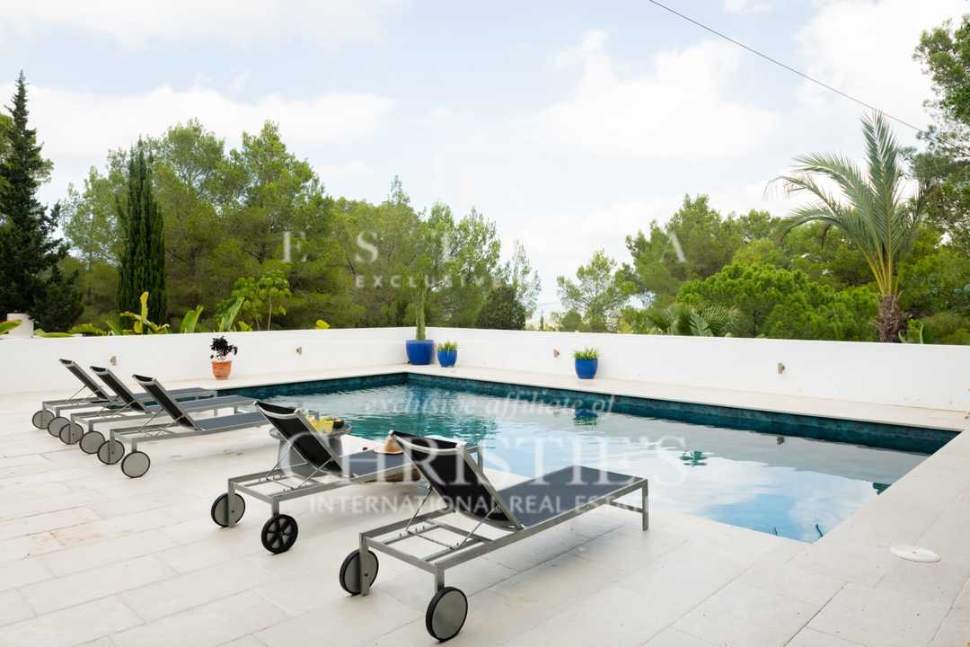Located in one of the most sought-after areas in the south of Ibiza, this charming property in San José perfectly combines traditional Ibizan architecture with a contemporary style, offering a warm, bright and sophisticated atmosphere.The property has a built area of approximately 330 sqm on a 3,000 sqm plot, surrounded by nature and Mediterranean vegetation, ensuring total tranquility and privacy.Distributed over two levels, the villa features 5 spacious bedrooms and 5 bathrooms, designed for comfort and functionality. The interiors stand out for their brightness, with large windows, high ceilings and a carefully selected palette of natural materials that bring warmth and elegance. The living areas flow seamlessly into the outdoor spaces, creating a relaxed and open living experience in true Ibiza style.The outdoor area is one of the highlights of the property. The large terrace with swimming pool invites you to enjoy the Mediterranean climate all year round, complemented by chill-out areas, sunbathing spaces and covered lounges, perfect for entertaining or relaxing.