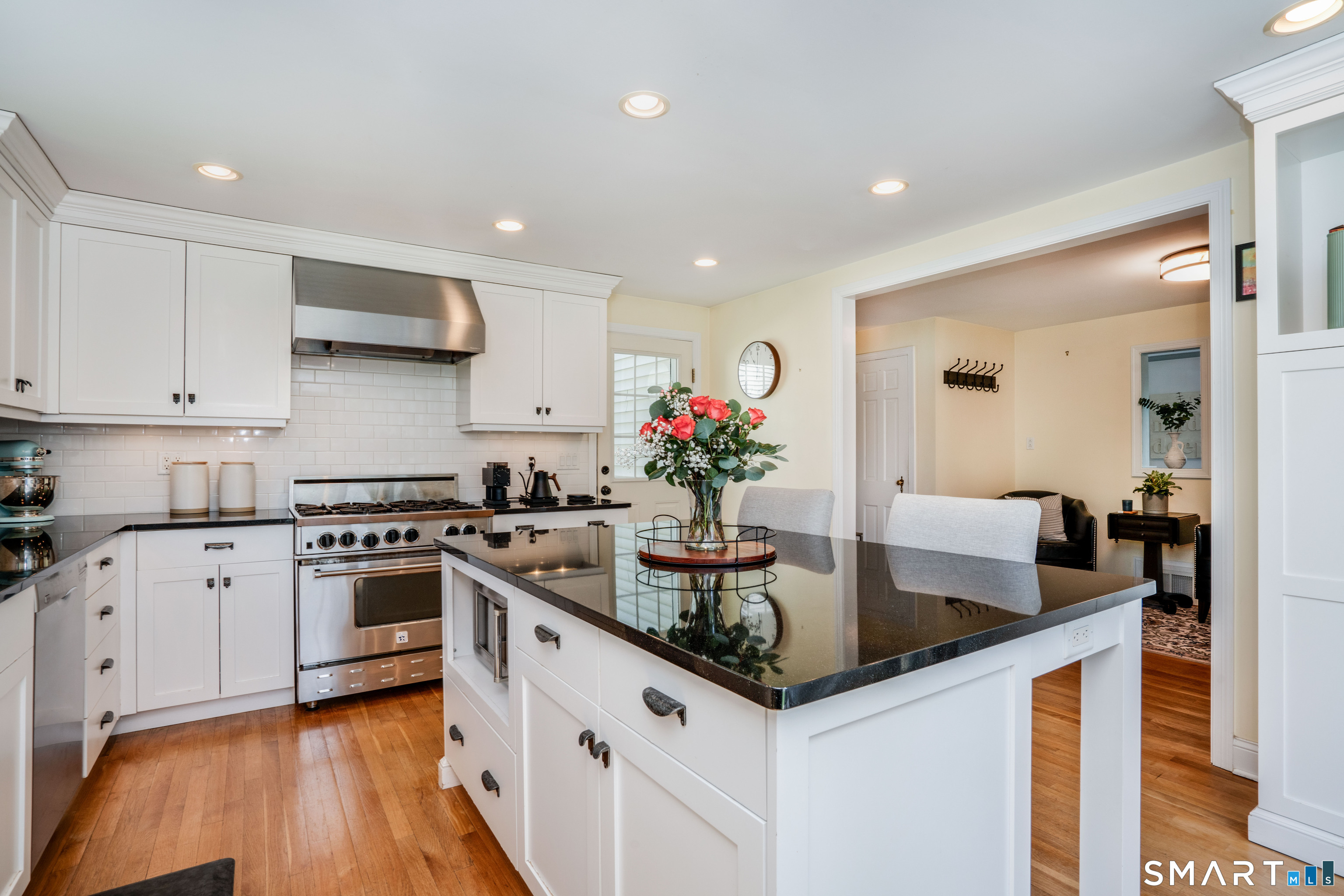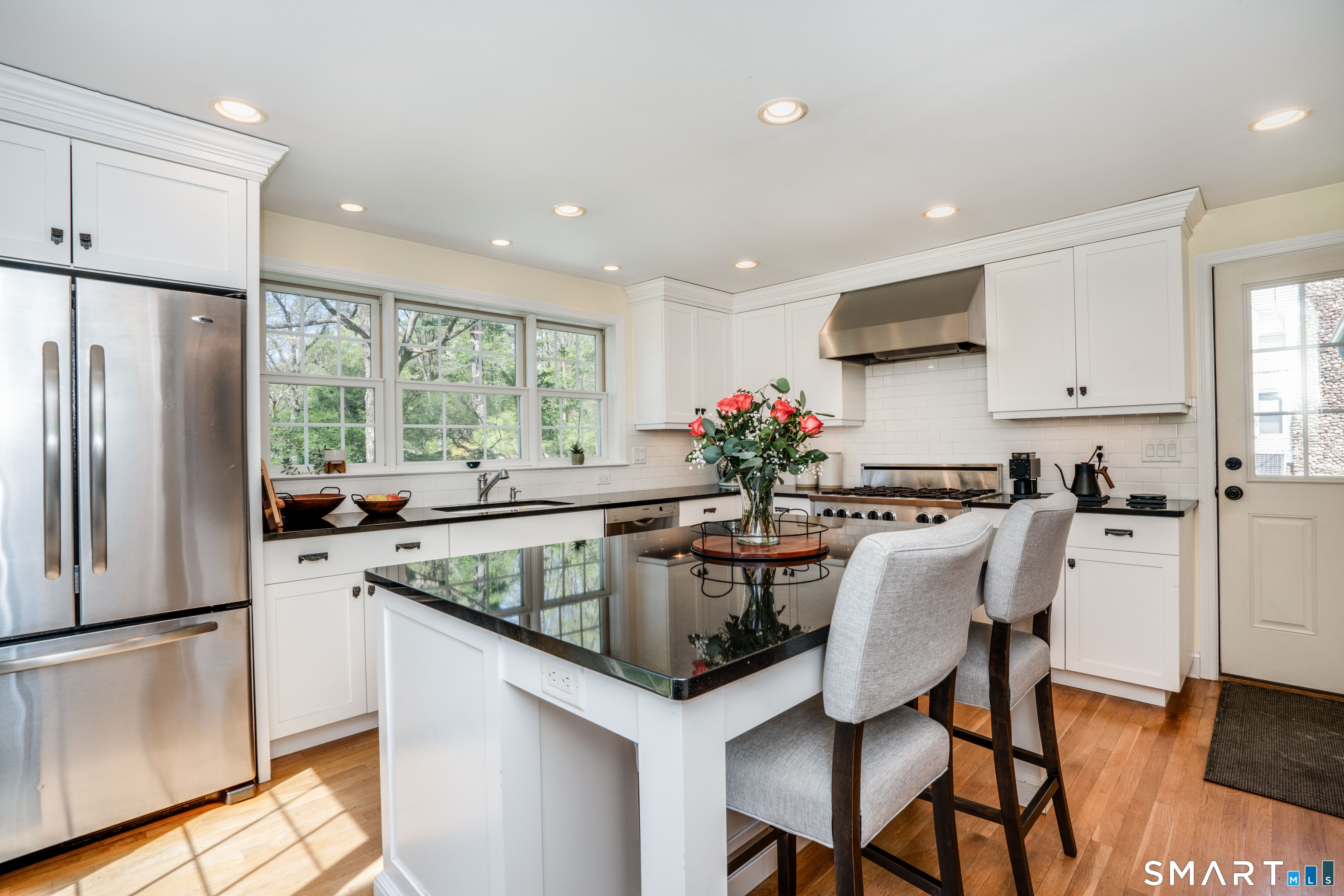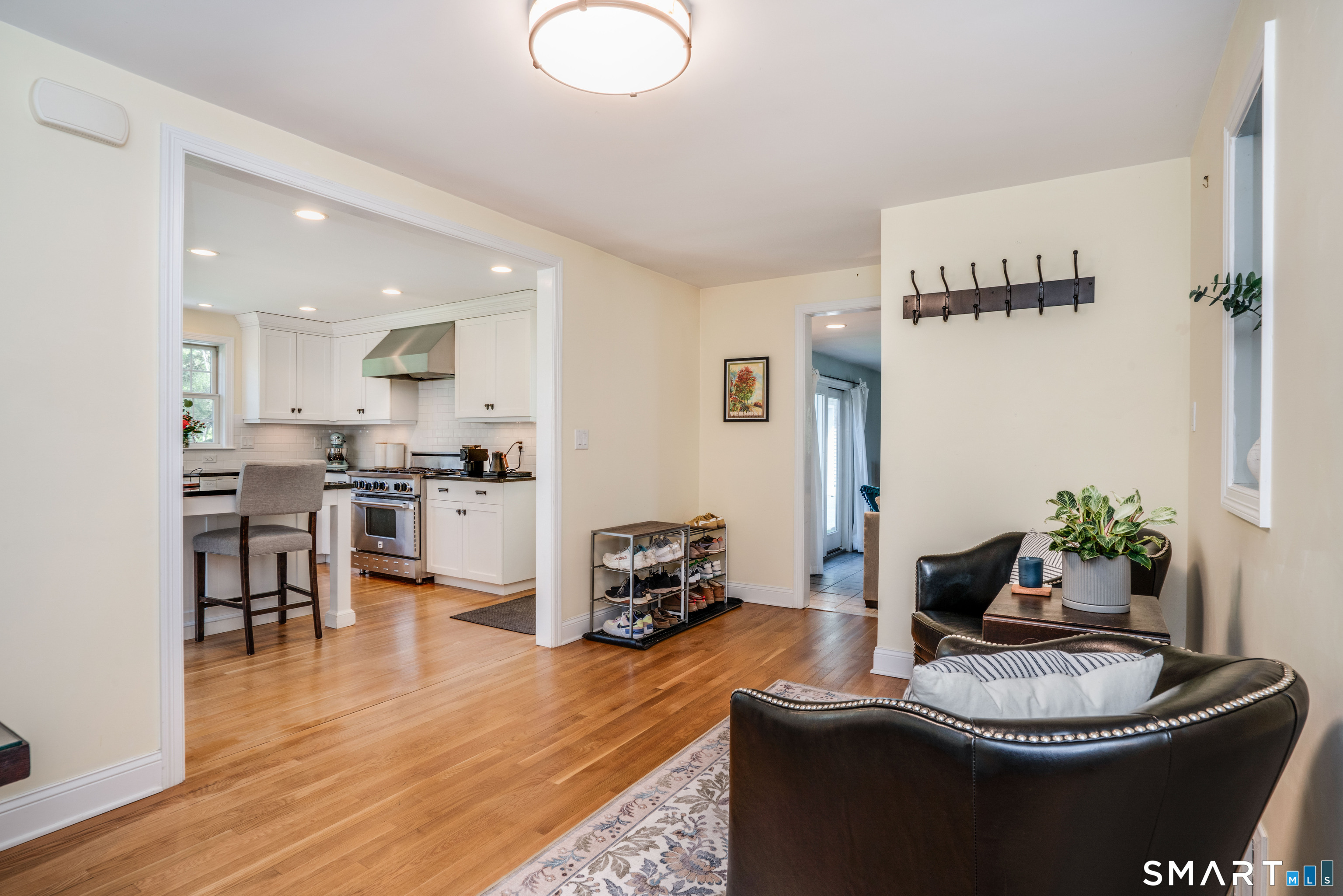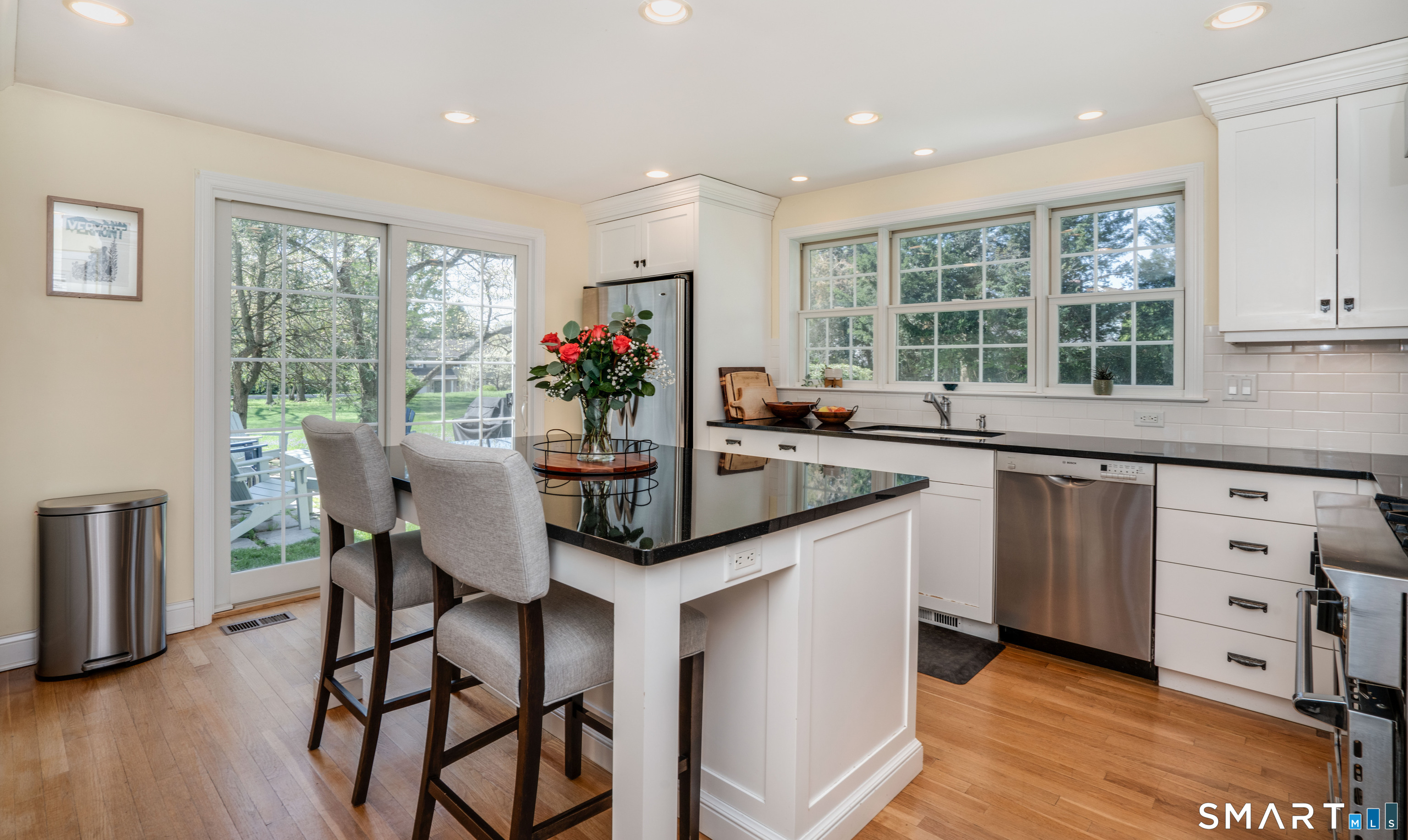 Welcome to 261 Mountain Road-an updated, move-in ready Colonial in the sought-after Duffy School District, set on a picturesque lot with exceptional indoor-outdoor flow, all within a mile walk to the vibrant Center of West Hartford. The main level offers a thoughtful blend of classic character and modern updates. A renovated, bright, spacious eat-in kitchen opens effortlessly to a stone patio through sliding doors, creating the perfect setting for everyday living and entertaining. The large new family room addition, with outdoor access, provides a versatile gathering space, while the formal dining room with a built-in corner cabinet and the fireplaced living room that offers even more patio access add timeless, multi-living space charm. A private office and convenient half bath complete the first floor. Hardwood flooring extends throughout most of the main and upper levels, and a large foyer with a turned staircase enhance the home's warmth and continuity. Upstairs, you'll find three well-proportioned bedrooms that share a spacious full bath, plus a primary bedroom with a separate full bath and spacious closets. The partially finished, walk-up third floor adds valuable flexible space-ideal guest retreat, or creative studio-along with additional storage. A large unfinished basement offers even more storage potential and a separate laundry suite. The large, detached garage is a standout feature, accommodating multiple vehicles with space in the rear, perfectly suited for
