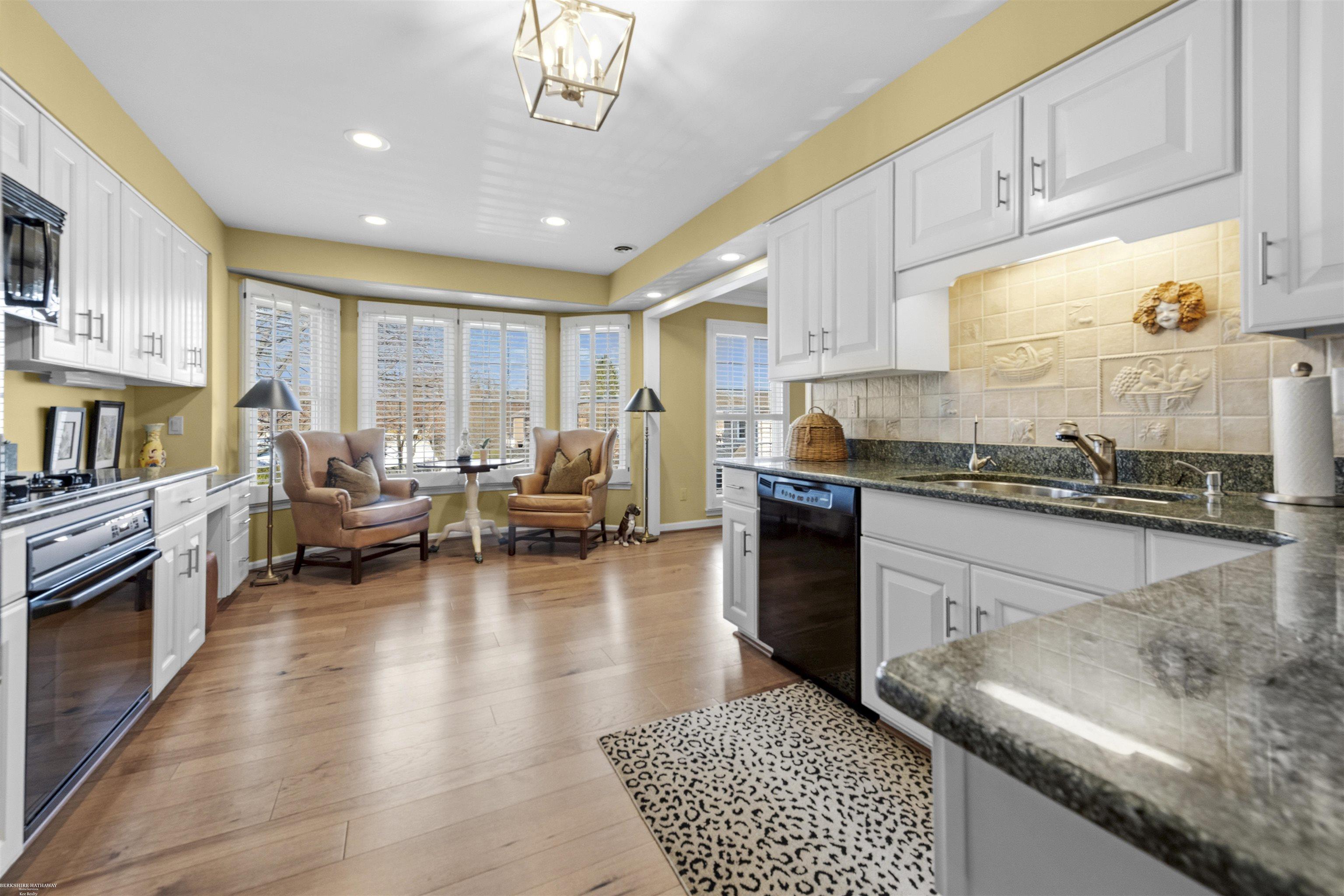 OPEN HOUSE SATURDAY 4/25/26, 1-3pm. Experience sophisticated, single-level living in this impeccably maintained Blake Company condo. Tucked away in a private corner of the community with no direct neighbors, this unit offers a rare level of tranquility and scenic courtyard views. The heart of the home is a modernized, light-filled kitchen featuring granite countertops, stainless steel appliances, a versatile island, and a charming breakfast bay. Elegant crown molding and warm hardwood flooring flow throughout the home, leading into an expansive living room defined by a cozy gas fireplace and custom bay window. For added flexibility, the home features a private den with an enclosed porch, perfect for a home office or quiet retreat. The primary suite is a true sanctuary, boasting two generous walk-in closets and a private bath with built-in valet storage. A second bedroom, a full laundry room, and an attached one-car garage provide convenience. Need extra space? The home includes a beautifully finished basement - ideal for a recreation room, home gym, or additional storage. With its grand two-story foyer and prime location offering bonus green space and extra parking, this property offers a rare combination of luxury, privacy, and functional design. Truly an exceptional living experience that must be seen to be appreciated.
