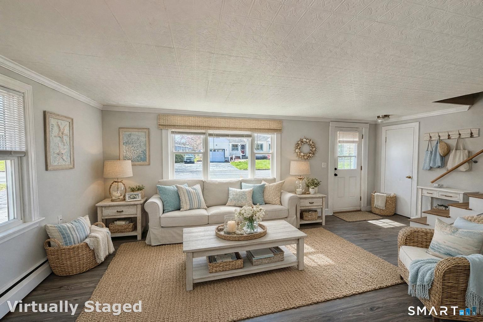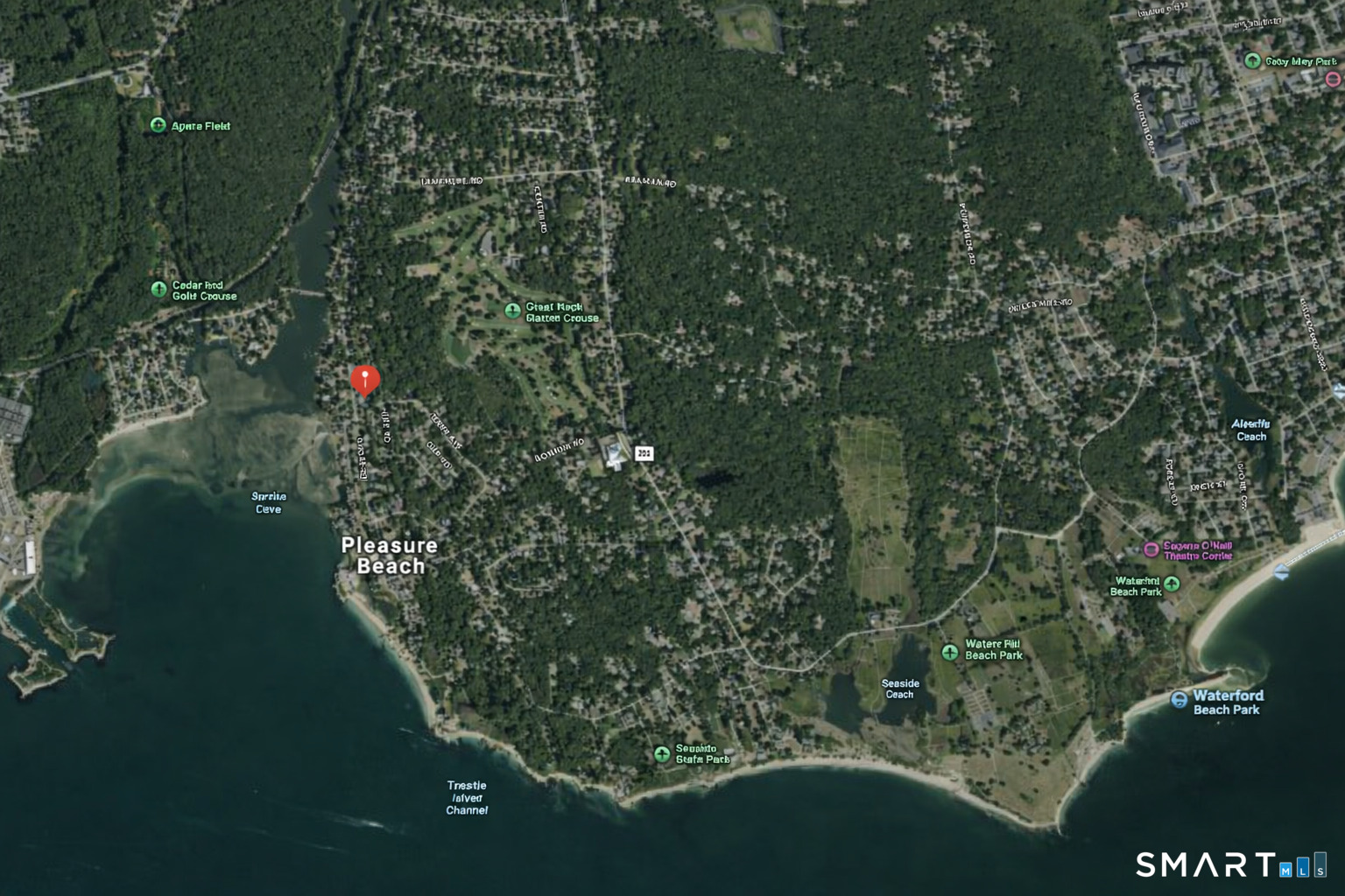 Set in Waterford's desirable Pleasure Beach neighborhood, this beautifully updated 3-bedroom, 2-bath Cape offers a refined blend of coastal charm and thoughtful modern improvements. The completely renovated kitchen features quartz countertops, stainless steel appliances, opening to bright living spaces with abundant natural light, The main-level bathroom has been tastefully renovated with new fixtures, and the crawl space has been enhanced with a vapor barrier and stone for added peace of mind. Outside, enjoy the back patio and firepit for relaxed evenings and easy entertaining. New vinyl siding adds fresh curb appeal and low-maintenance appeal. Just around the corner from Waterford Beach and Harkness Memorial State Park, with a short commute to Electric Boat, Pfizer, the Groton Sub Base, and the Coast Guard, this home offers a wonderful balance of comfort, convenience, and shoreline living.