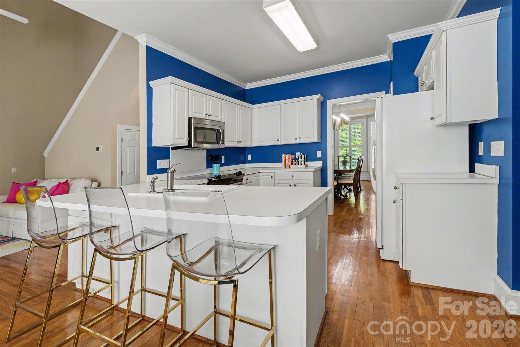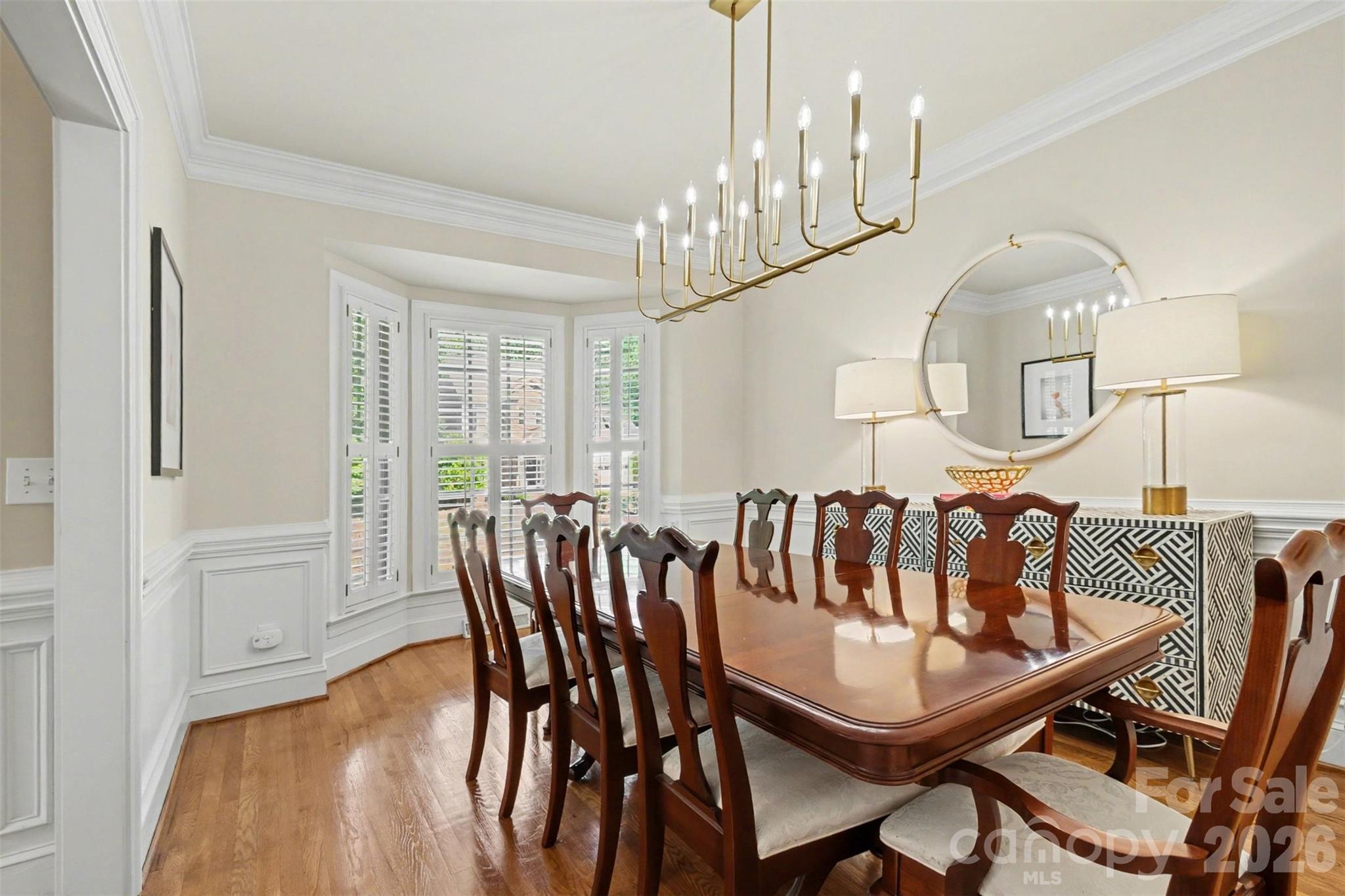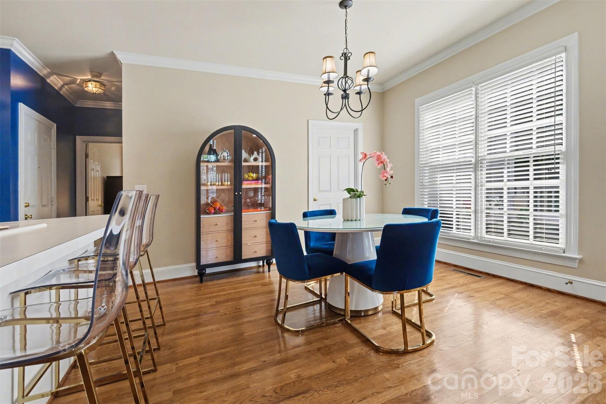 Welcome home! From the moment you arrive, the inviting rocking chair front porch sets the tone - warm, welcoming, and ready to greet you. Step inside this beautifully maintained two-story home where original hardwood floors lead you through a traditional yet flexible layout, including a formal dining room and a living room or home office. Just beyond, the impressive two-story family room with a cozy gas fireplace opens seamlessly to the kitchen, complete with an eat-in dining area - perfect for everyday living and entertaining. The main level also features a spacious primary suite with a private ensuite bath, along with a convenient laundry room, half bath, and direct access to the two-car garage. Step outside to enjoy the fenced backyard and deck, offering a peaceful, wooded backdrop ideal for relaxing or hosting gatherings. Upstairs, you'll find three generously sized guest bedrooms, a full bath, and an expansive flex room designed for fun and function - complete with a custom bar/beverage center, refrigerator, and pool table. Just off the landing, a large walk-in storage room with built-in shelving and pull-down attic access adds even more practicality. Additional highlights include plantation shutters, updated lighting, and a private setting within the charming, walkable Orchid Hills community - just minutes from shopping, dining, I-485, and entertainment. This is more than a house - it's a place to truly feel at home. Don't miss your chance to make it yours! The following items do not convey with the property: Washer & dryer; navy bookcase in office; teal bookcase in upstairs movie room and the outdoor grill do not convey.