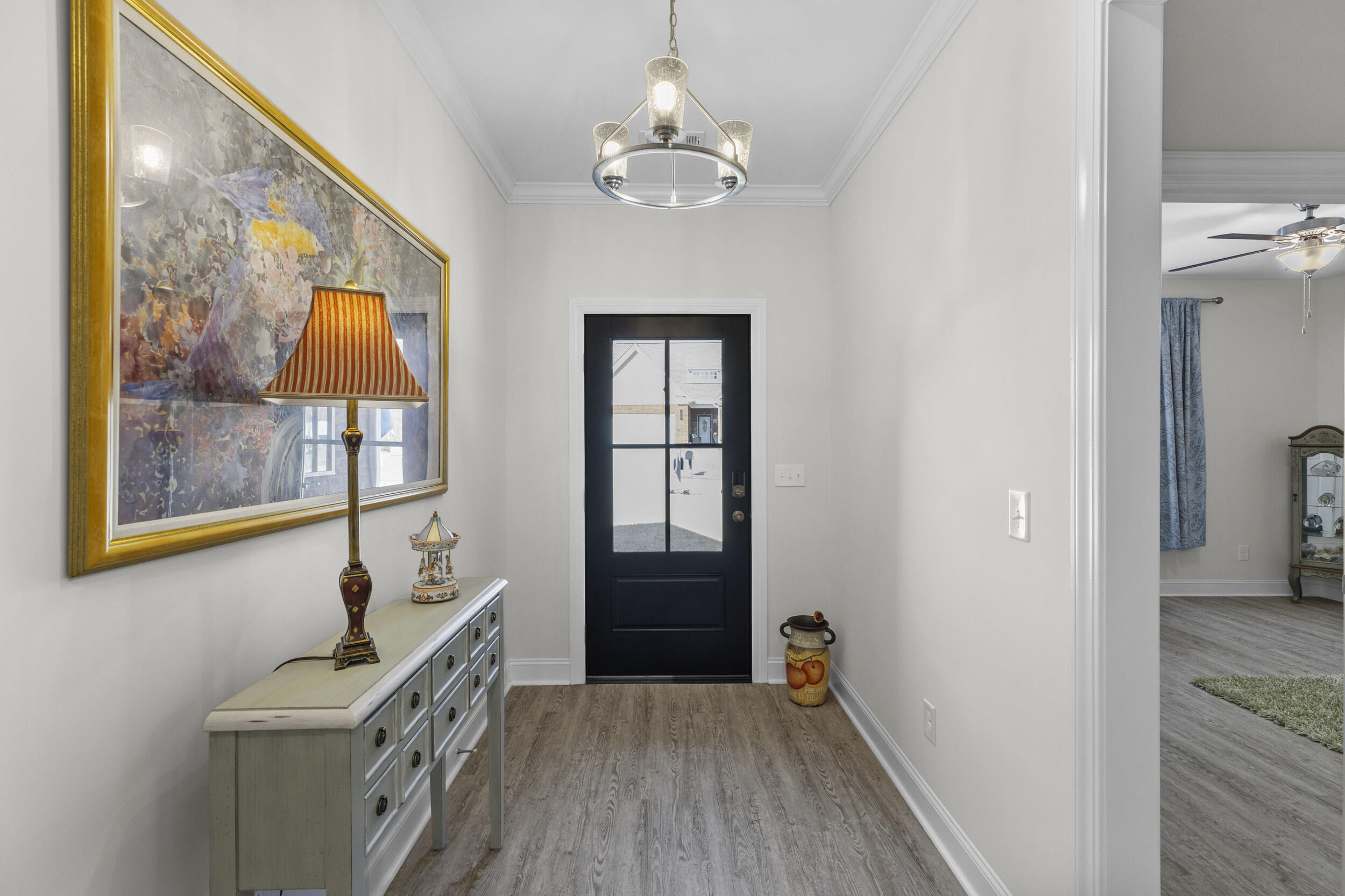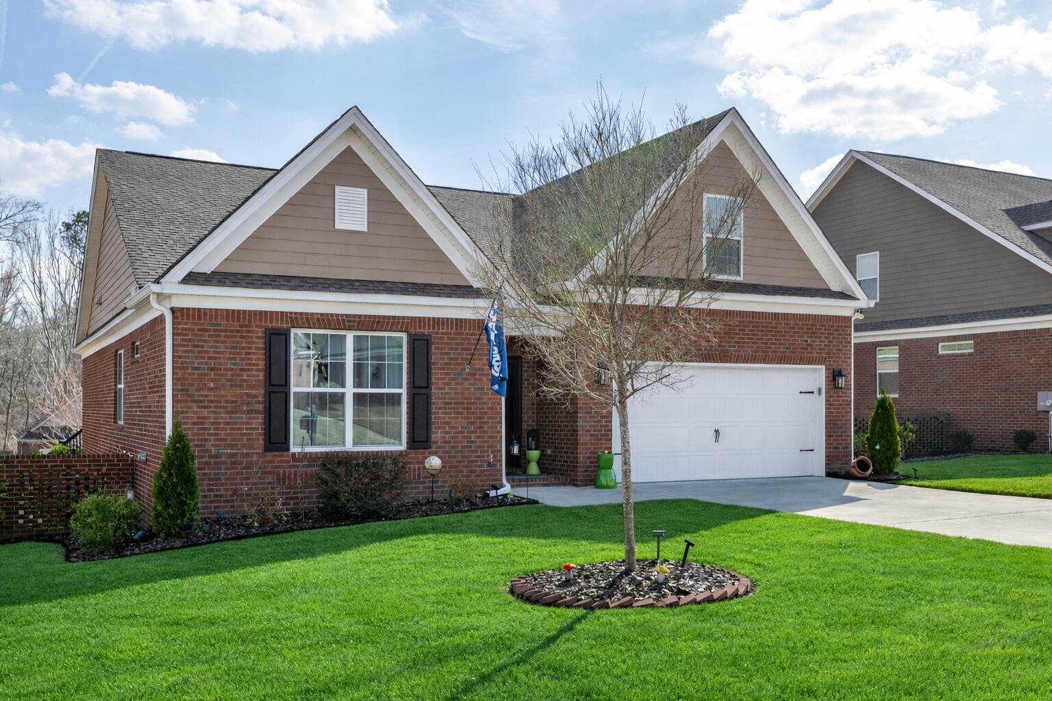 Welcome home to this beautiful solid brick residence in the desirable Mount Vintage community, offering modern design, thoughtful layout, and exceptional amenities! This 2,513 sq. ft. smart home features 4 bedrooms, 3 full bathrooms, and a 2-car attached garage. The inviting foyer opens up to an 11' high ceilings and open concept floor plan which seamlessly connects the kitchen, dining, and living areas, creating an ideal space for both everyday living and entertaining. The spacious kitchen features a large island, a walk-in pantry, ample cabinetry, and overlooks the inviting living room complete with a cozy fireplace. The primary suite is conveniently located on the main level and offers a generous walk-in closet, an en-suite luxury bathroom with barn door entry, double vanities, soaking tub, separate tiled shower, and water closet. Also on the main level are two additional bedrooms that share a full bathroom, along with a dedicated laundry room for added convenience. Upstairs, you'll find a fourth bedroom with its own attached full bath and large closet, making it perfect for guests or a private retreat. The spacious bonus room offers endless possibilities: use it as a home office, media room, playroom, fitness area, hobby space, or additional guest area. Step outside to enjoy the gorgeous screened-in porch and attached Trex deck with aluminum railing, great for relaxing or entertaining while overlooking the beautifully landscaped yard. Perfect area to admire colorful sunsets!! Yard all around this beautiful house features complete 7-zones sprinkler system throughout to help keep everything lush and green. Interior finishes include durable LVP flooring throughout the bedrooms, closets, and main areas, tile in the bathrooms and laundry room, and carpet on the stairs with original oak treads underneath. Located in the sought-after Mount Vintage community, residents enjoy outstanding amenities including a 27 hole golf course, swimming, bocce ball courts, tennis, fitness center, clubhouse, community garden and scenic walking areas, all within a peaceful and welcoming neighborhood. This move-in-ready home offers modern comfort, flexible living spaces, and access to an incredible community lifestyle. Schedule your showing today! Up to 1% Lender Credit towards closing costs or rate buydown with preferred lender!