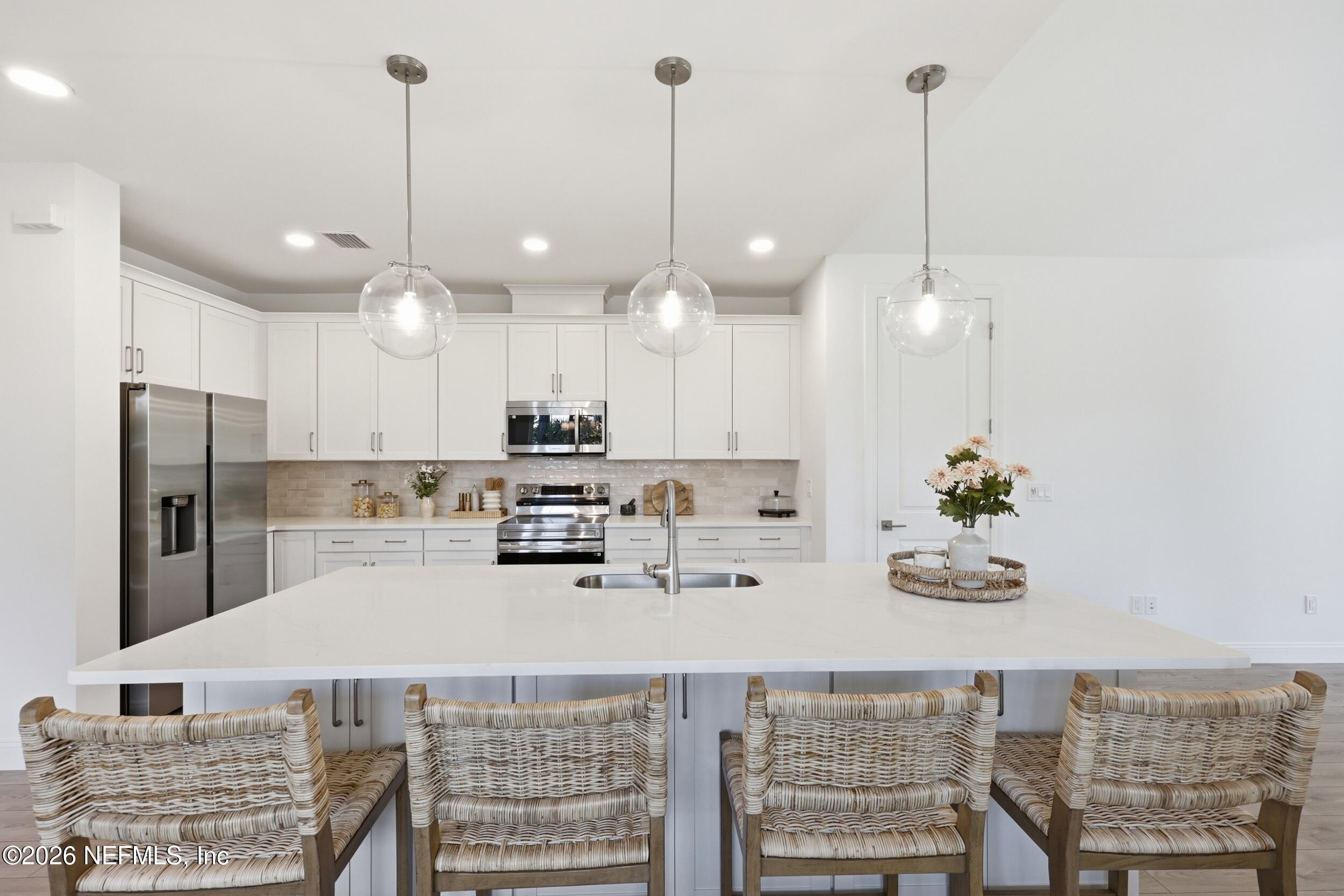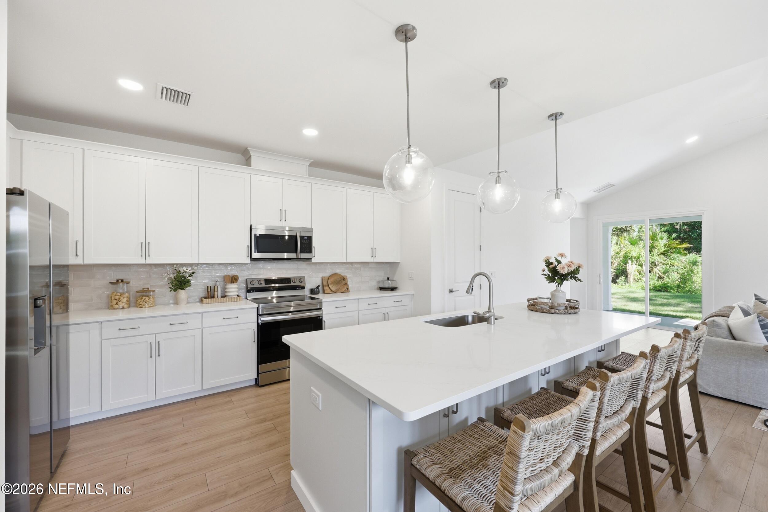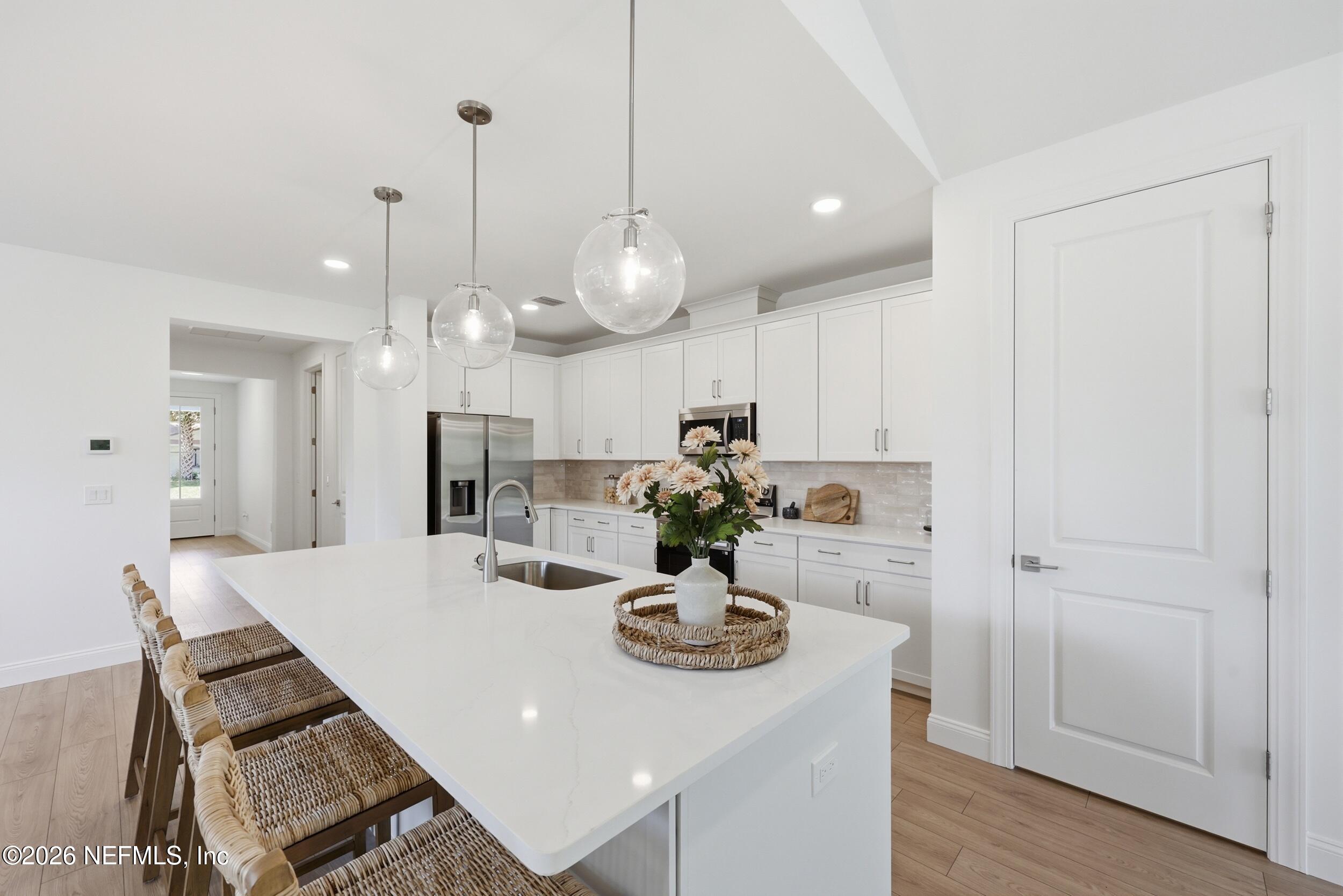 Welcome to 36 Brockton Lane, a beautifully crafted move-in ready new construction Green Home, featuring the sought-after Kershaw model by Hunter Quinn Homes. Designed for modern living, energy efficiency, and long-term durability, this home combines smart technology, high-performance construction, and elegant finishes. Enjoy outdoor living year-round with both front and rear covered porches, perfect for relaxing or entertaining. Inside, the home showcases 9-foot ceilings, 8-foot solid interior doors, LED lighting throughout, and abundant natural light that enhances the open, airy layout. Built as a high-performance, energy-efficient home, this property includes energy-rated windows with a 15-year warranty, a radiant roof barrier system to deflect heat, spray foam insulation for a tighter building envelope, and dual-zoned thermostats--all designed to maximize comfort, reduce annual utility costs, and improve energy savings. Constructed to withstand Florida's wet and humid climate, this home offers enhanced durability and long-term value. Additional features include low VOC paint and flooring materials, promoting healthier indoor air quality. The chef-inspired kitchen features Calcutta quartz countertops, 42-inch cabinetry, and modern finishes ideal for both everyday living and entertaining. The primary suite offers a private retreat, has a luxurious ensuite bath featuring a soaking tub, separate shower, and low-flow Moen fixtures. First Floor Laundry for your convenience. This smart home-ready property includes integrated technology with the ability to expand smart features, giving homeowners flexibility for future upgrades. This particular home features a sideload attached 2- car garage with large, extended concrete driveway offering plenty of room for guest parking. If you're searching for a green home, energy-efficient new construction, or high-performance smart home, this property delivers exceptional comfort, cost savings, sustainability, and modern design.