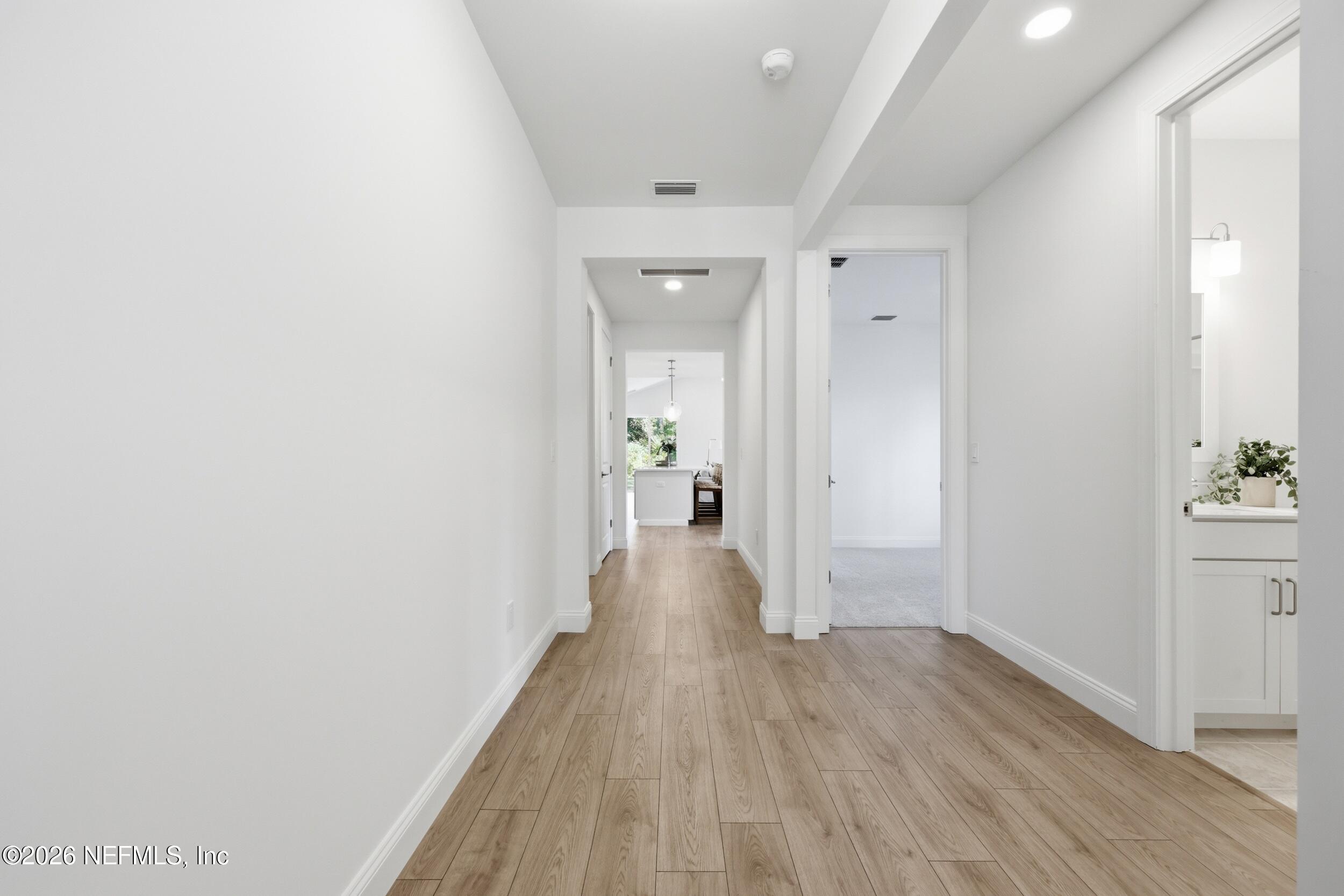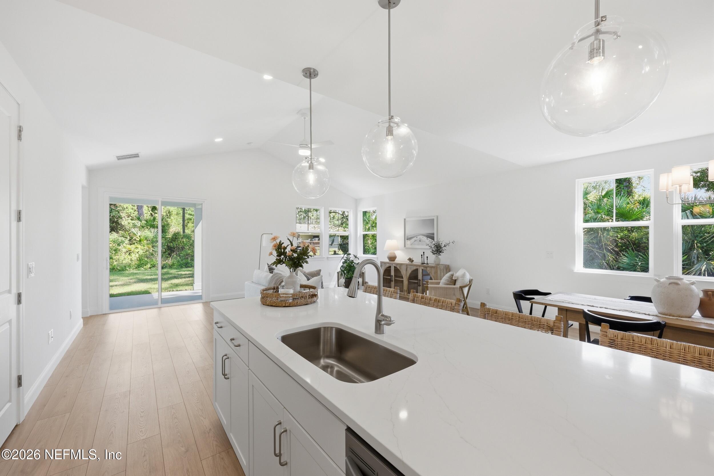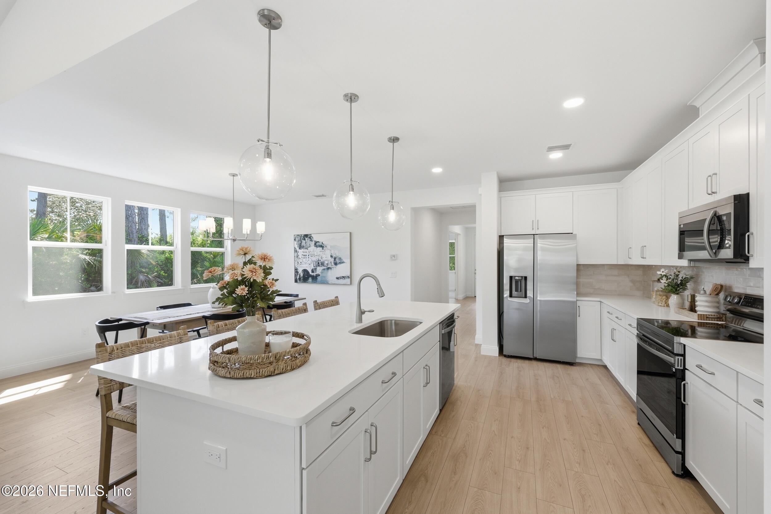 Welcome to 36 Brockton Lane, a beautifully crafted move-in ready new construction Green Home, featuring the sought-after Kershaw model by Hunter Quinn Homes. Designed for modern living, energy efficiency, and long-term durability, this home combines smart technology, high-performance construction, and elegant finishes. Enjoy outdoor living year-round with both front and rear covered porches, perfect for relaxing or entertaining. Inside, the home showcases 9-foot ceilings, 8-foot solid interior doors, LED lighting throughout, and abundant natural light that enhances the open, airy layout. Built as a high-performance, energy-efficient home, this property includes energy-rated windows with a 15-year warranty, a radiant roof barrier system to deflect heat, spray foam insulation for a tighter building envelope, and dual-zoned thermostats--all designed to maximize comfort, reduce annual utility costs, and improve energy savings. Constructed to withstand Florida's wet and humid climate, this home offers enhanced durability and long-term value. Additional features include low VOC paint and flooring materials, promoting healthier indoor air quality. The chef-inspired kitchen features Calcutta quartz countertops, 42-inch cabinetry, and modern finishes ideal for both everyday living and entertaining. The primary suite offers a private retreat, has a luxurious ensuite bath featuring a soaking tub, separate shower, and low-flow Moen fixtures. First Floor Laundry for your convenience. This smart home-ready property includes integrated technology with the ability to expand smart features, giving homeowners flexibility for future upgrades. This particular home features a sideload attached 2- car garage with large, extended concrete driveway offering plenty of room for guest parking. If you're searching for a green home, energy-efficient new construction, or high-performance smart home, this property delivers exceptional comfort, cost savings, sustainability, and modern design.