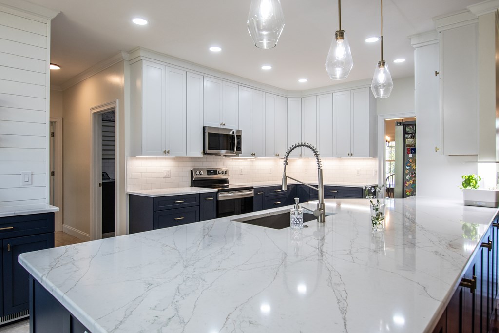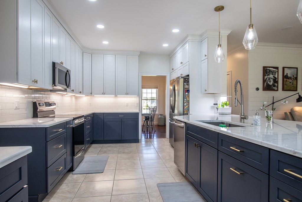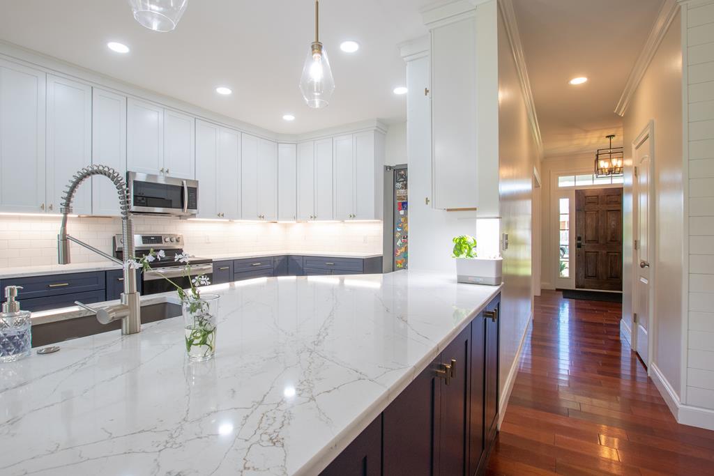 Fall in love with this charming two-story home on a peaceful street in the Town of Glade Spring, Virginia. Sitting on a large, flat, fenced lot, it offers plenty of outdoor living space. The fully renovated kitchen is a rare find in this price range, featuring quality cabinets, modern appliances, quartz countertops, and a dedicated coffee station - perfect for gatherings with friends and family. Ample counter and cooking space will please any chef, from novice to gourmet. The kitchen connects to a formal dining room on one side and flows openly into the living room on the other, which boasts a gas log fireplace, built-in storage, and space for a large TV. The first floor features a dedicated office space for those working from home, along with a beautifully renovated powder room and a laundry room with custom cabinetry. The main level also includes a guest-friendly suite with a private bath. Upstairs, the spacious primary suite offers a walk-in closet with upgraded fixtures, accompanied by two more bedrooms and a full bath. A versatile bonus room adds the perfect finishing touch, currently serving as a play and workout area but easily adaptable as a fifth bedroom. So many upgrades in the home to include hardwood floors and new contemporary lighting. Additional spaces include a covered front porch and a back deck for grilling.