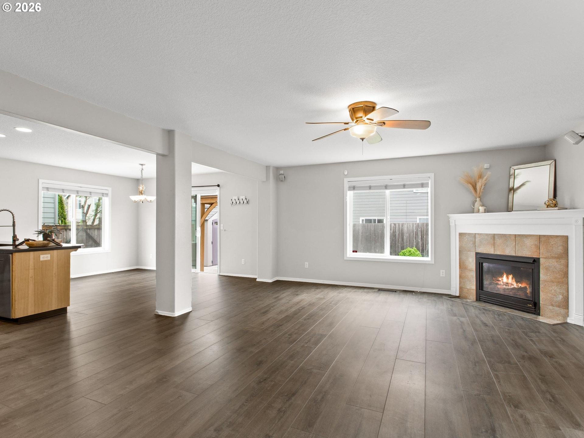 Highly desirable East Vancouver home in Stonebrook Ridge Neighborhood. This 4-bedroom, 2.1-bath home offers an inviting open-concept main floor design. Updated luxury vinyl plank flooring flows throughout the main level, complemented by a cozy gas fireplace. The kitchen has been refreshed with new stainless-steel appliances. Upstairs, you'll find well-appointed bedrooms, including a versatile 4th bedroom that can easily transform into a home office, bonus room, or guest retreat. The upstairs landing features custom built-ins, offering both added storage and a touch of thoughtful design. Smart features like a Nest thermostat, ring security system and surround-sound speakers boast functionality. Enjoy peace of mind with key system updates including a new A/C, water heater, and furnace motor, along with beautifully updated bathrooms that add a fresh, contemporary touch.Step outside to a backyard ready for year-round enjoyment, complete with a gazebo, plus a storage shed. And for those needing space for toys or projects, the highly desirable RV parking is a rare and valuable feature. This community offers private walking trails and a neighborhood park. Conveniently located close to shopping, dining, parks, and freeway access.