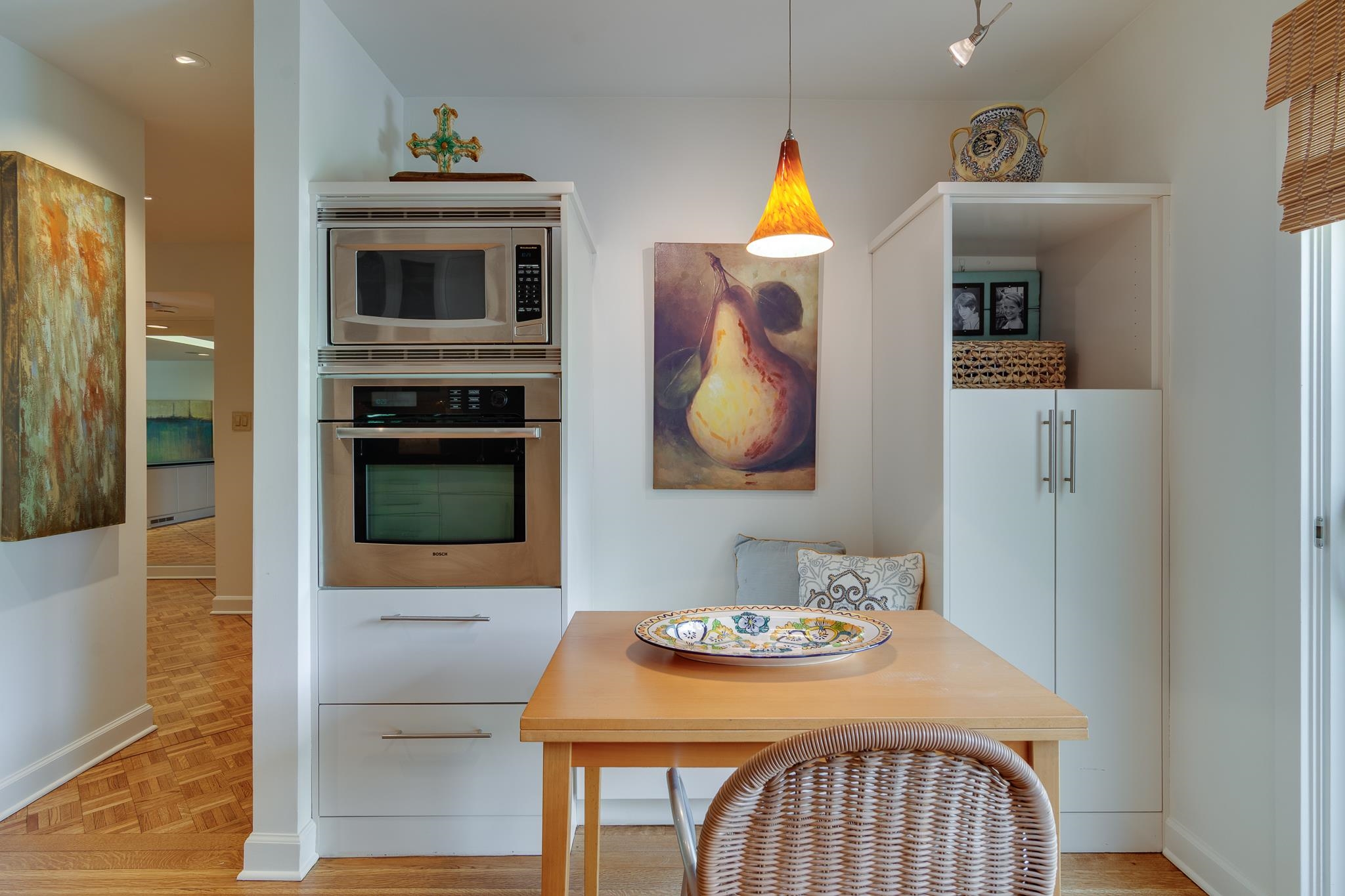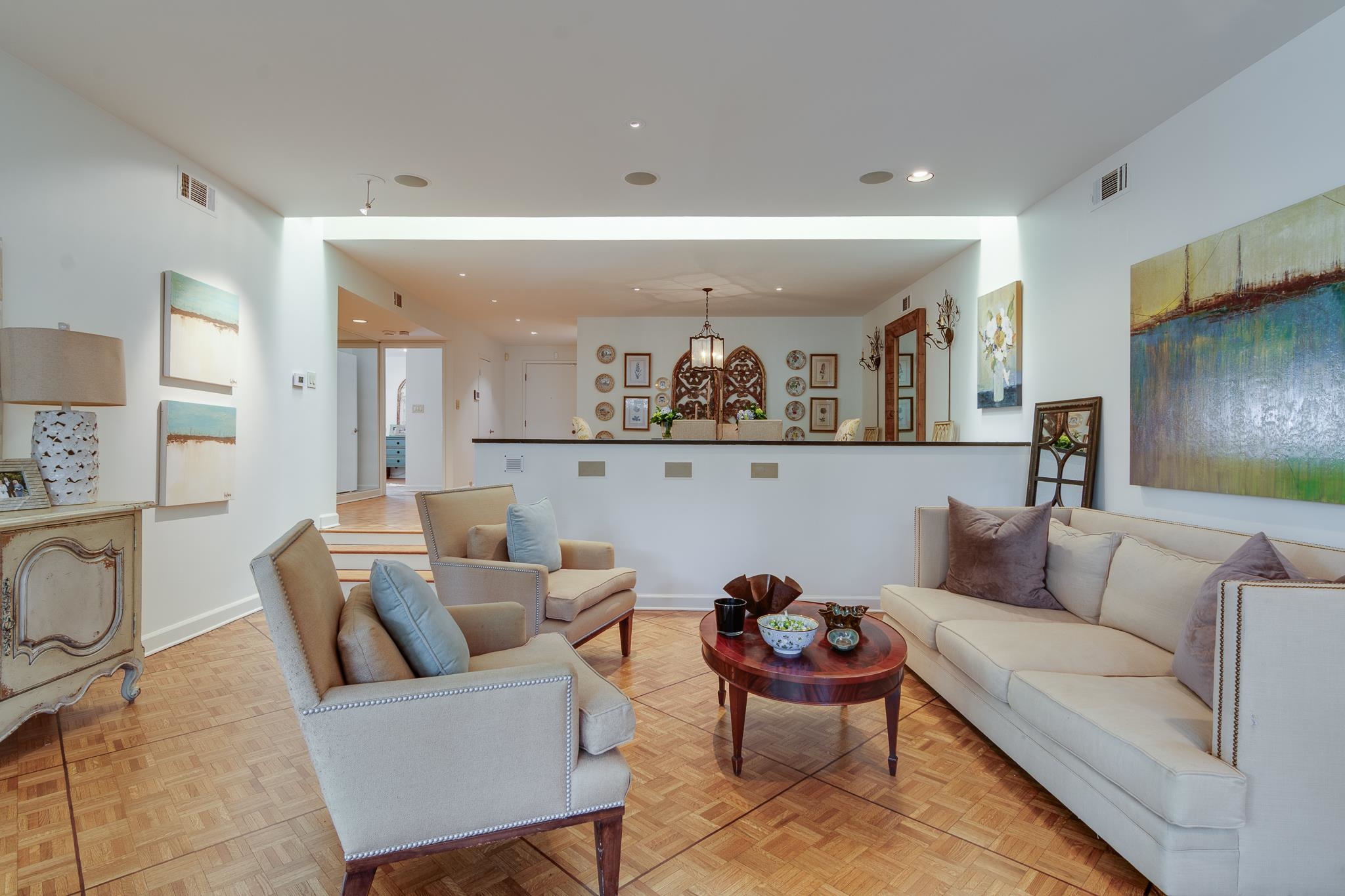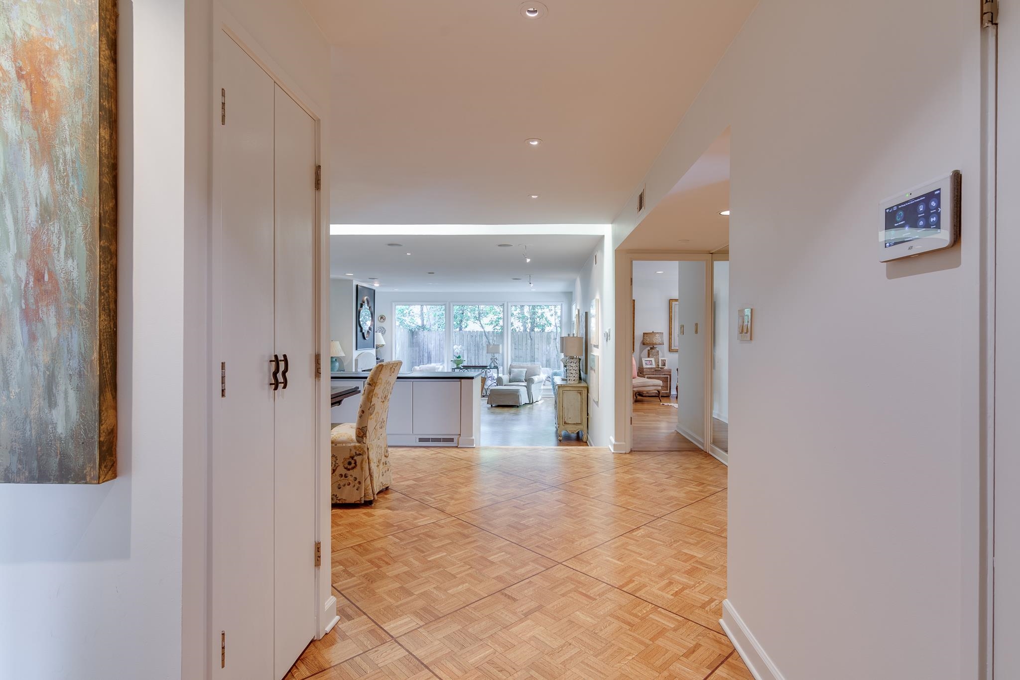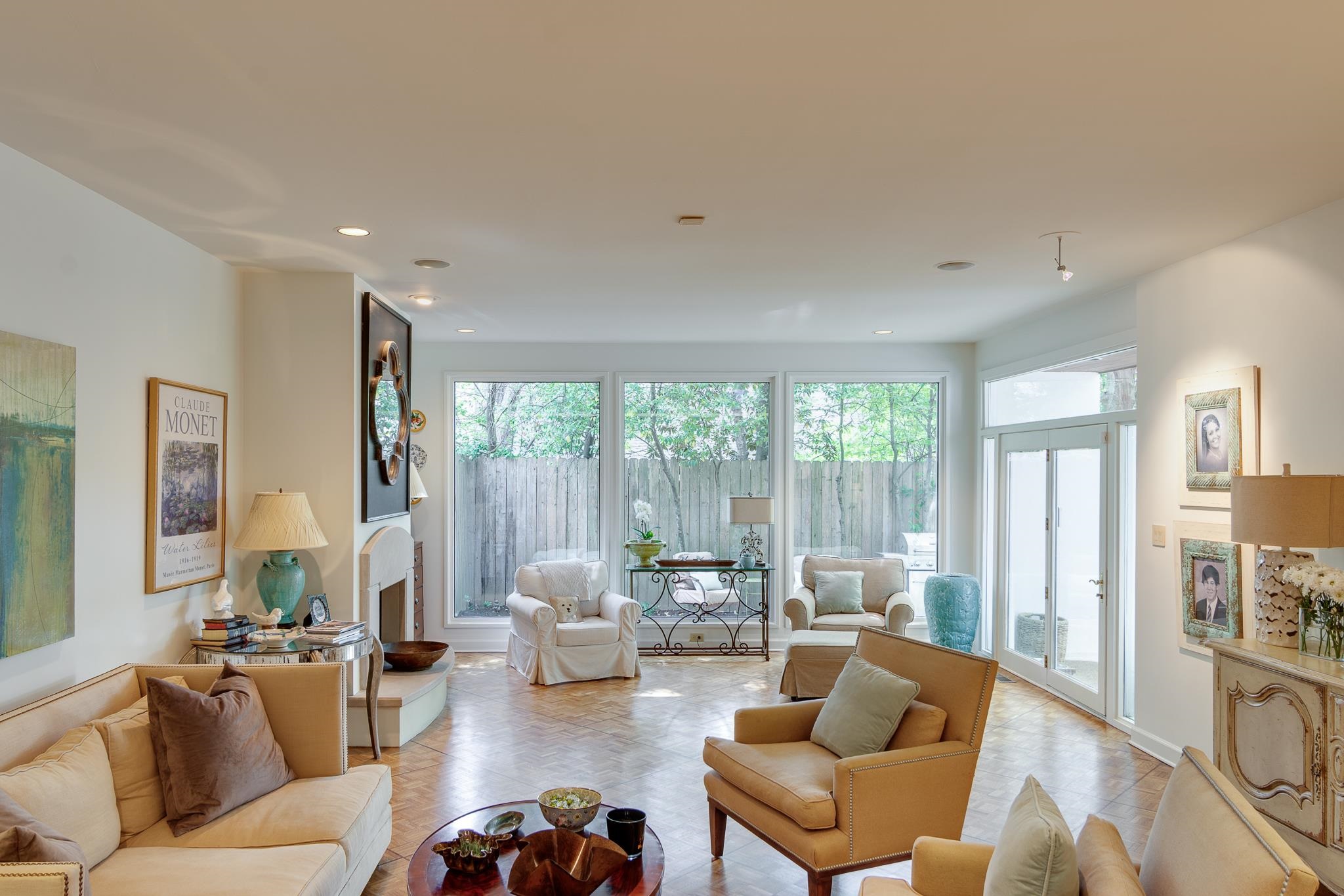 Beautiful Modern Open One level floor plan. Large living room & dining room area. Updated kitchen, granite, Bosch appliances,Gas cook top, Double ovens, microwave, and Sub-Zero Refrigerator. Spacious 2 bedrooms and 2 Baths. Hardwood floors throughout, freshly painted ceilings and walls, large 2 car garage and front and back patios. OWNER/AGENT