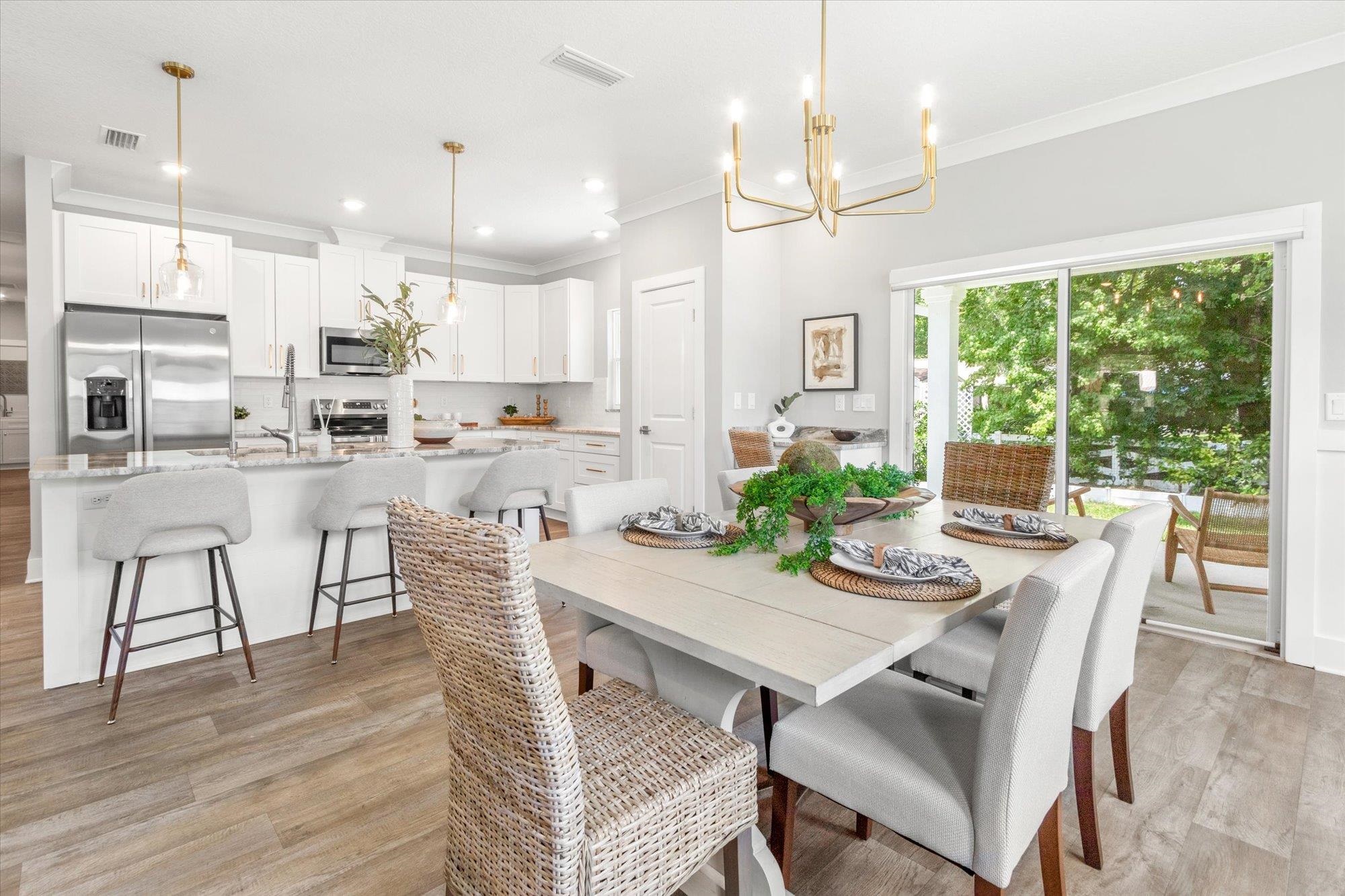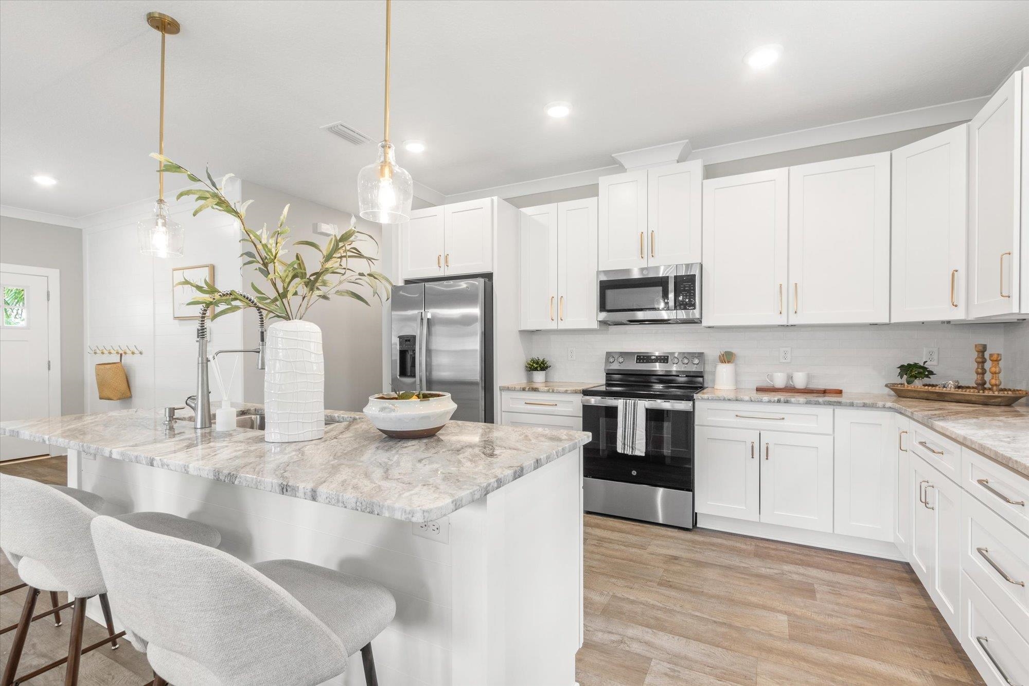 This 2024 HOME blends modern enhancements with thoughtful details, creating a lifestyle that feels both elevated and effortlessly comfortable. From the moment you arrive, you notice the difference: the space, the privacy, the half-acre corner lot, and the freedom of NO HOA. And with CRESCENT BEACH minutes away and Historic Downtown St. Augustine an easy drive north, you're positioned perfectly for sunrises on the beach and adventures in one of Florida's most charming coastal cities. Once inside, the open layout welcomes you with a sense of calm and connection. The kitchen is adorned with custom finishes: granite countertops, stainless steel appliances, white subway tile, and a generous island that comes together in a way that feels purposeful - because every detail was chosen to make gathering, cooking, and hosting more enjoyable. Luxury vinyl plank flooring, wainscotting, crown molding, elegant fixtures, and premium window shades add a layer of refinement and sophistication. With four bedrooms and three full bathrooms, this home offers space, ease, and flexibility. Three of the four bedrooms feature direct access to their own en suite bathrooms, creating a sense of comfort and privacy for everyday living or hosting guests. The 4th bedroom is especially versatile, featuring private entrances to the garage and side yard - ideal for an in-law or caregiver suite, a quiet workspace, or a guest room with independent access. Designed with long-term comfort in mind, the home also features wider hallways, accessible doorways, and zero-entry showers, making it well suited for aging in place, multigenerational living, or enhanced everyday accessibility. The two-car garage adds even more potential, with plumbing in place for the option to build out another bathroom, laundry area, or even add a pet wash station. Smart-home features - including a Ring camera, smart thermostat, and WiFi-controlled sprinkler system - tie everyday convenience into the overall experience. Front and back porches frame the home adding Southern charm, and the outdoor shower adds a coastal touch that feels especially fitting. Living is truly extended outdoors, creating inviting spaces for morning coffee, quiet evenings, or gatherings with friends under the Florida sky. The oversize covered RV/boat storage on a concrete pad offers convenience for your lifestyle requirements. Nearby, an extra-large shed fully equipped with power, windows, and lighting becomes whatever you need it to be: a creative studio, gardener's workspace, or organized project room. With its thoughtful design and coastal proximity, this home offers a sense of ease and possibility that elevates every day.