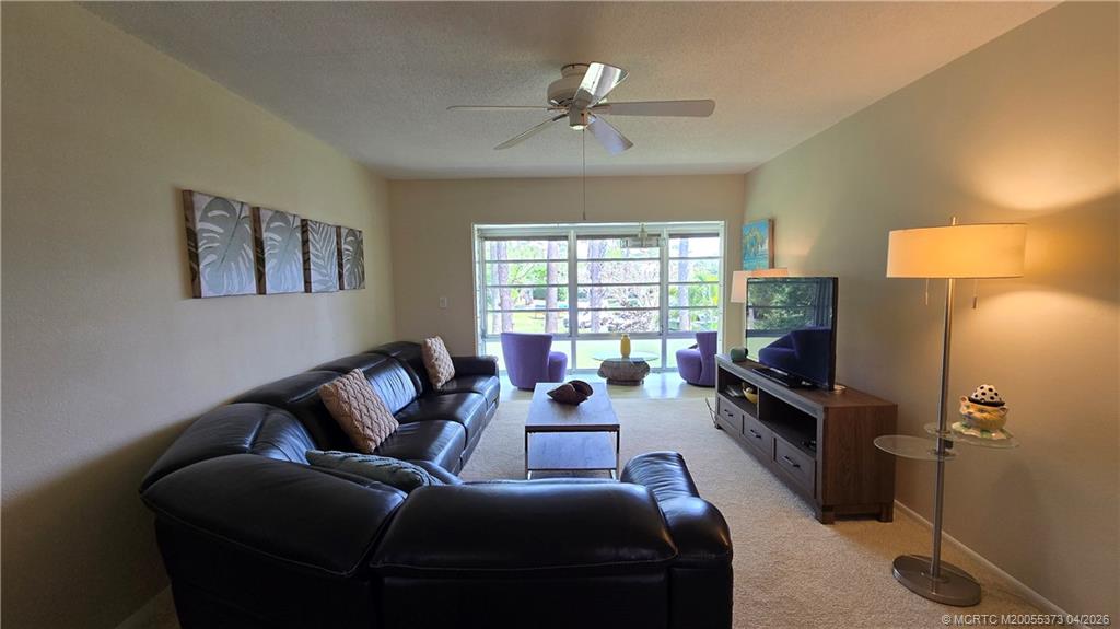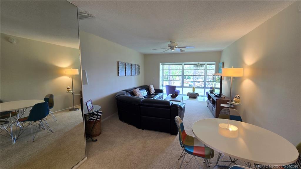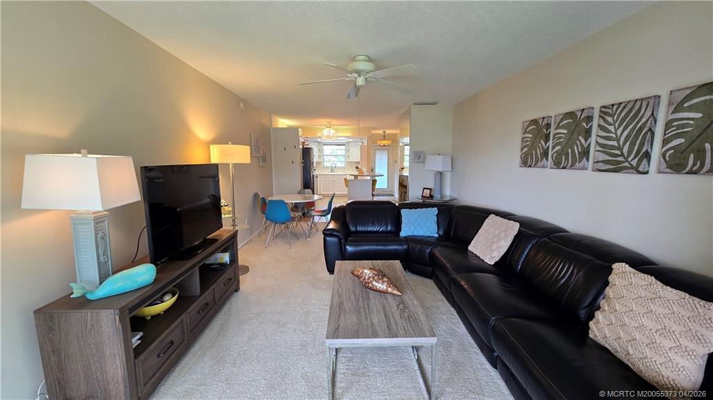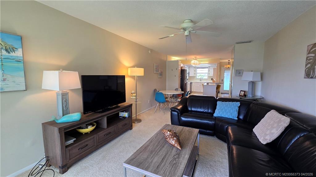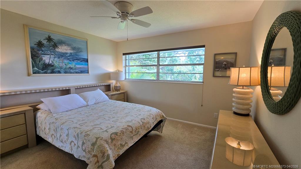 Beautifully furnished 2 bedroom/2 bath condo with extended glassed in patio. Great private view. 2nd floor unit. Open area kitchen with breakfast bar and office space. 2nd bedroom has a sleeper sofa for winter guests. Walk- in shower and bathtub jacuzzi. 3 Flat screen TV's. Non-Commercial TRUCKS ALLOWED. Common laundry is conveniently next door. Basic cable and water included. Close to downtown Stuart and 10 minutes to the beaches of Hutchinson Island, Heated community pool and shuffleboard. Extra storage. 1 parking spot plus guest spots. Close to shopping and restauants. Welcome to your Coastal Dream Home.