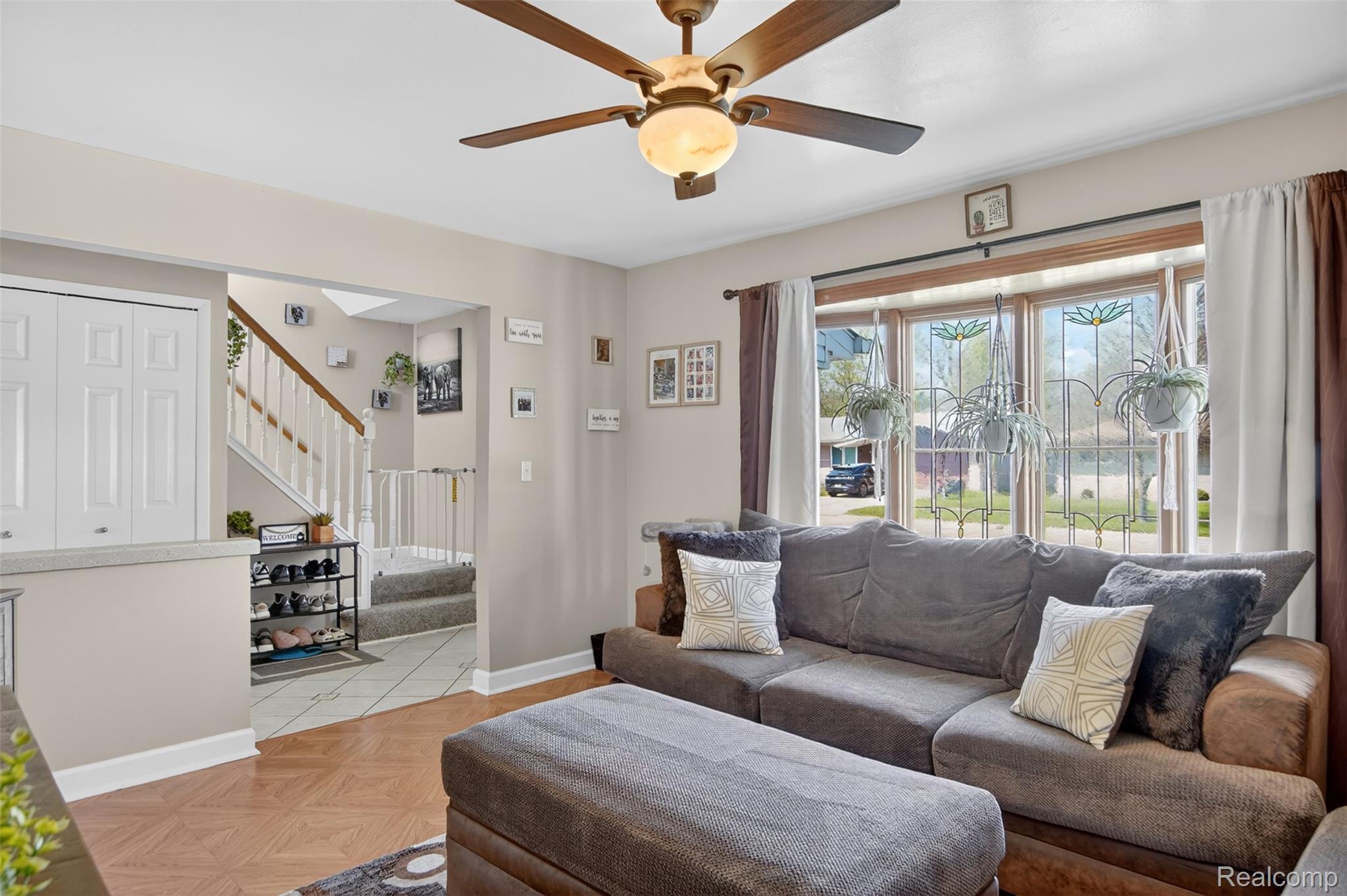 Pride of ownership shines throughout this immaculate 3-bedroom, 1.5-bath brick colonial with beautifully updated interiors and exceptional care. Freshly painted, this home is truly move-in ready. The full bath showcases a new tub surround, updated vanity, and countertops, while the half bath features new luxury vinyl flooring and a stylish vanity. The eat-in kitchen offers quality Thomasville slow-close cabinetry, neutral countertops, a charming garden window, and stainless steel appliances that stay. Enjoy new carpet in the family room, stairs, and hallway, while the upstairs bedrooms feature gorgeous hardwood flooring. A spacious living room welcomes you with a stunning oversized bay window that fills the home with natural light. The cozy family room includes new carpet, a beautifully updated gas fireplace, and a door wall leading to the immaculate backyard. Step outside to a gorgeous fenced yard with a huge brick paver patio - perfect for relaxing or entertaining. Just beyond the chain-link fence, enjoy the peaceful sound of a nearby creek while sitting on the patio. Additional highlights include a designer front door, beautifully maintained front and back yards, and the seller is providing the Certificate of Occupancy. BATVAI
