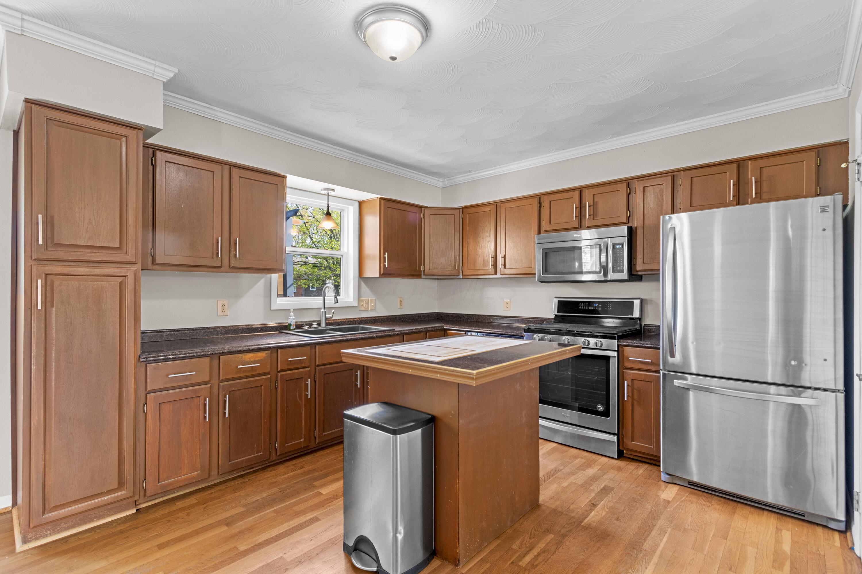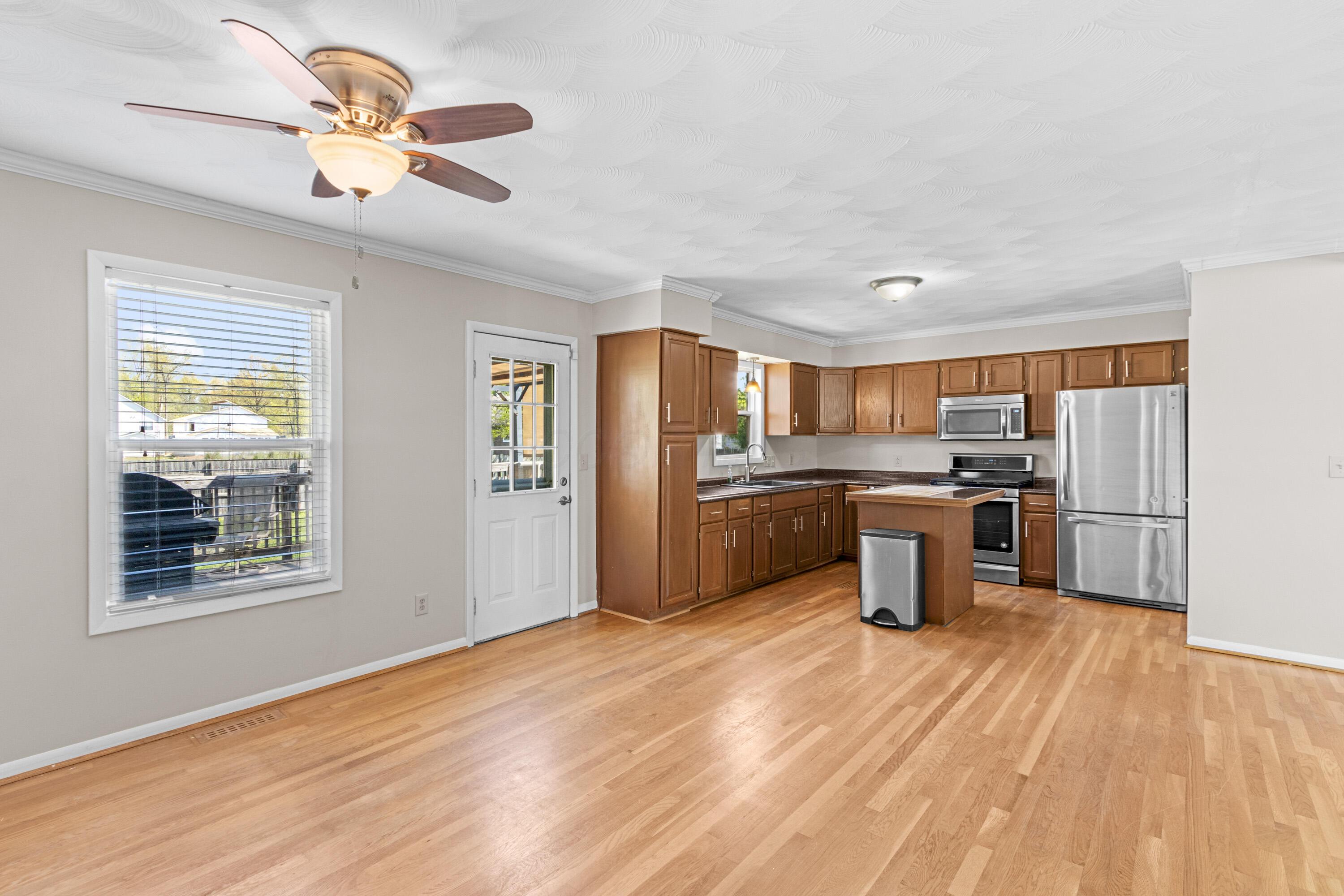 Welcome to 3698 Earl Avenue -- a spacious ranch-style home offering 3 bedrooms, 2 full baths, and 1,864 square feet of comfortable living space in the Gahanna Jefferson school district. The open-concept kitchen features stainless steel appliances, a center island, and flows seamlessly into the dining area -- perfect for everyday living and entertaining. Crown molding, hardwood and carpet flooring add warmth throughout the main living areas. The large rec room is a true bonus -- a versatile space ready for a home theater, game room, playroom, or home gym, with doors leading to the driveway, garage and backyard. Step outside to your private deck overlooking a massive, fully fenced backyard -- ideal for gatherings, pets, or simply unwinding under the mature shade trees. Storage is plentiful with an attached 2-car garage plus three small sheds. Whether you're a hobbyist, an entertainer, or just someone who needs room to spread out, this property delivers. Convenient Columbus location with easy access to shopping, dining, and major commuter routes. New roof, paint and carpet. Schedule your showing today!