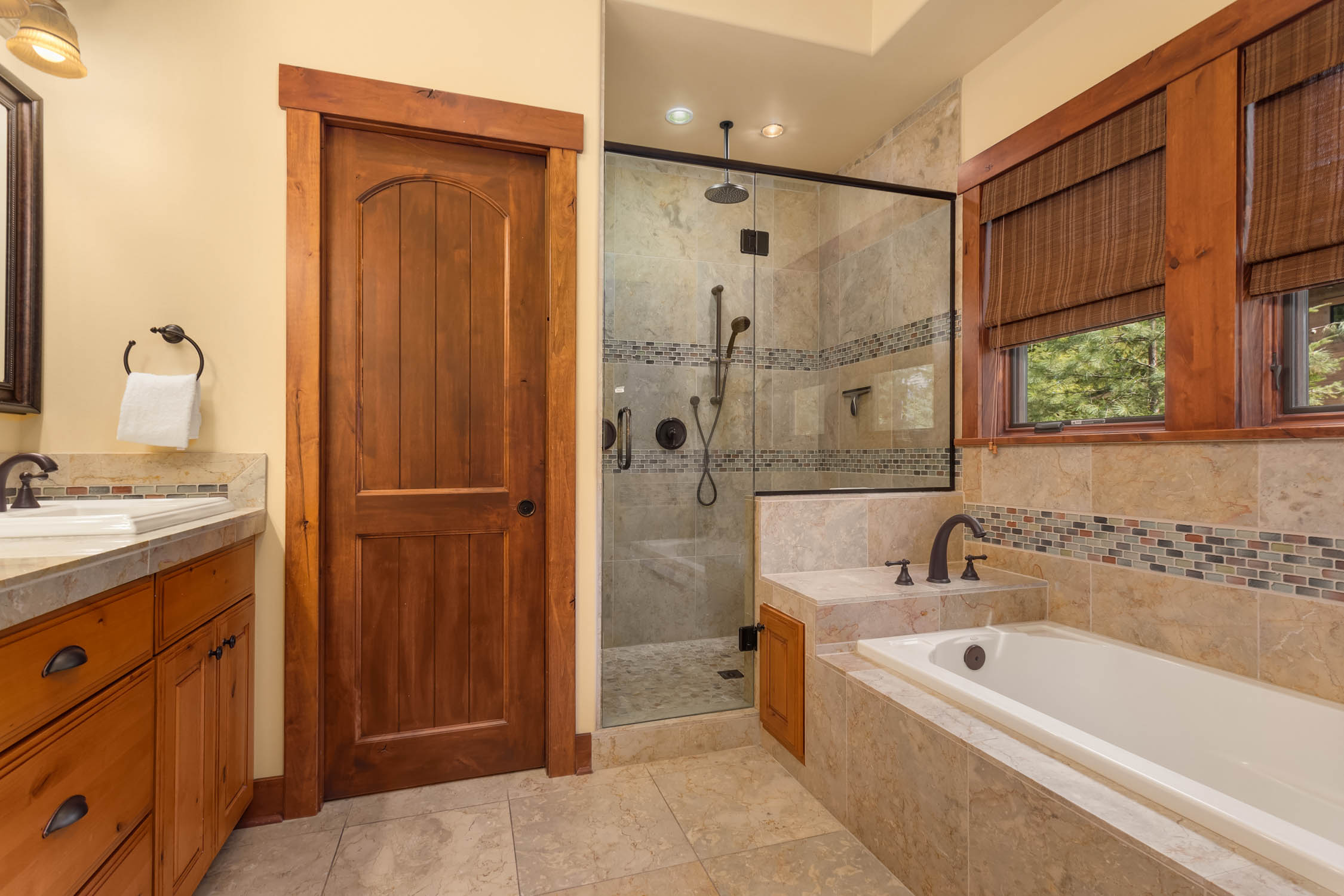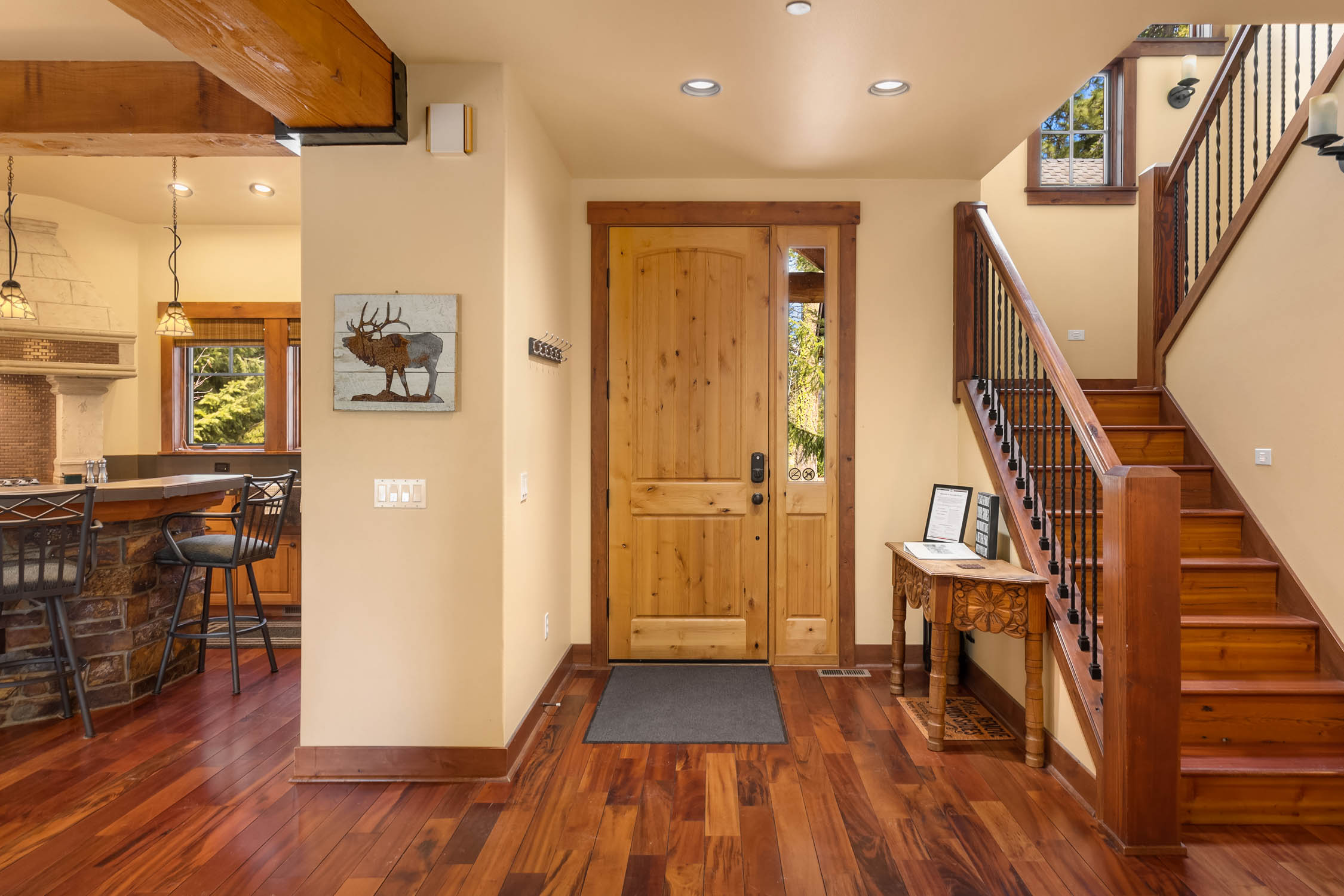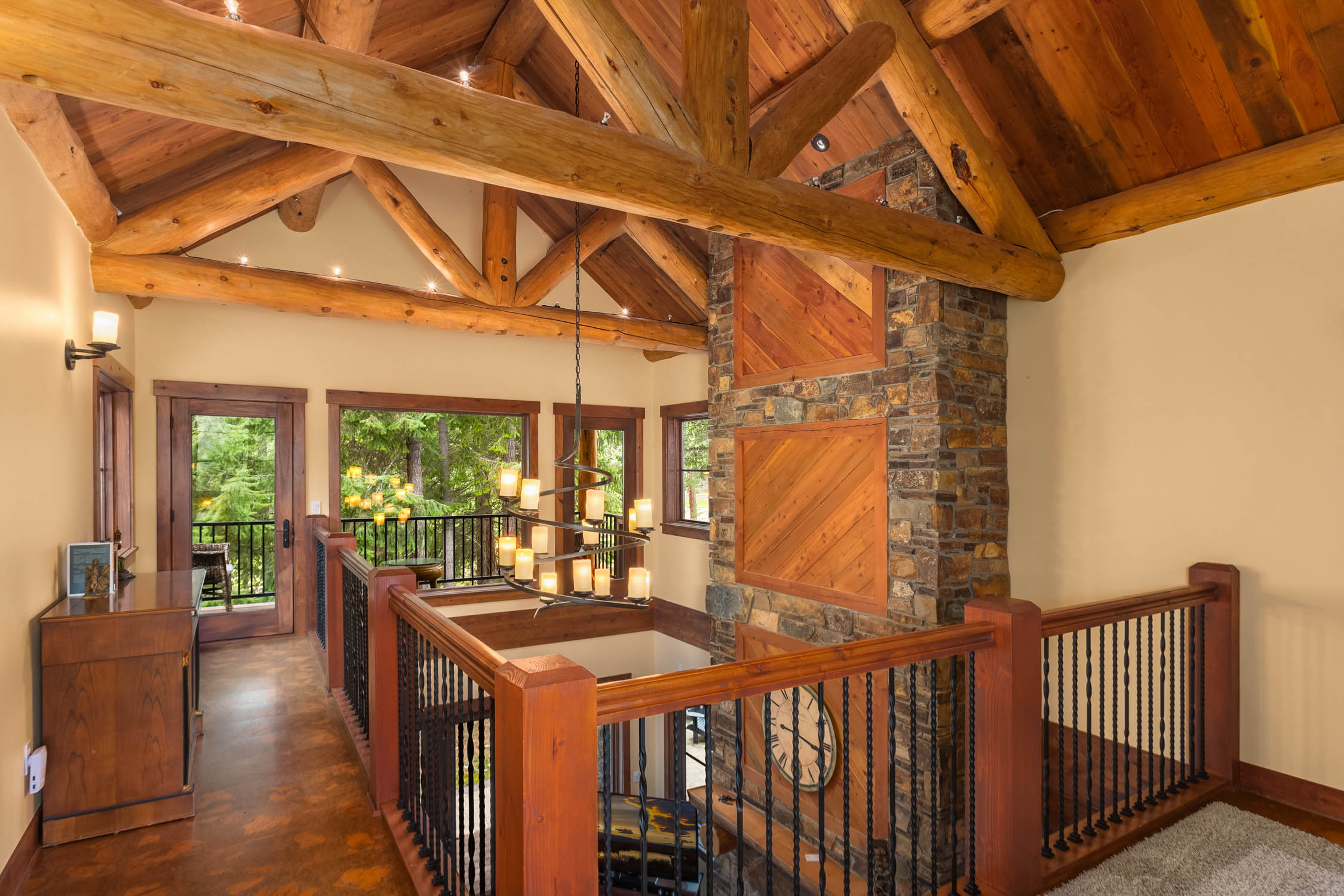 This classic Suncadia style home is located near the 7th fairway tee box on the Prospector Golf Course. As you walk through the front door you are greeted by a spacious great room with soaring vaulted ceilings and natural log trusses. As natural gathering point in the home, you'll appreciate the comfortable seating that is framed by the large gas fireplace area. The second gas fireplaces is in the outdoor living area next to the hot tub. You can take in all four seasons from every corner of the house, including the four separate covered patios that extend the living areas. The house has a wonderful gourmet kitchen area and 5 bedrooms which currently sleeps 15, so the house could make a great home and/or vacation rental property. If you love and seek high quality wood working craftmanship, this house features some of the nicest wood finishes in the resort.