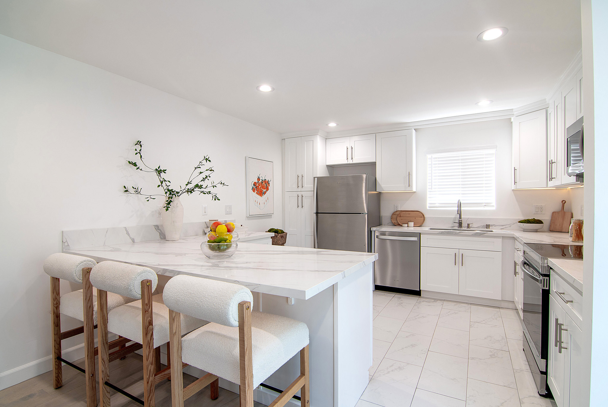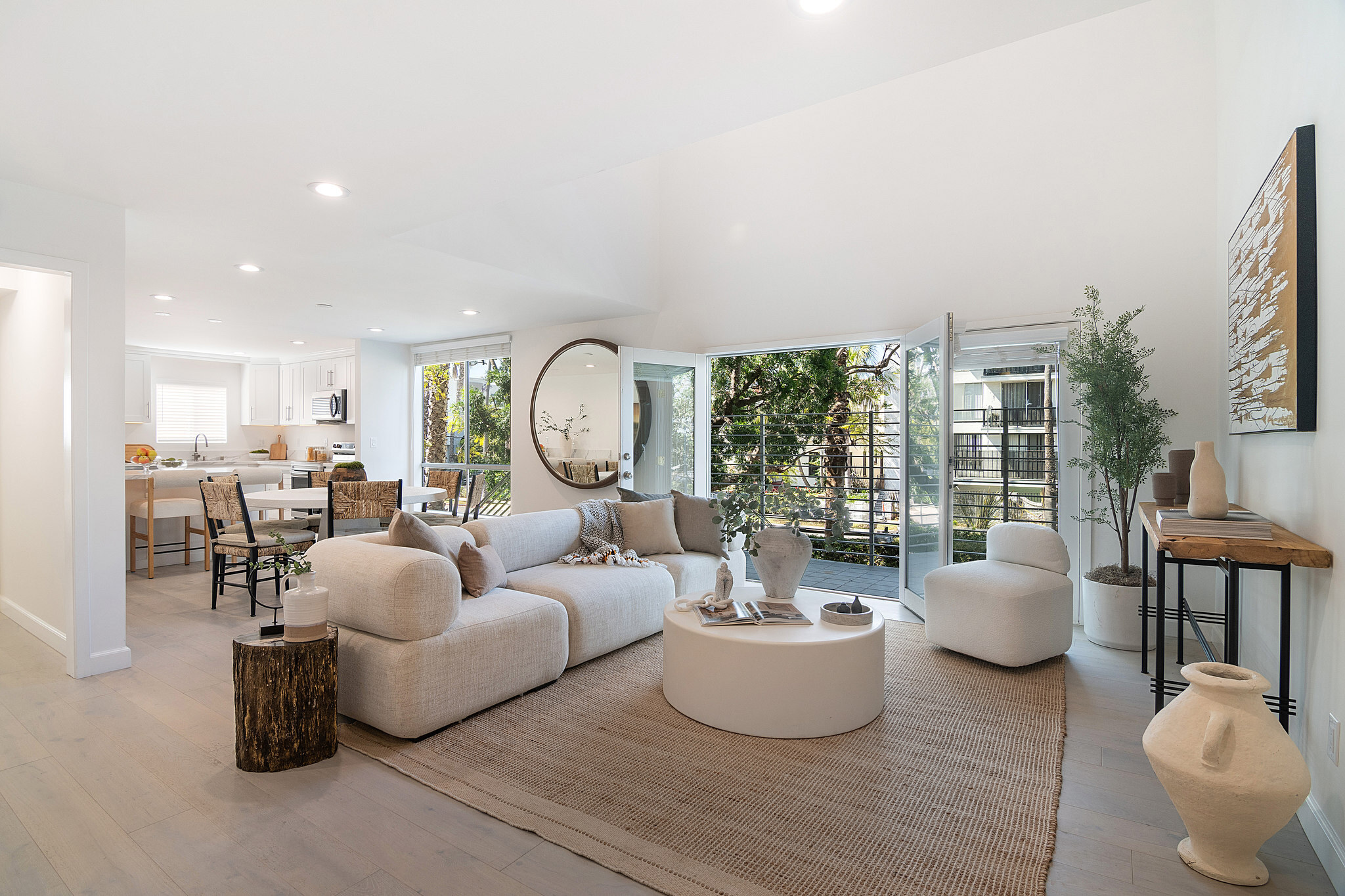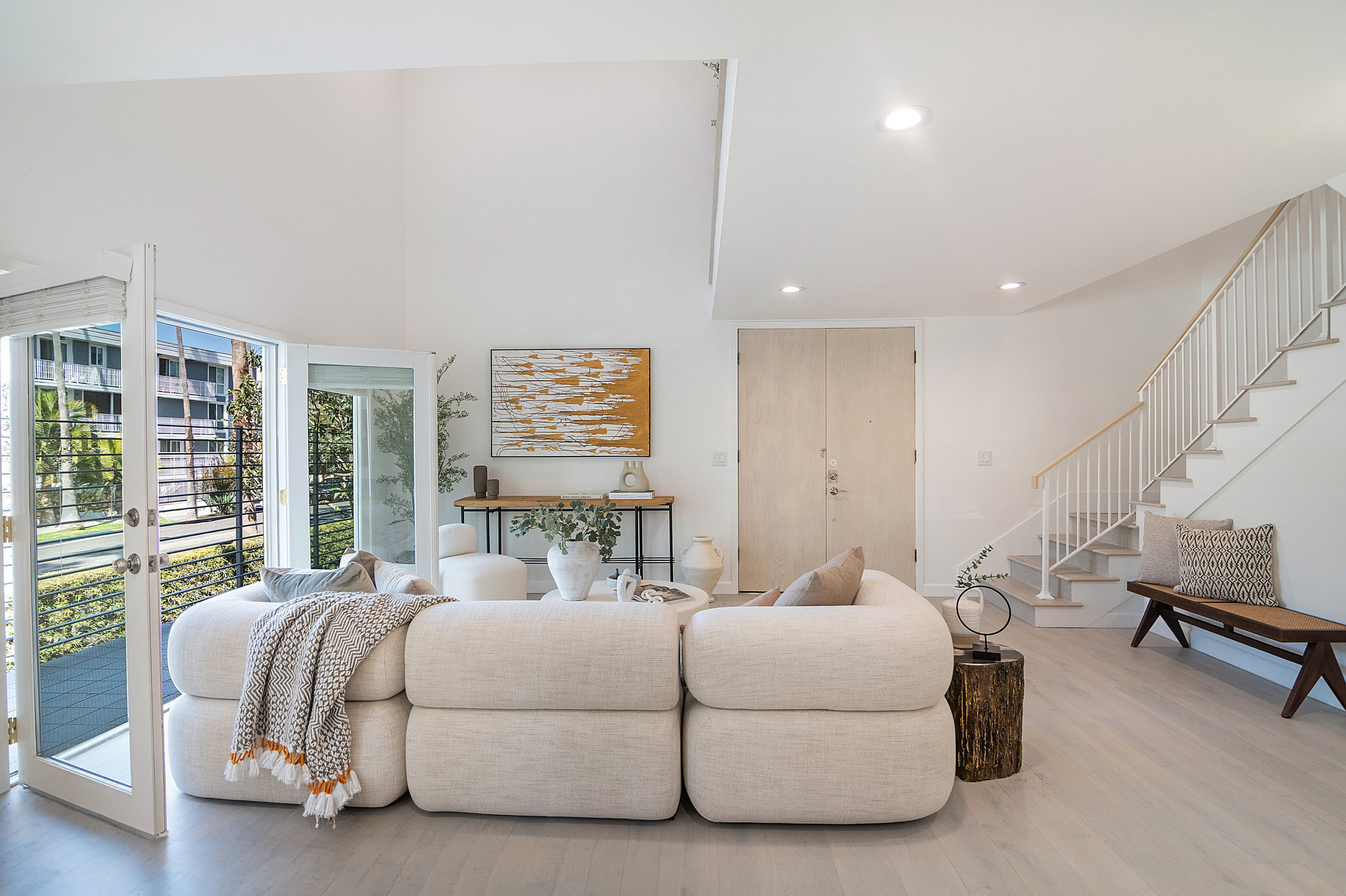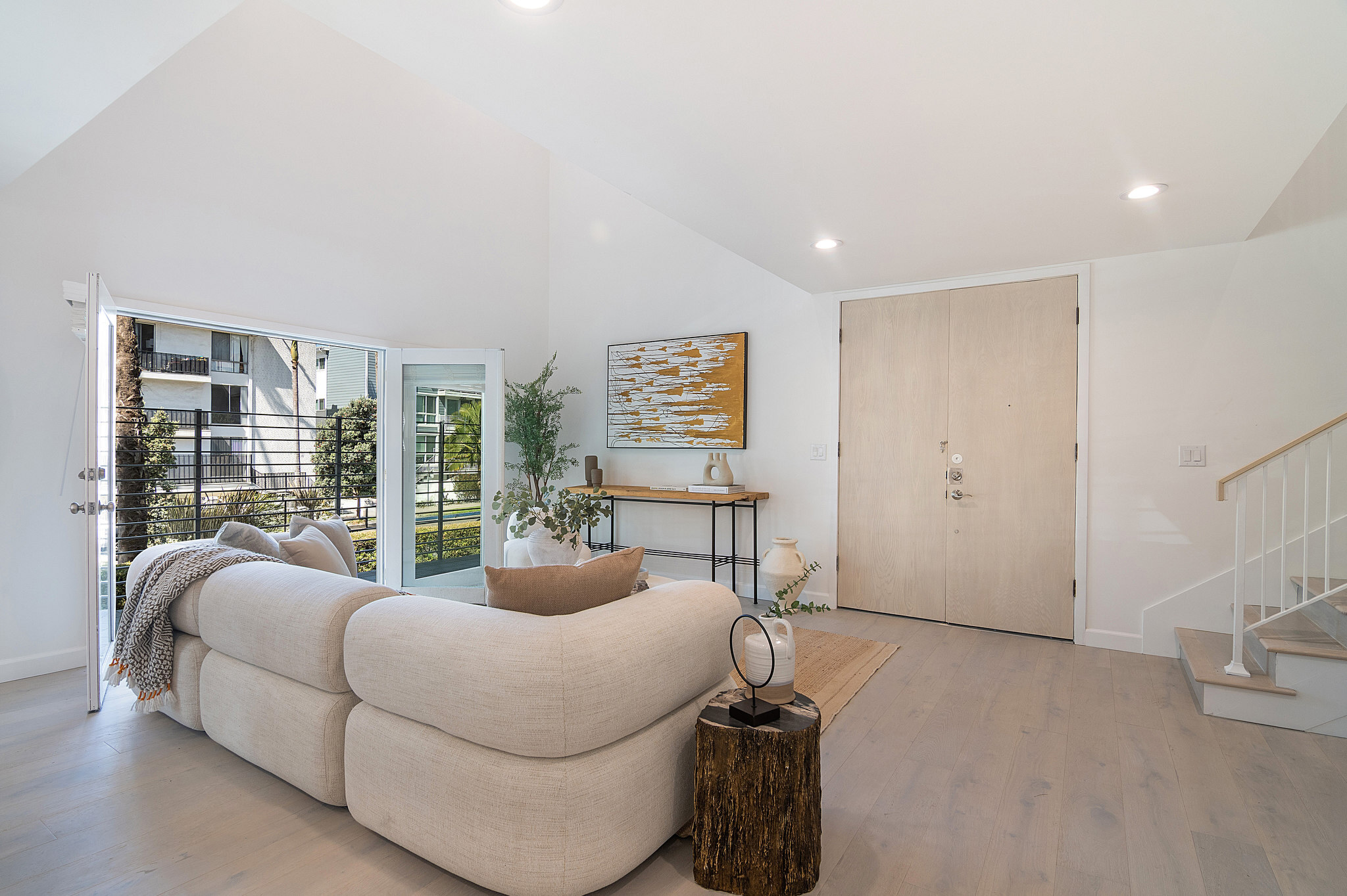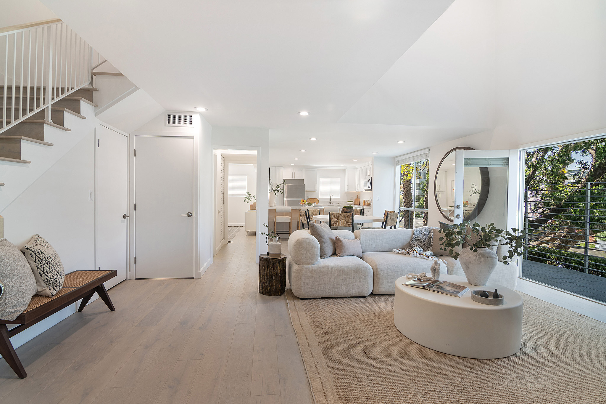 A comprehensive, down-to-the-studs renovation has just been completed on this architectural townhome, resulting in a residence that feels entirely new. Bathed in abundant natural light, the home features an open, thoughtfully designed floor plan accentuated by soaring ceilings, wide-plank wood flooring, and refined recessed lighting, creating an atmosphere of effortless sophistication with ample storage thoughtfully integrated throughout, The contemporary kitchen is a statement in both form and function, appointed with elegant quartz countertops, custom cabinetry, and premium stainless steel appliances. It flows seamlessly into an expansive living area, ideal for both intimate relaxation and stylish entertaining. Thoughtfully configured for both privacy and flexibility, the home offers one bedroom on the main level, while two additional bedrooms including the primary are situated upstairs. A versatile loft positioned between the upper-level bedrooms provides the perfect space for a home office, reading lounge, or creative retreat. Each of the generously proportioned three bathrooms has been meticulously reimagined with modern finishes, including the main suite showcasing a glass-enclosed shower and tub combination and highlighted by a spacious walk-in closet that enhances everyday livability. Situated on coveted 4th Street in Santa Monica, this exceptional residence offers unparalleled access to boutique shopping, acclaimed dining, respected schools, and the iconic coastline. Delivering a refined blend of modern luxury and coastal charm, be the first to enjoy this like-new home! Floorplan can be viewed in Docs.