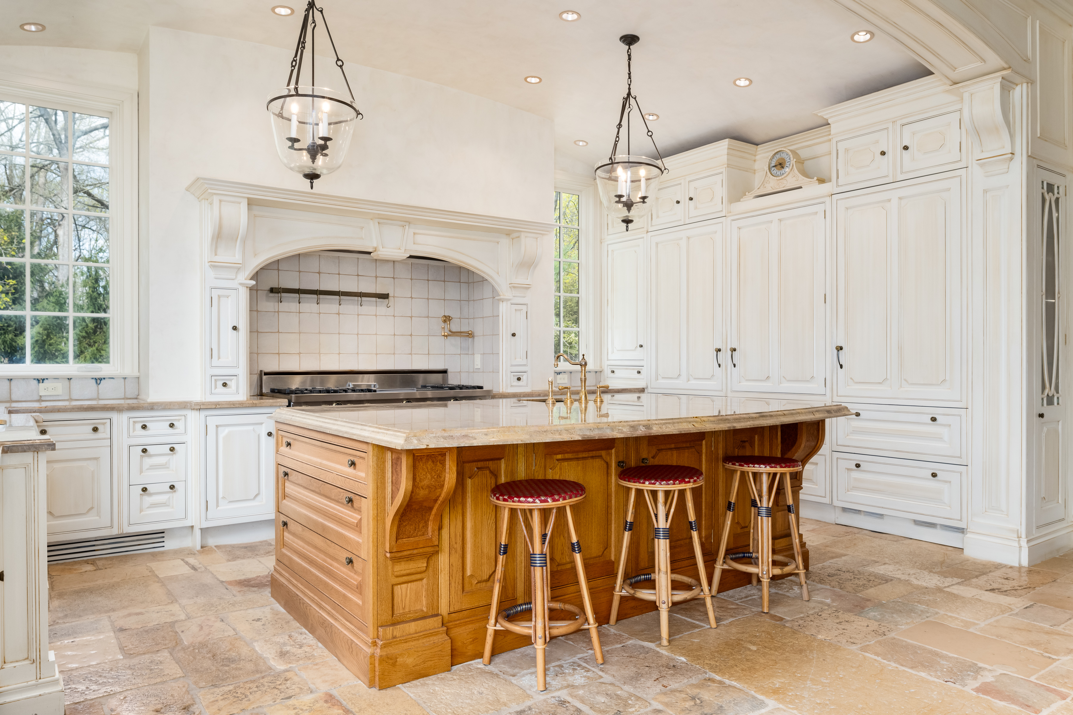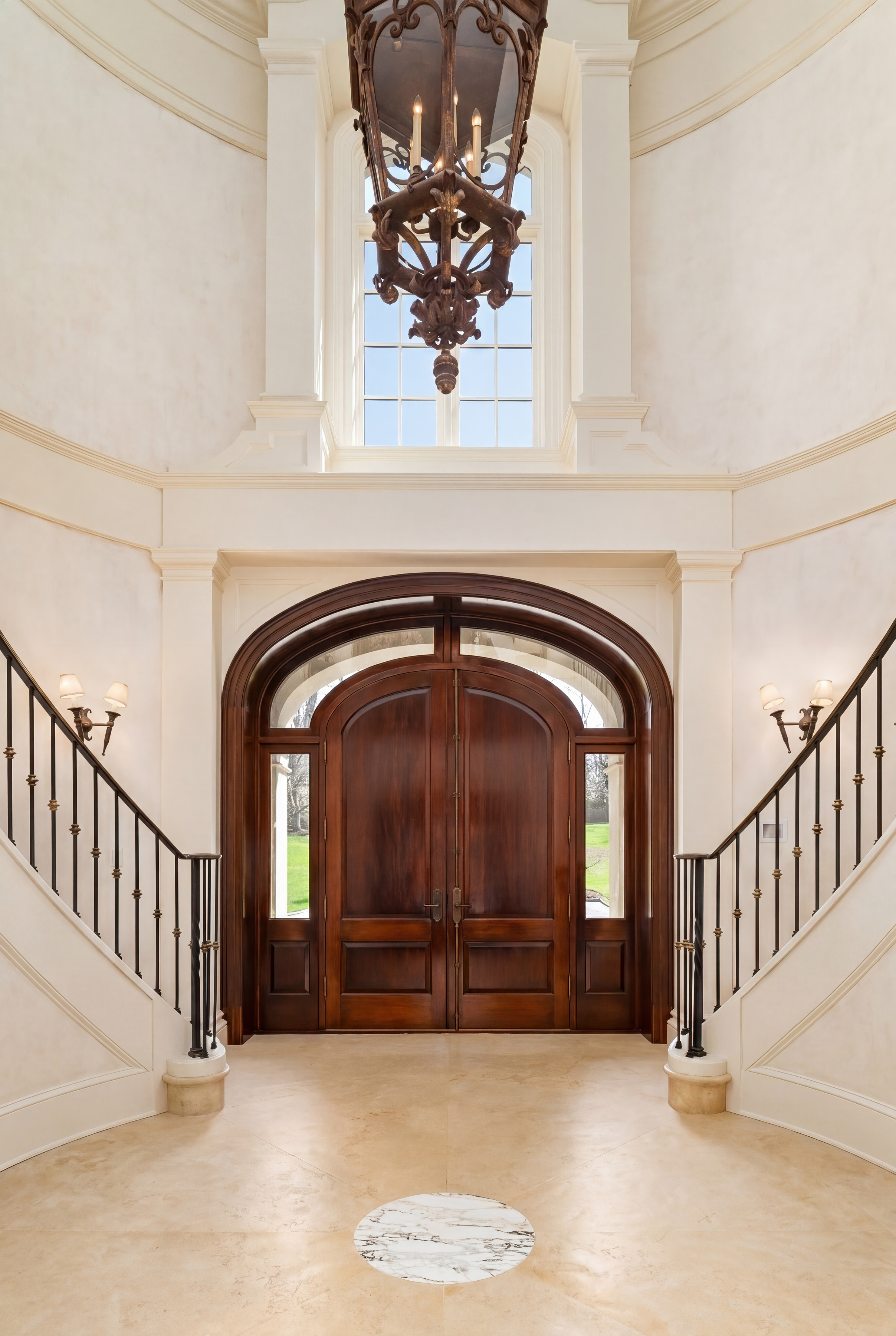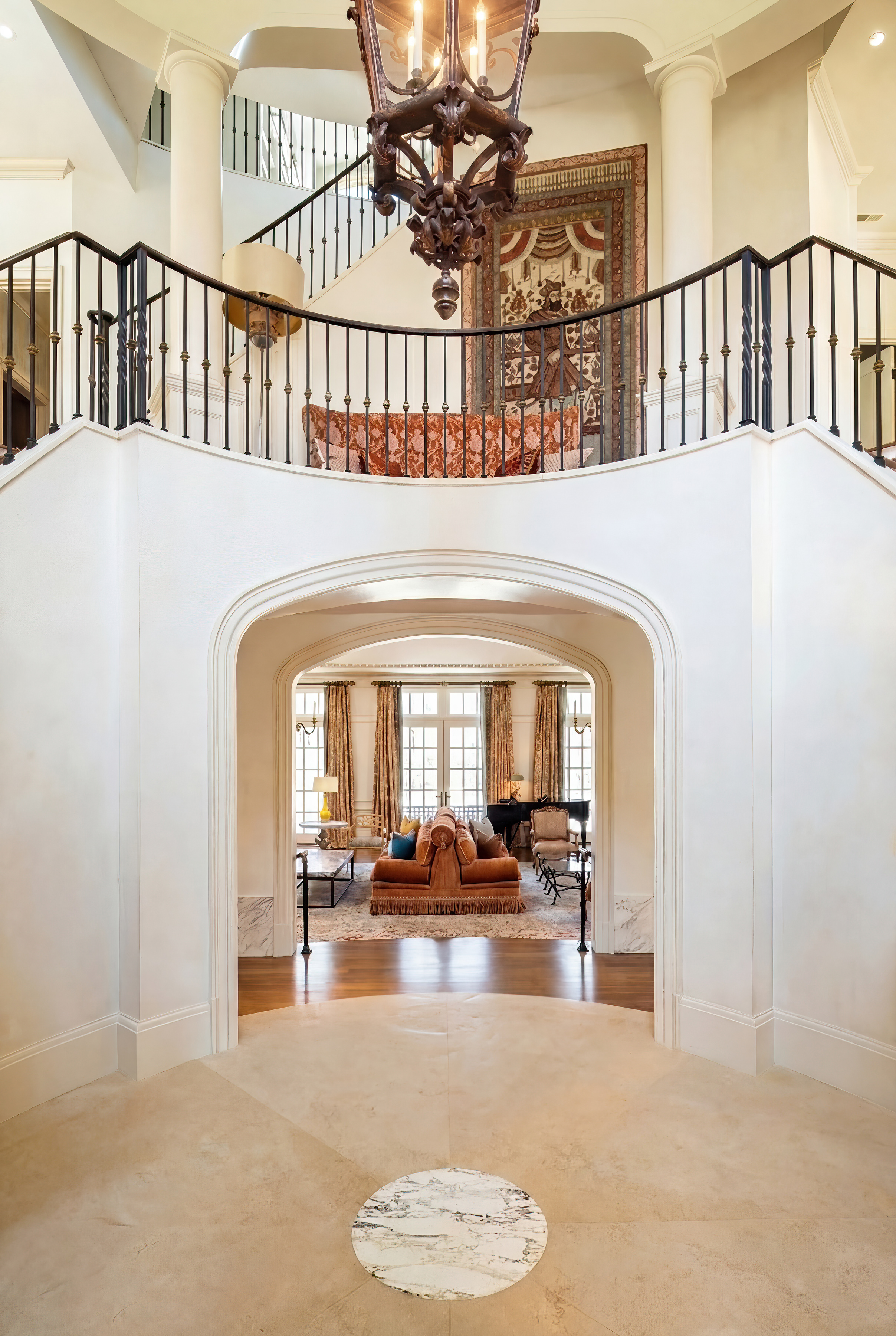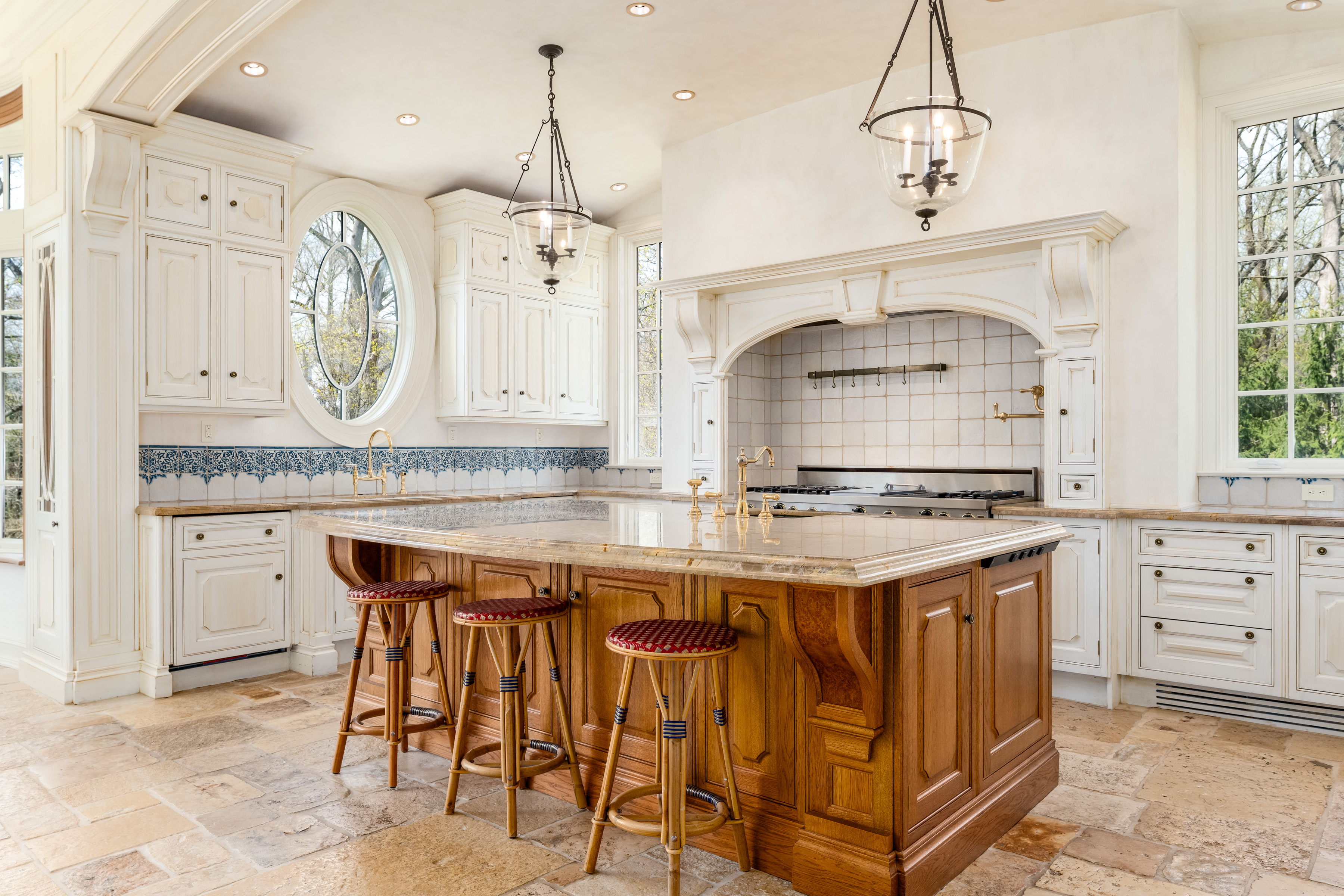 A gated drive opens to this elegant six-bedroom Mid-Country Manor overlooking tranquil views of Horseneck Brook. A stone courtyard introduces the dramatic four-story residence with elegant foyer, where sweeping butterfly staircases and limestone floors create a striking architectural welcome. From the gracious gallery hall, beautifully proportioned formal and informal rooms unfold-including generous living and dining rooms, a family room, chef's kitchen with breakfast room and a private paneled library-all distinguished by hardwood floors, bespoke detailing, and soaring ceilings. A gracious ground floor guest suite completes this level. The serene primary suite offers a spacious retreat with fireplace, luxurious bathrooms, generous dressing rooms and complemented by an elegant sitting room with its own fireplace. Four additional en-suite bedrooms are located on the second floor. The third level offers versatile living space, including a custom home office, playroom, and full bathroom. The walk-out lower level is thoughtfully designed with a pool cabana, sauna and pool bathroom, wine cellar, gym, game room, mudroom, and direct access to the three-car garage. Outdoors, a pool, spa, and outdoor kitchen overlook the gently flowing brook and beautifully landscaped grounds. Ideally situated in the heart of Greenwich, this exceptional residence seamlessly blends privacy, architectural character, and convenience.
