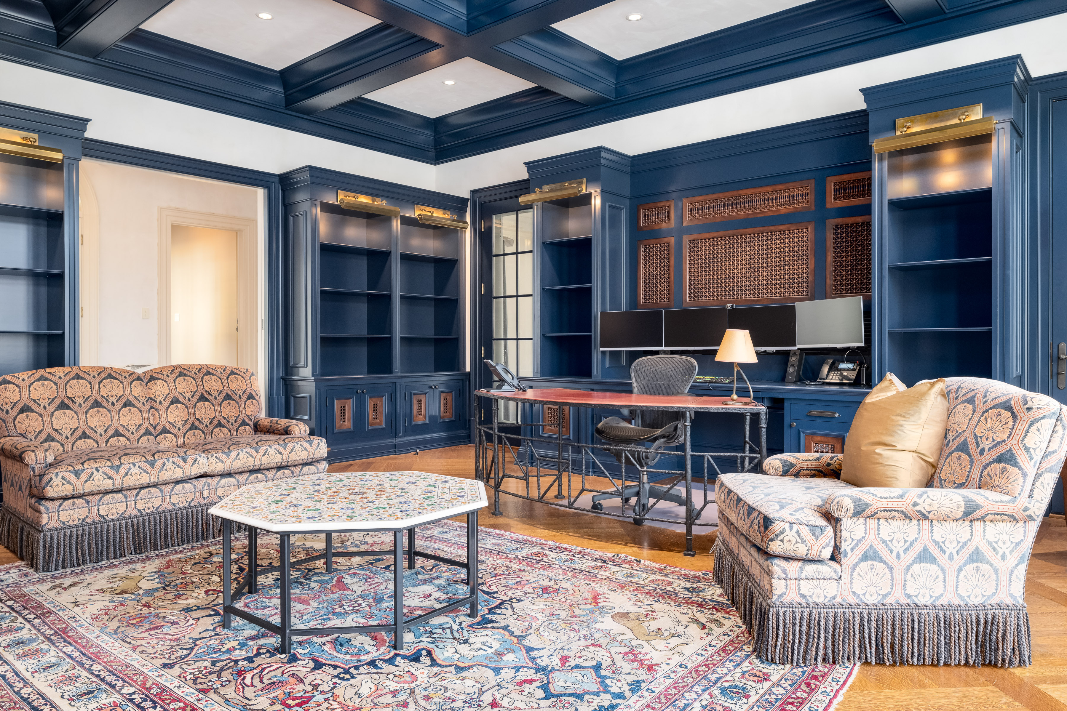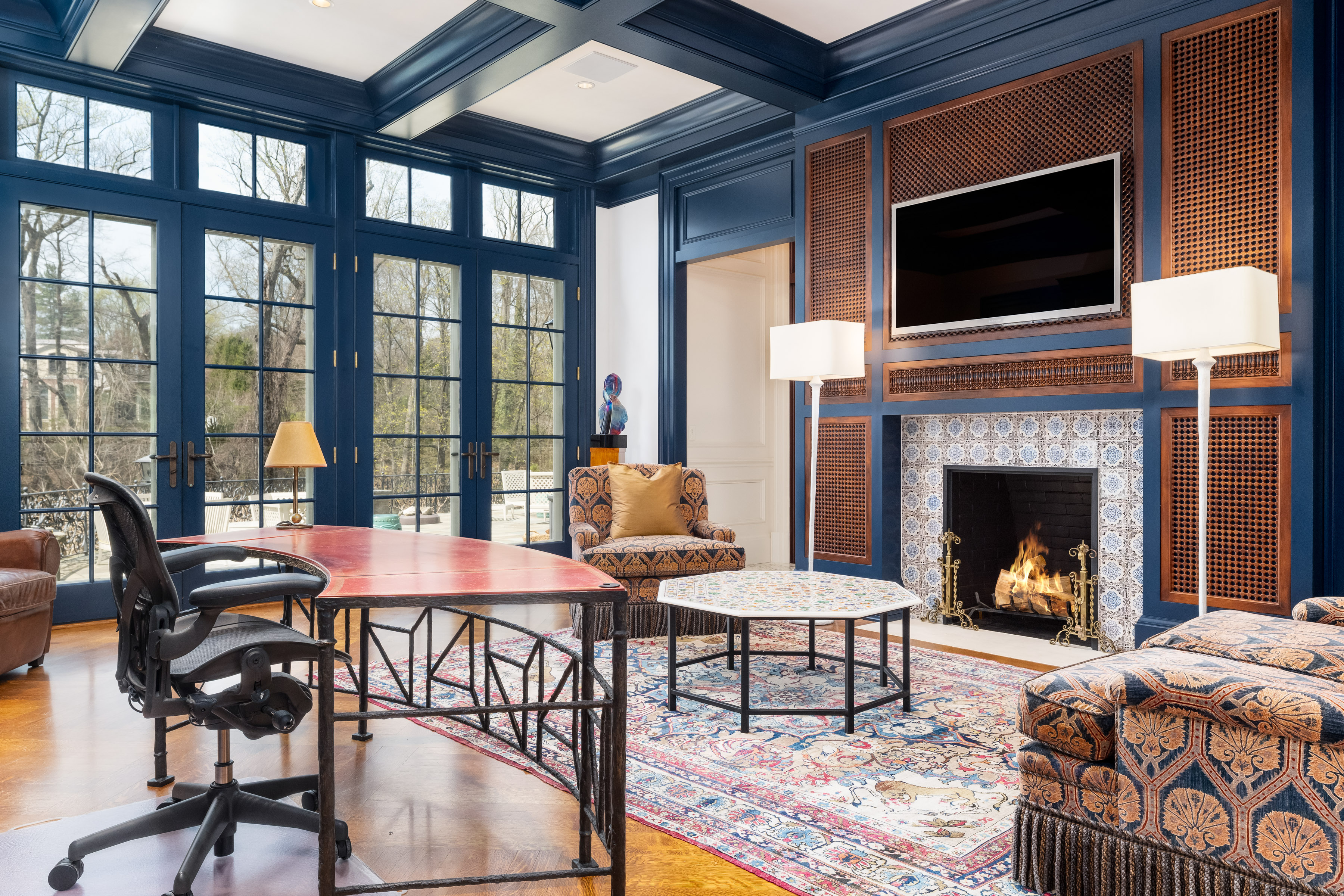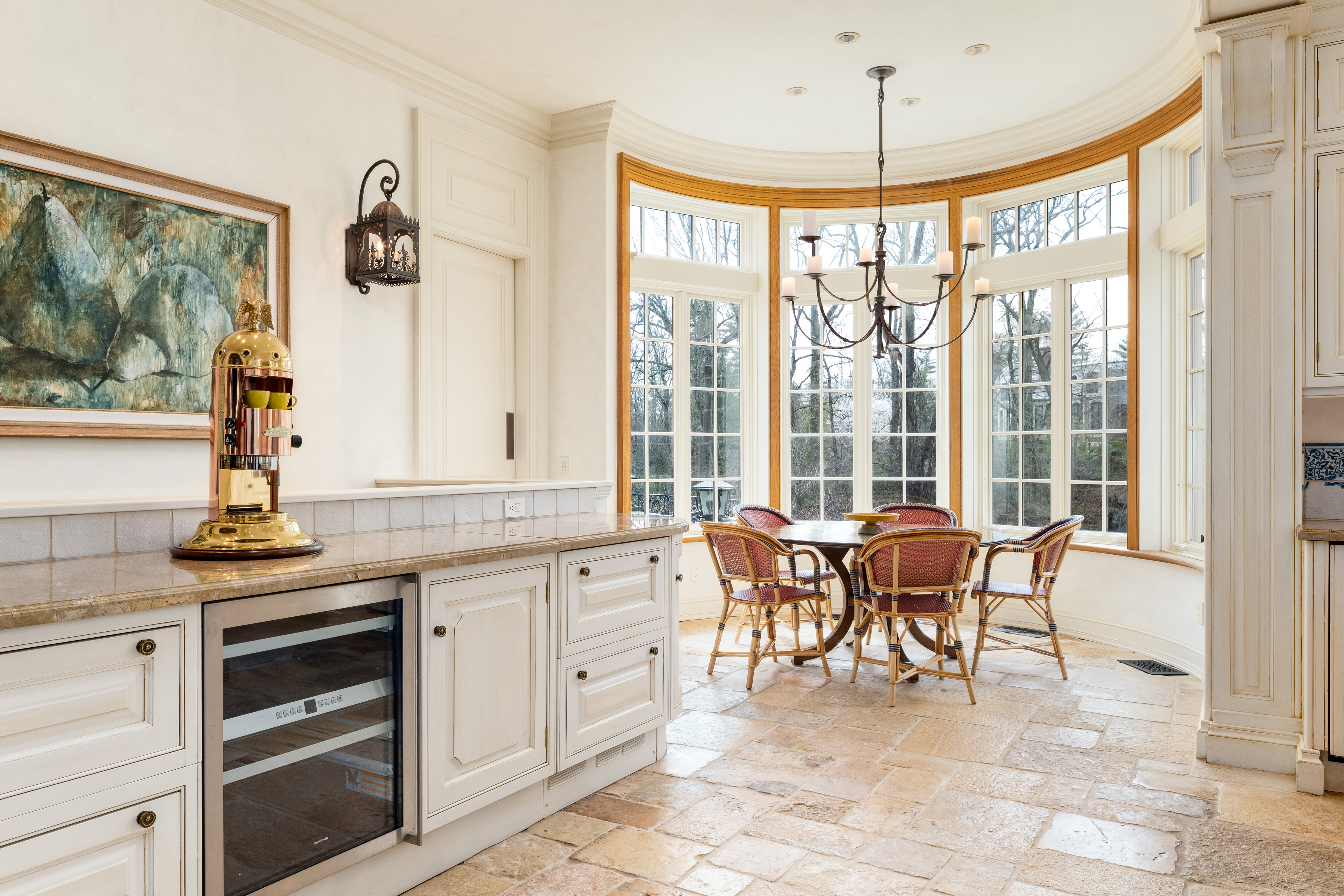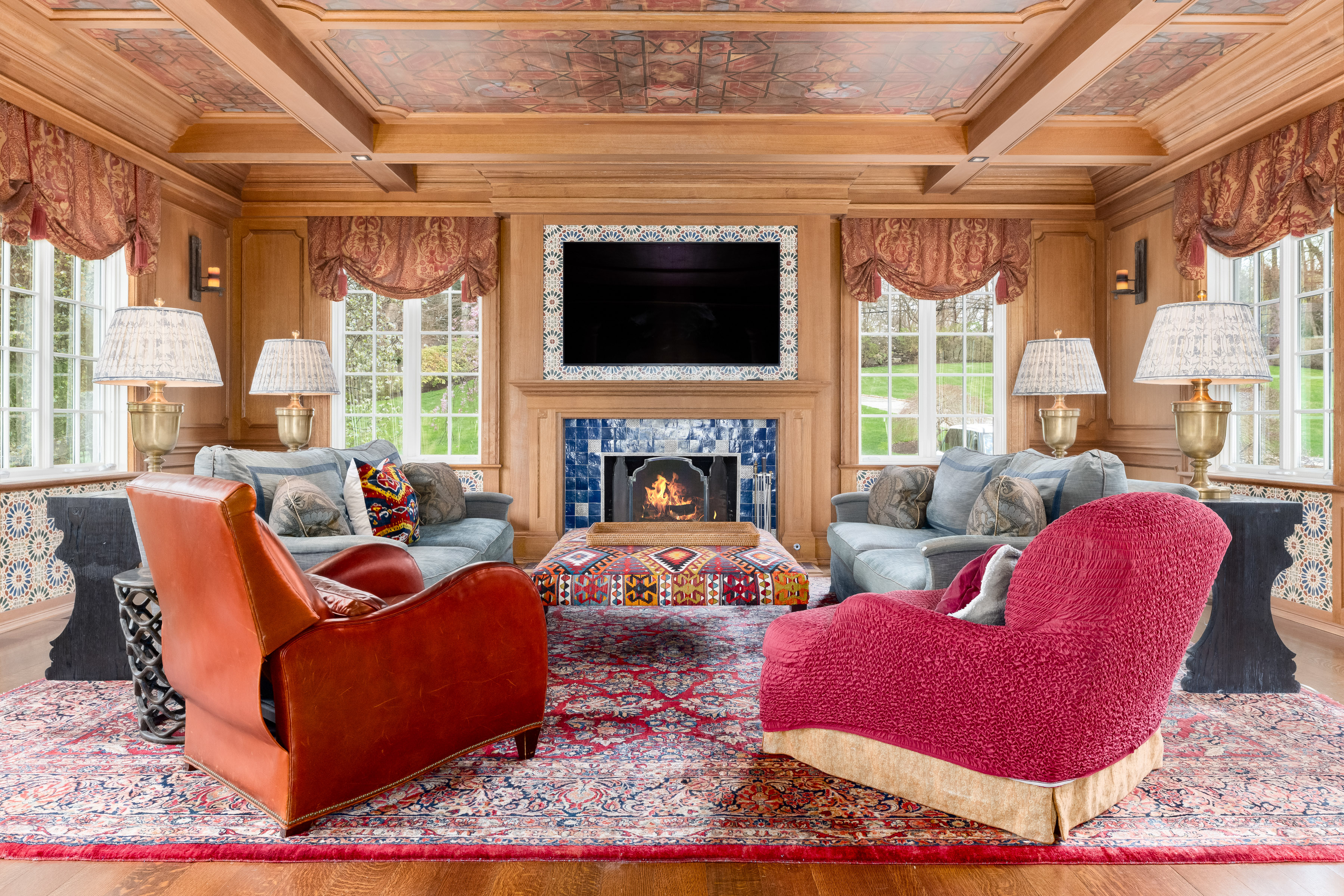 A gated drive opens to this elegant six-bedroom Mid-Country Manor overlooking tranquil views of Horseneck Brook. A stone courtyard introduces the dramatic four-story residence with elegant foyer, where sweeping butterfly staircases and limestone floors create a striking architectural welcome. From the gracious gallery hall, beautifully proportioned formal and informal rooms unfold-including generous living and dining rooms, a family room, chef's kitchen with breakfast room and a private paneled library-all distinguished by hardwood floors, bespoke detailing, and soaring ceilings. A gracious ground floor guest suite completes this level. The serene primary suite offers a spacious retreat with fireplace, luxurious bathrooms, generous dressing rooms and complemented by an elegant sitting room with its own fireplace. Four additional en-suite bedrooms are located on the second floor. The third level offers versatile living space, including a custom home office, playroom, and full bathroom. The walk-out lower level is thoughtfully designed with a pool cabana, sauna and pool bathroom, wine cellar, gym, game room, mudroom, and direct access to the three-car garage. Outdoors, a pool, spa, and outdoor kitchen overlook the gently flowing brook and beautifully landscaped grounds. Ideally situated in the heart of Greenwich, this exceptional residence seamlessly blends privacy, architectural character, and convenience.