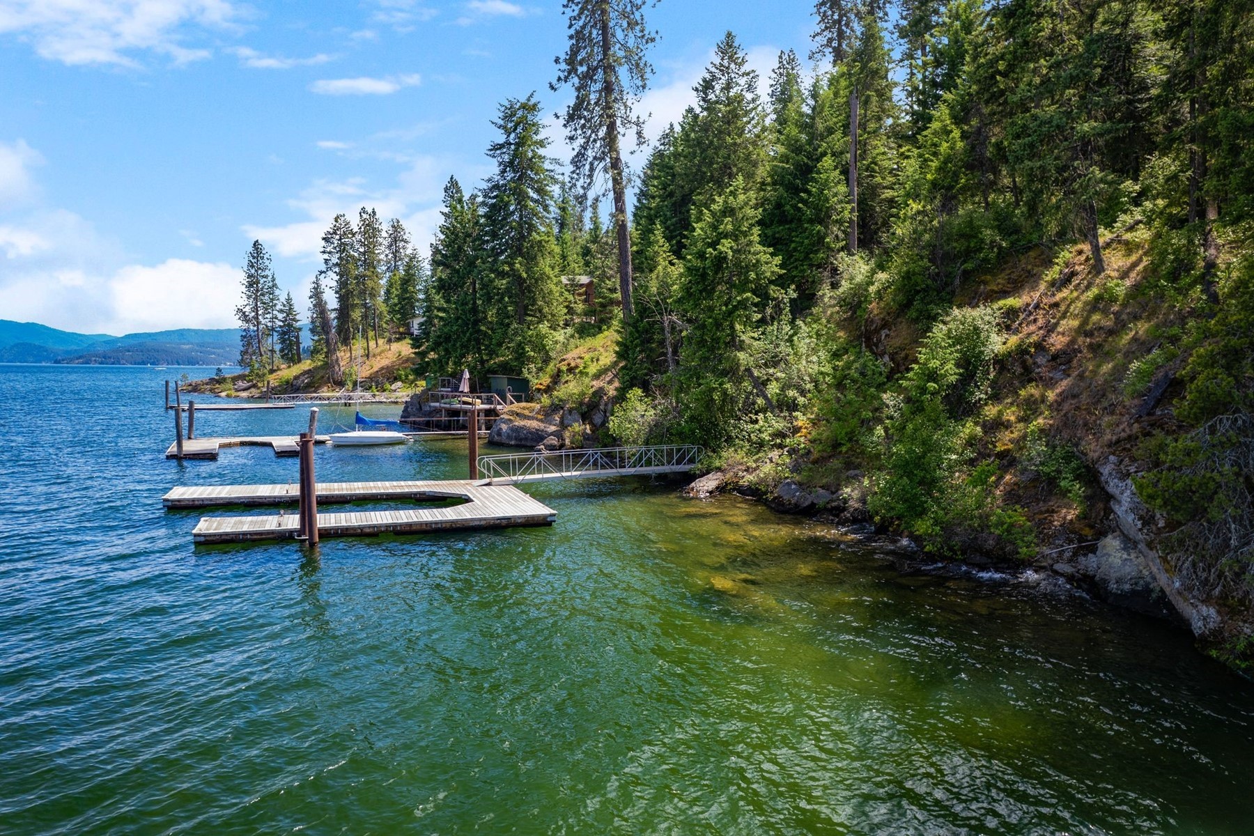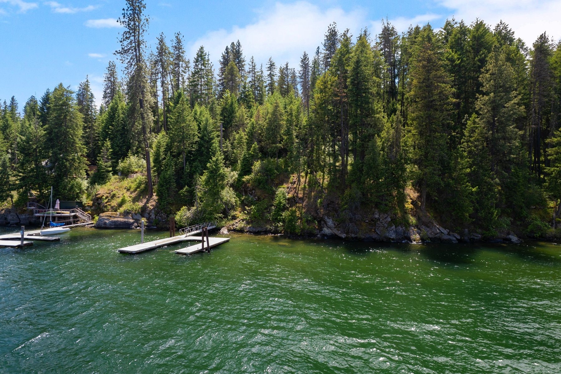 Iconic Waterfront Estate Parcel on Lake Coeur d'Alene | Boat-Access Exclusivity An extraordinary opportunity to claim a legacy position on the coveted main body of Lake Coeur d'Alene, where timeless beauty meets effortless access. Just a scenic five-minute boat ride from the vibrant energy of Downtown Coeur d'Alene, this rare offering places you within easy reach of premier marinas, acclaimed waterfront dining, and year-round amenities, while preserving the privacy of a true retreat. Tucked within the storied shores of Casco Bay, an enclave known for its historic estates and enduring appeal, the property offers 126 feet of pristine frontage along sparkling waters. A substantial 600+ square foot dock invites immediate enjoyment. With a utility easement already in place, the groundwork is set for a seamless transition to your future vision. From this vantage point, take in sweeping, unobstructed views across the lake's most celebrated scenes, including a front-row perspective of the region's cherished summer traditions and fireworks displays. Accessible only by boat, this property offers a rare blend of seclusion and connection with an address that feels both private and effortlessly linked to the best of the lake. Enjoy it today as your personal waterfront escape, or design and build a legacy home that will define generations to come. A setting this iconic, with this proximity, is seldom available. Take advantage of this enduring canvas on one of the West's most treasured lakes.