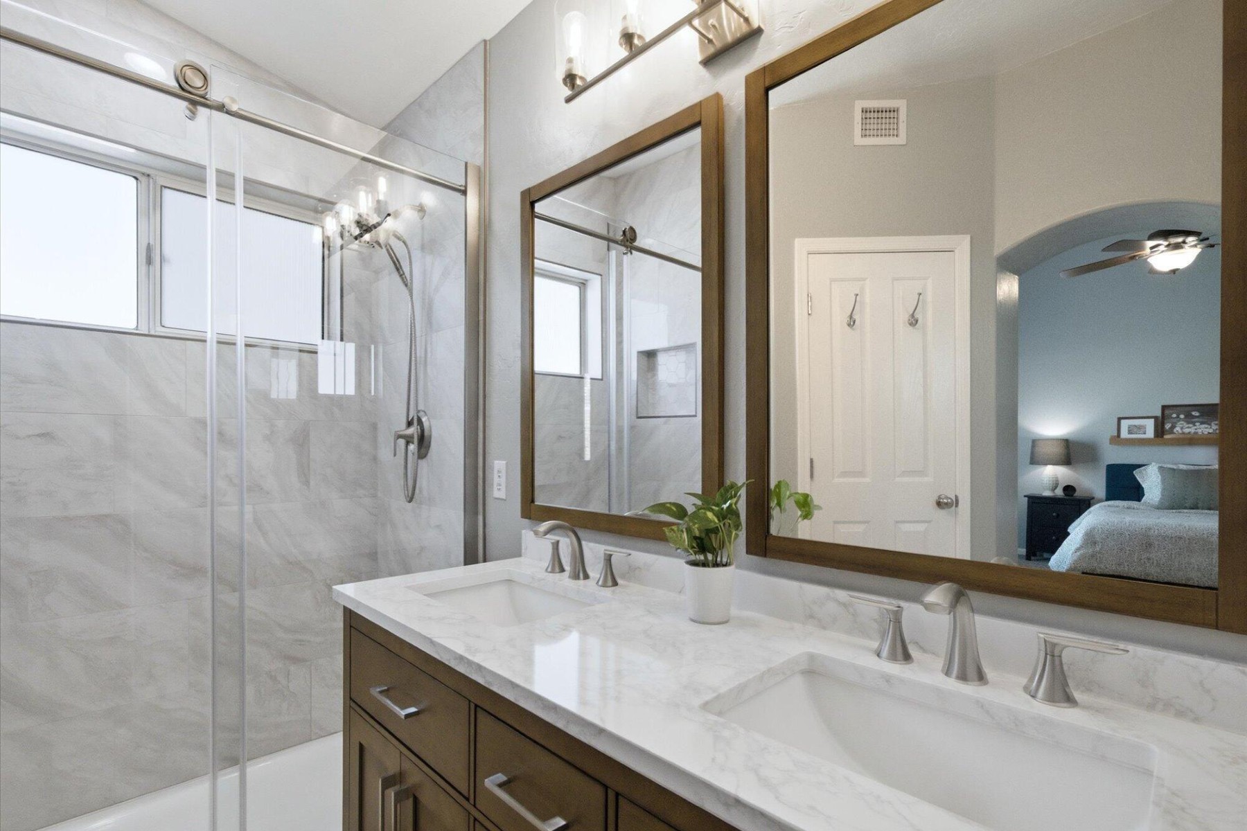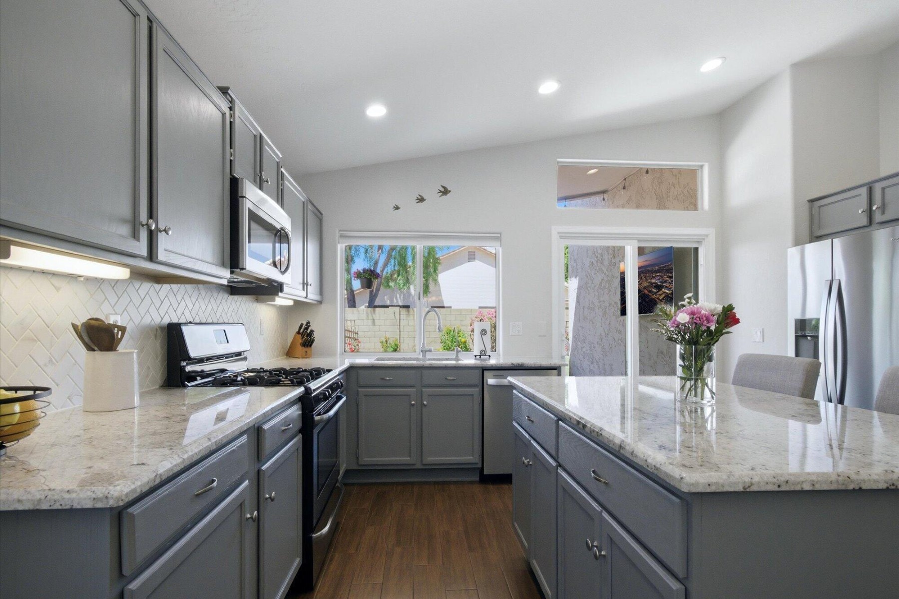 Welcome to this updated 3-bedroom, 2-bath North Colony home offering 1,409 sq ft of comfortable living space and a great blend of style and function. Inside, you'll find wood-look tile flooring, granite kitchen countertops, SS appliances, and beautifully updated bathrooms completed in 2025. Step outside to a backyard made for entertaining, featuring an outdoor TV, storage shed, large paver patio, RV gate and room to enjoy Arizona outdoor living. With a whole-house filtration system, roof replaced in 2021, newer hot water heater. With quick access to the 51 and 101, this home is move-in ready and ideally located. North Colony has it's own private park with playground equipment and lots of space to walk the dogs or play with the kids.