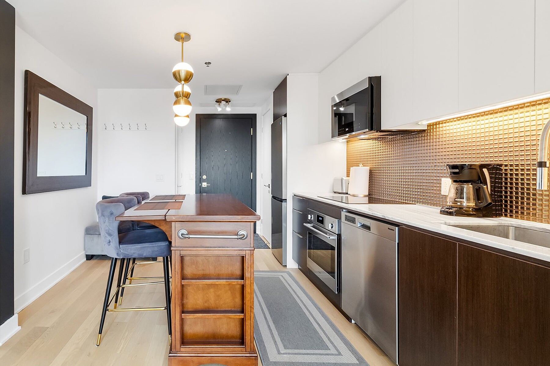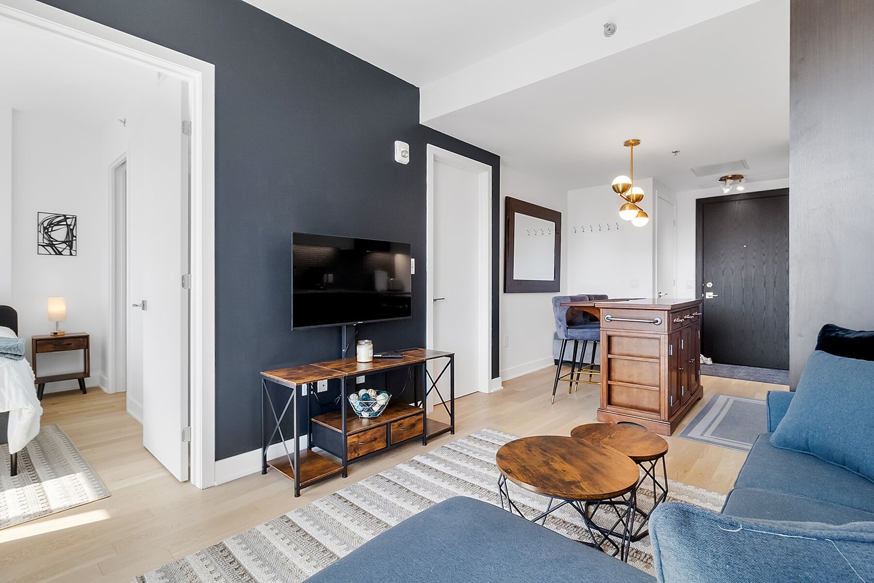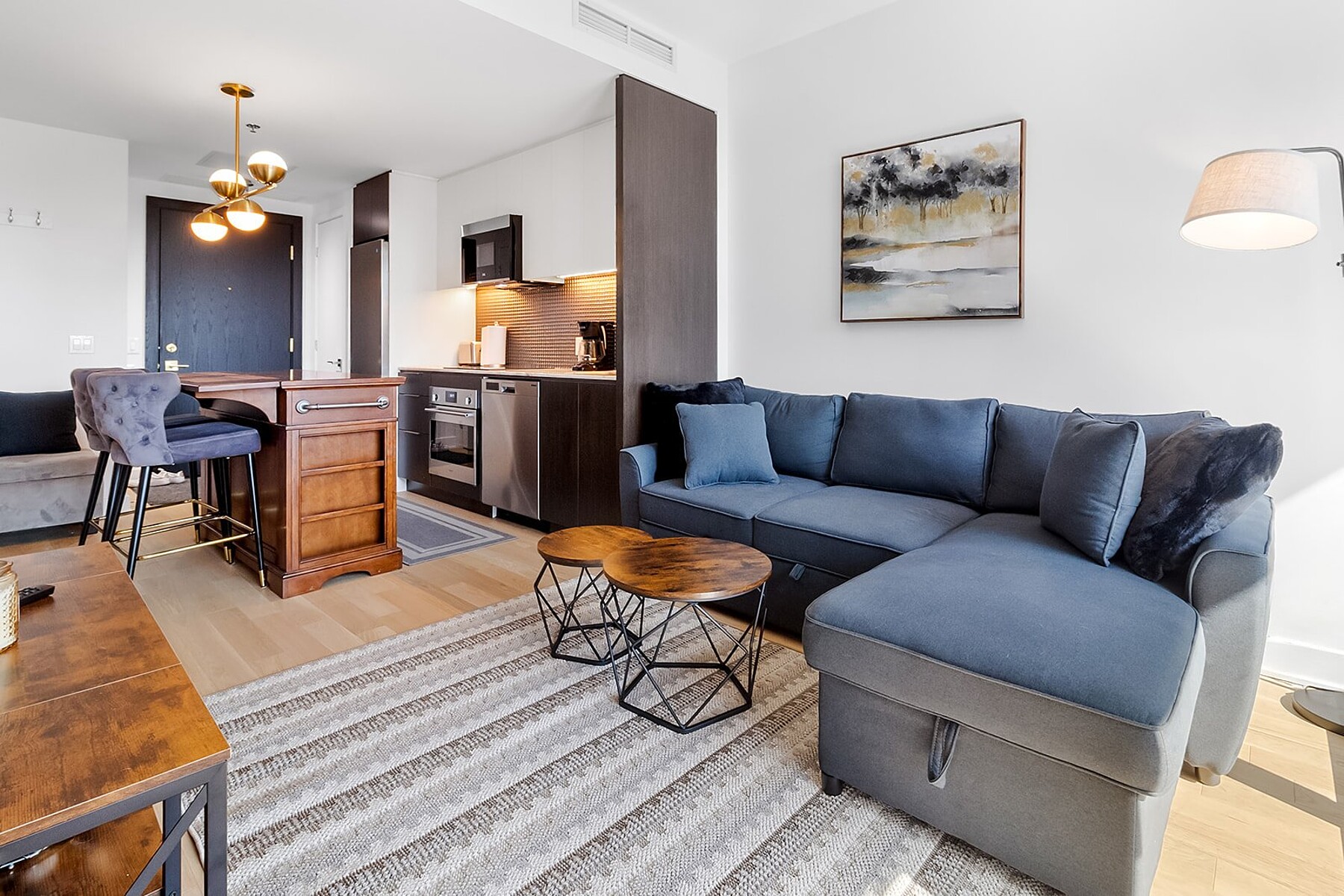 Perched on the 16th floor in the heart of downtown Montreal, this charming apartment offers the perfect blend of style and comfort. Bright and thoughtfully designed, it features a cozy living space, a modern kitchen, a spacious bedroom with walk-in closet, and comes fully furnished for effortless living. Just steps from Peel & McGill metros, shops, cafés, universities, and cultural hotspots, city living has never felt so easy!