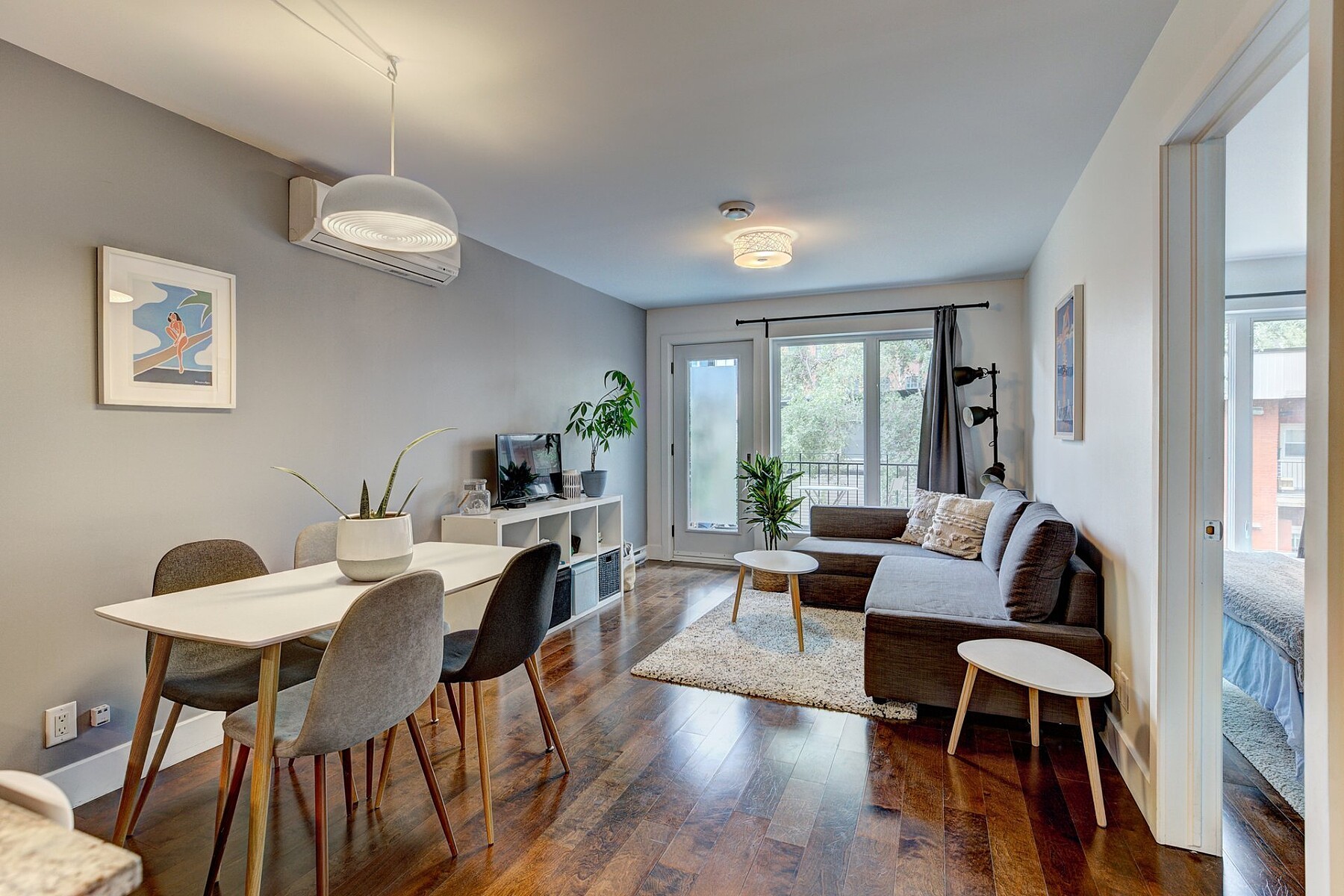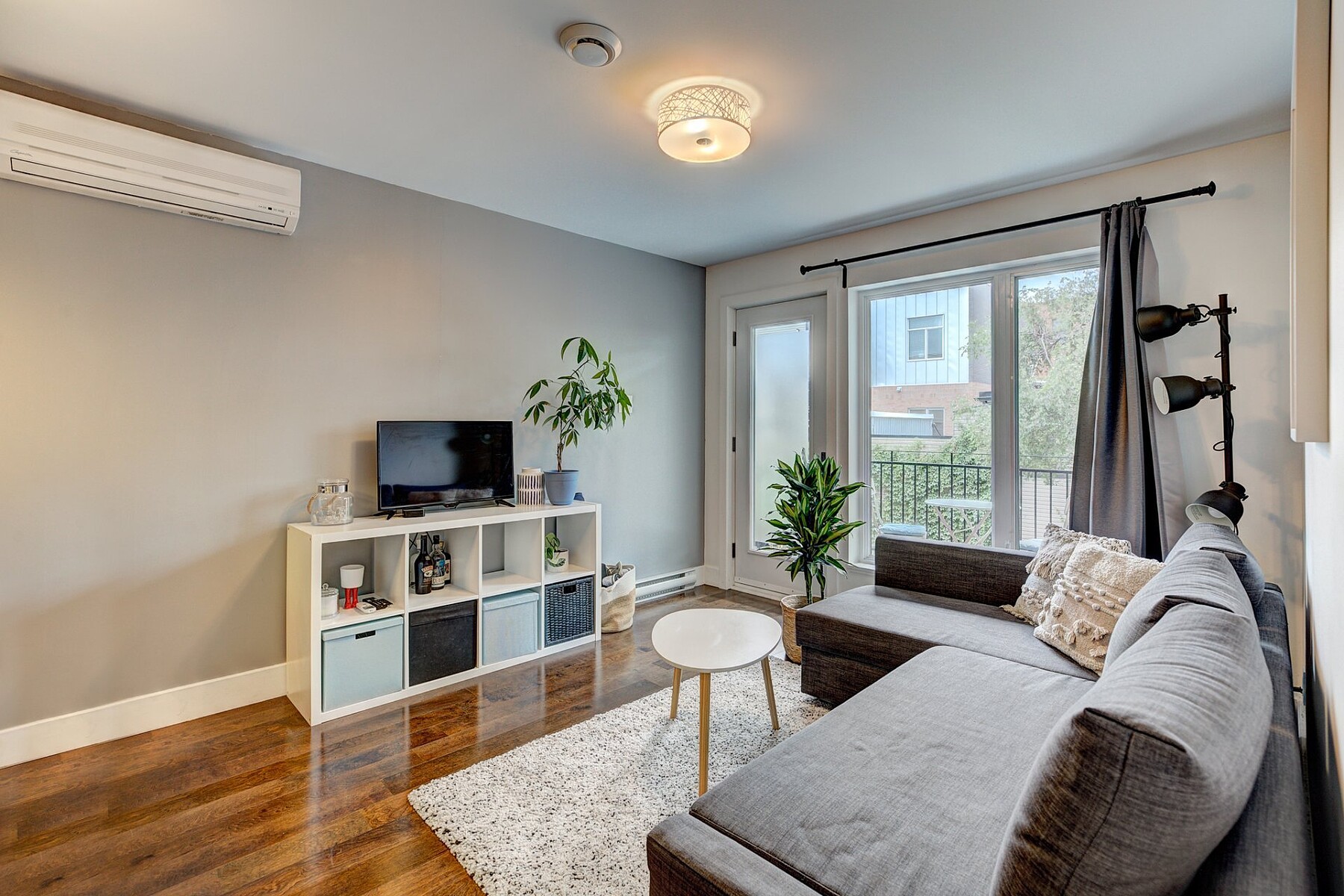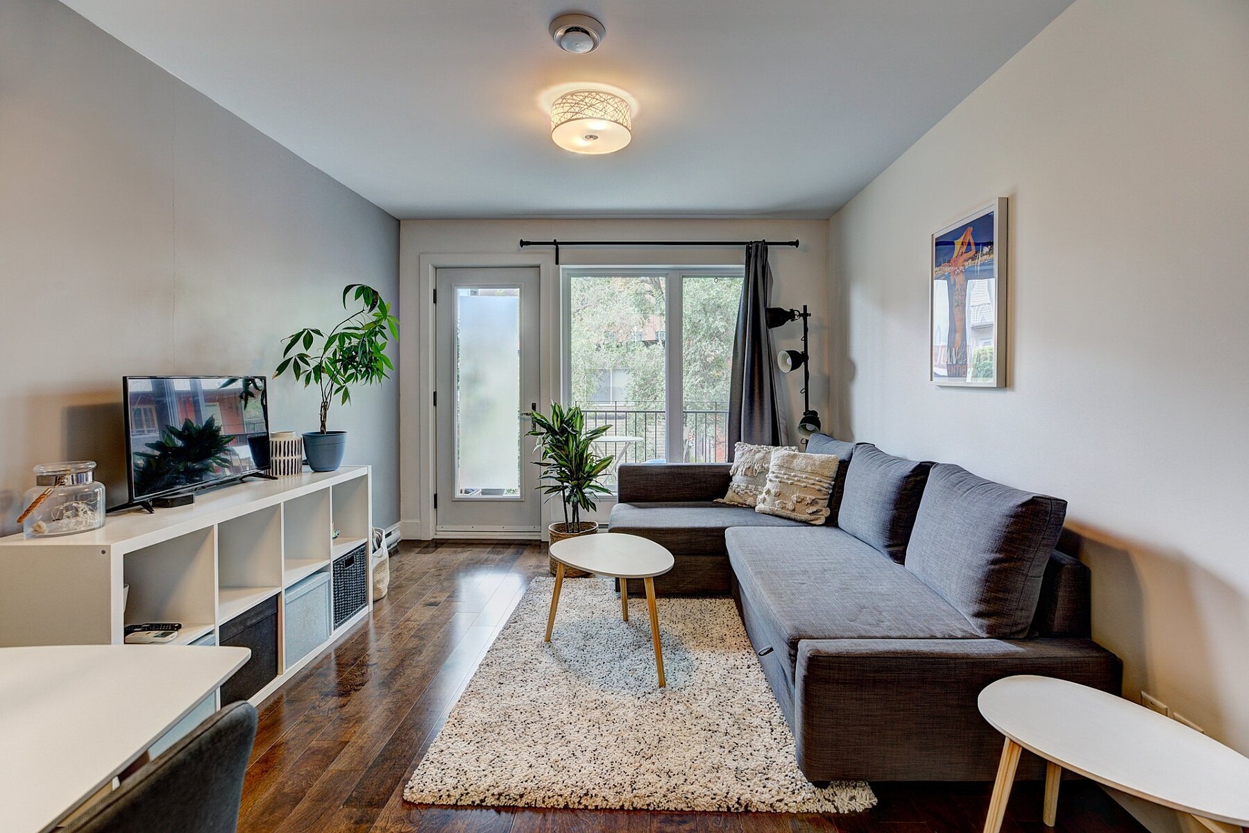 Superb 1 bedroom condo with private balcony in Le Sud-Ouest! Located two blocks away from Notre-Dame Street, at less than a 5 minute walk from the Atwater Market and a few steps from the bike path along the Lachine Canal. Appliances included.
