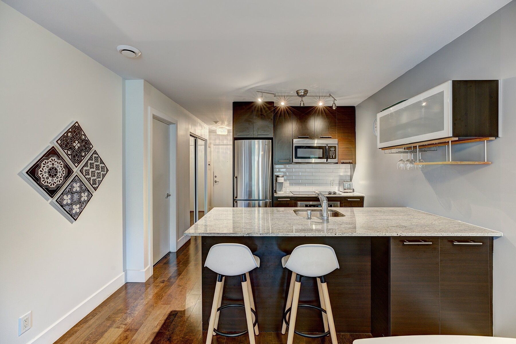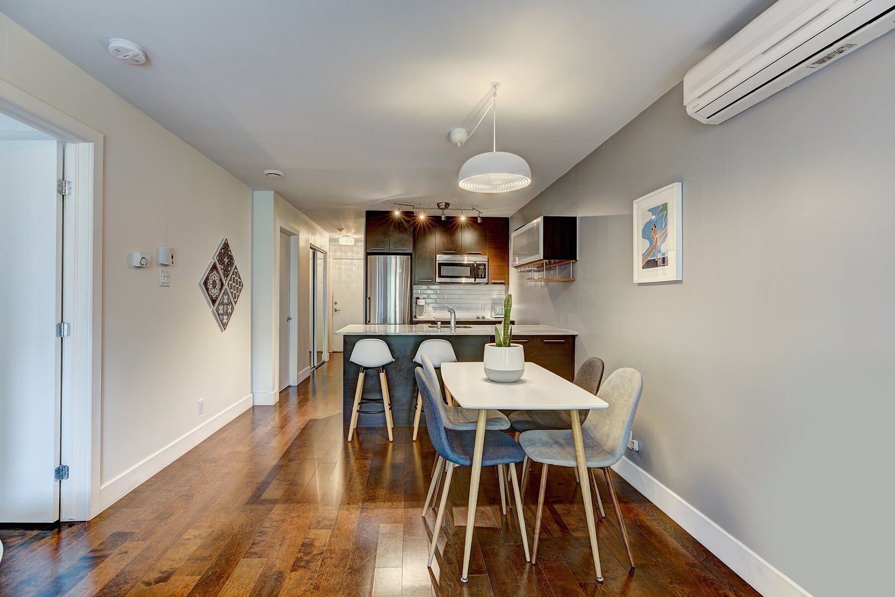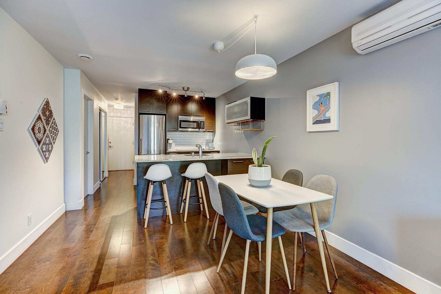 Superb 1 bedroom condo with private balcony in Le Sud-Ouest! Located two blocks away from Notre-Dame Street, at less than a 5 minute walk from the Atwater Market and a few steps from the bike path along the Lachine Canal. Appliances included.