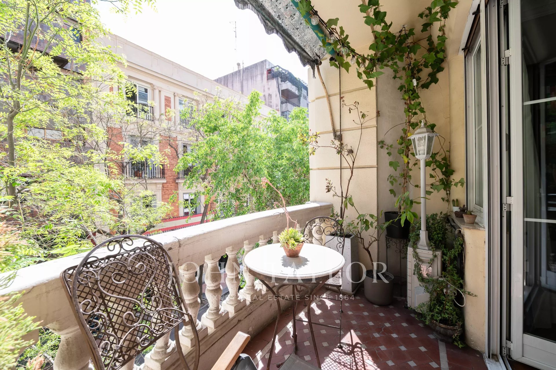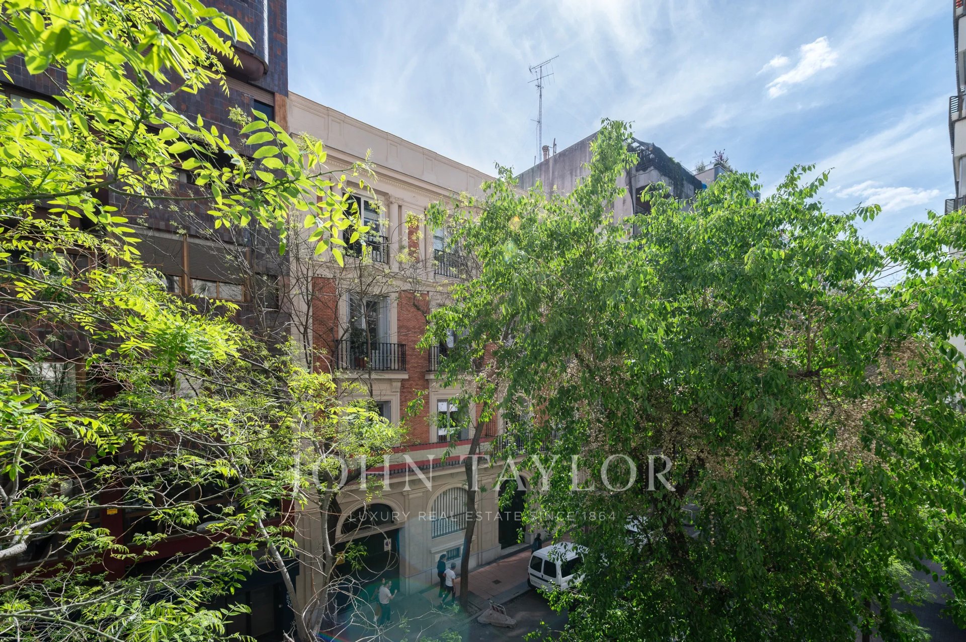 This unmatched property stands out for its tranquil terrace, with natural light throughout the day and views of the treetops, its high ceilings, its classic style, and a lot of tranquility. It is located in an elegant building with concierge service.Upon entering the portal, the nobility of its materials impresses, especially marble, which provides an immediate sense of distinction, along with elevators fitting for the grand character of the property.Once inside the home, we find an unusual element: an imposing double door that anticipates the unique character of the property.Undoubtedly, one of its major attractions is the terrace, with pleasant views of the street trees, which provide privacy and create a cozy and distinctive space.The home, currently to be renovated, offers an excellent opportunity to fully adapt it to the buyer's taste. Its classic stained glass windows are a singular element highly valued by lovers of the Salamanca neighborhood. Additionally, the south orientation of the living room guarantees exceptional brightness throughout the day.The interior area of the house faces a large planted courtyard, which allows even interior rooms to enjoy abundant natural light.This is a truly special property that combines the most demanded qualities by discerning buyers.Located in the heart of Recoletos, on a peaceful street next to the Golden Mile and surrounded by some of Madrid's best restaurants.
