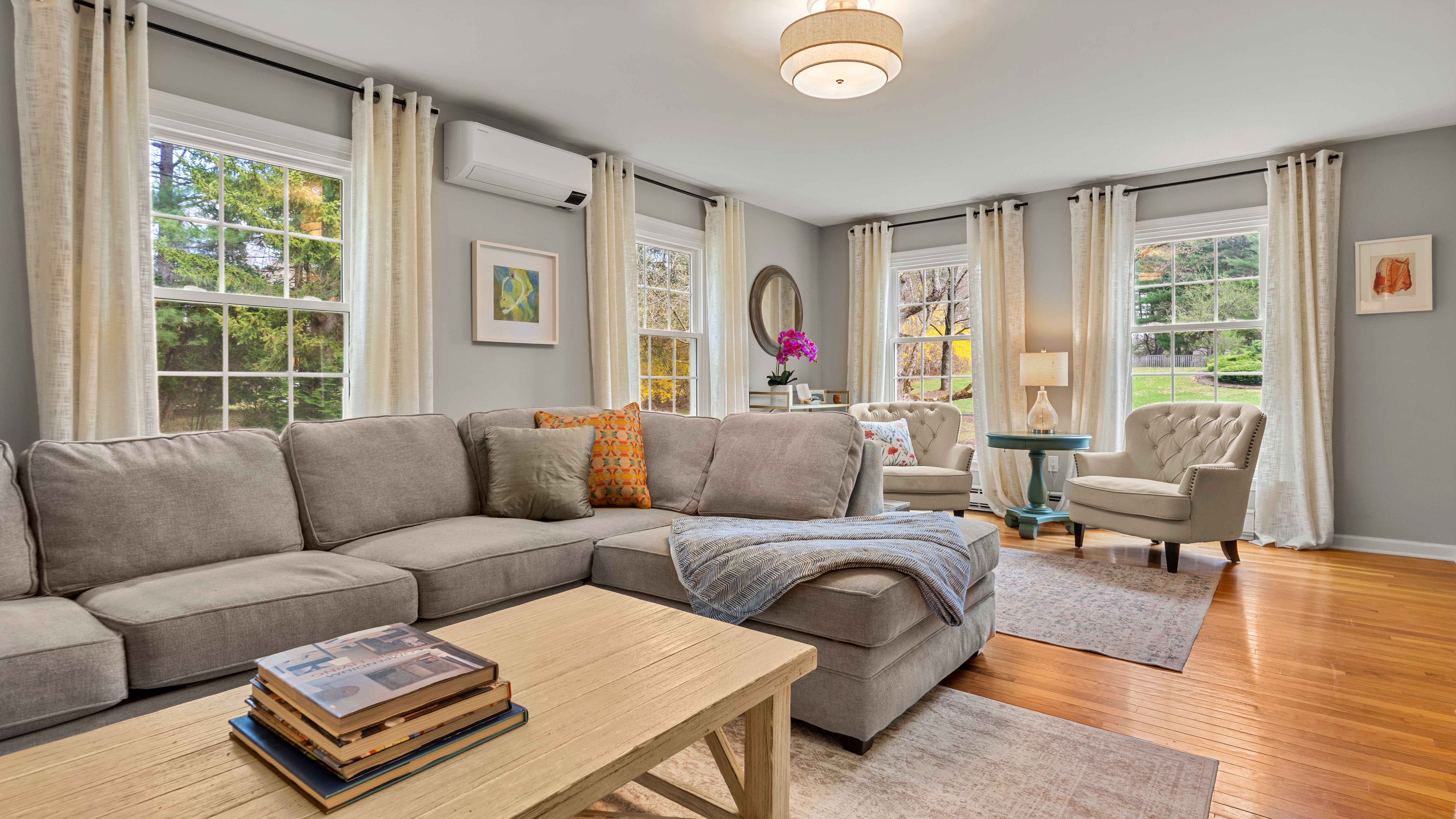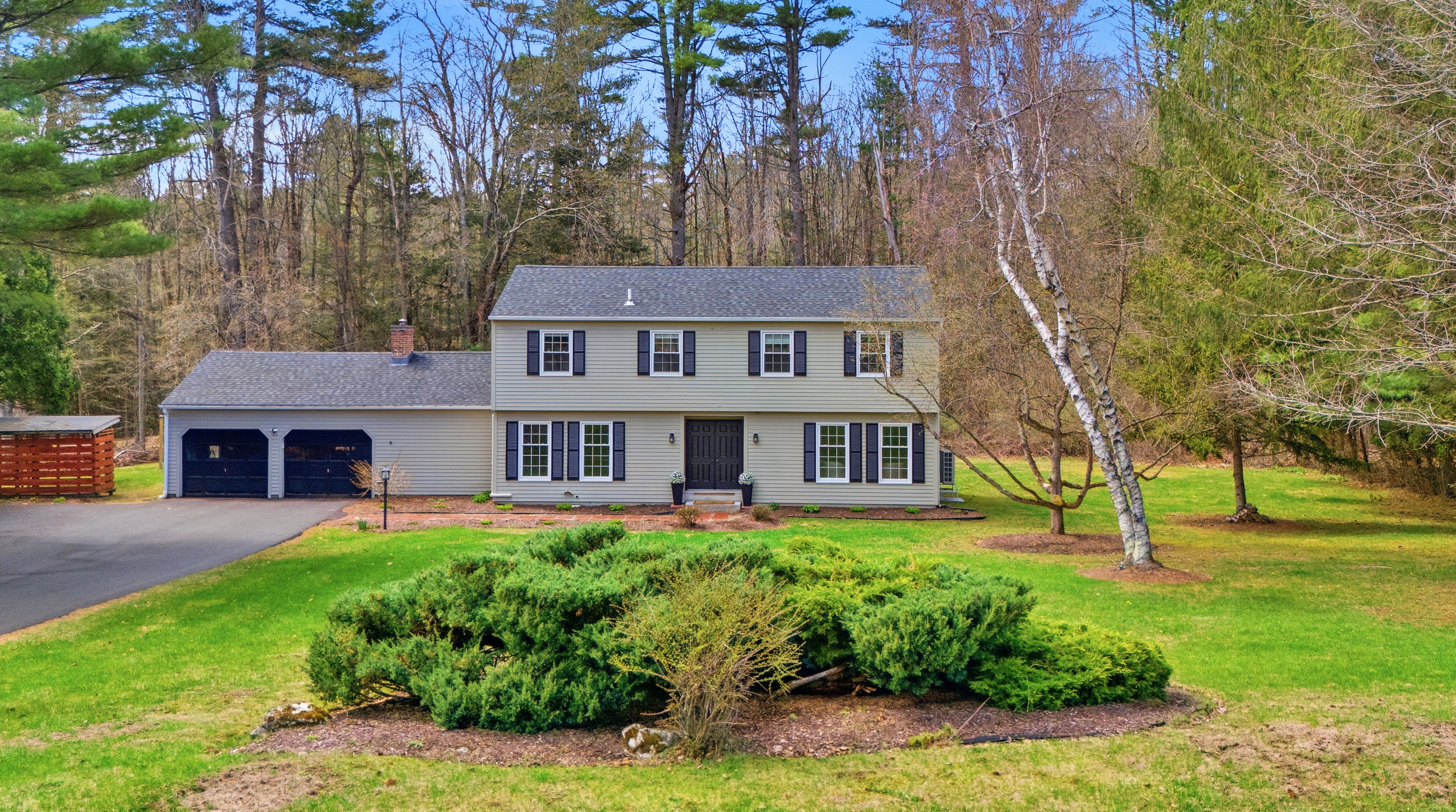 Located on a peaceful cul-de-sac, this beautifully refreshed 4-bedroom, 2.5-bathroom Colonial perfectly blends New England charm with modern updates. This home is privately situated on a 1.01 acre lot. This move-in-ready home features a bright, airy interior with fresh paint, new contemporary light fixtures, and elegant updated wooden floors. The heart of the home is the expansive kitchen, complete with newer stainless-steel appliances, which flows seamlessly into a dining area and family room anchored by a cozy wood-burning fireplace. Off the family room is a spacious screened porch overlooking a private backyard. The main level includes formal living and dining rooms, powder room and laundry. There are four mini-splits for heating and cooling throughout the house. There is also electric baseboard heat with individual thermostats. Roof and stainless steel kitchen appliances are new in 2024.