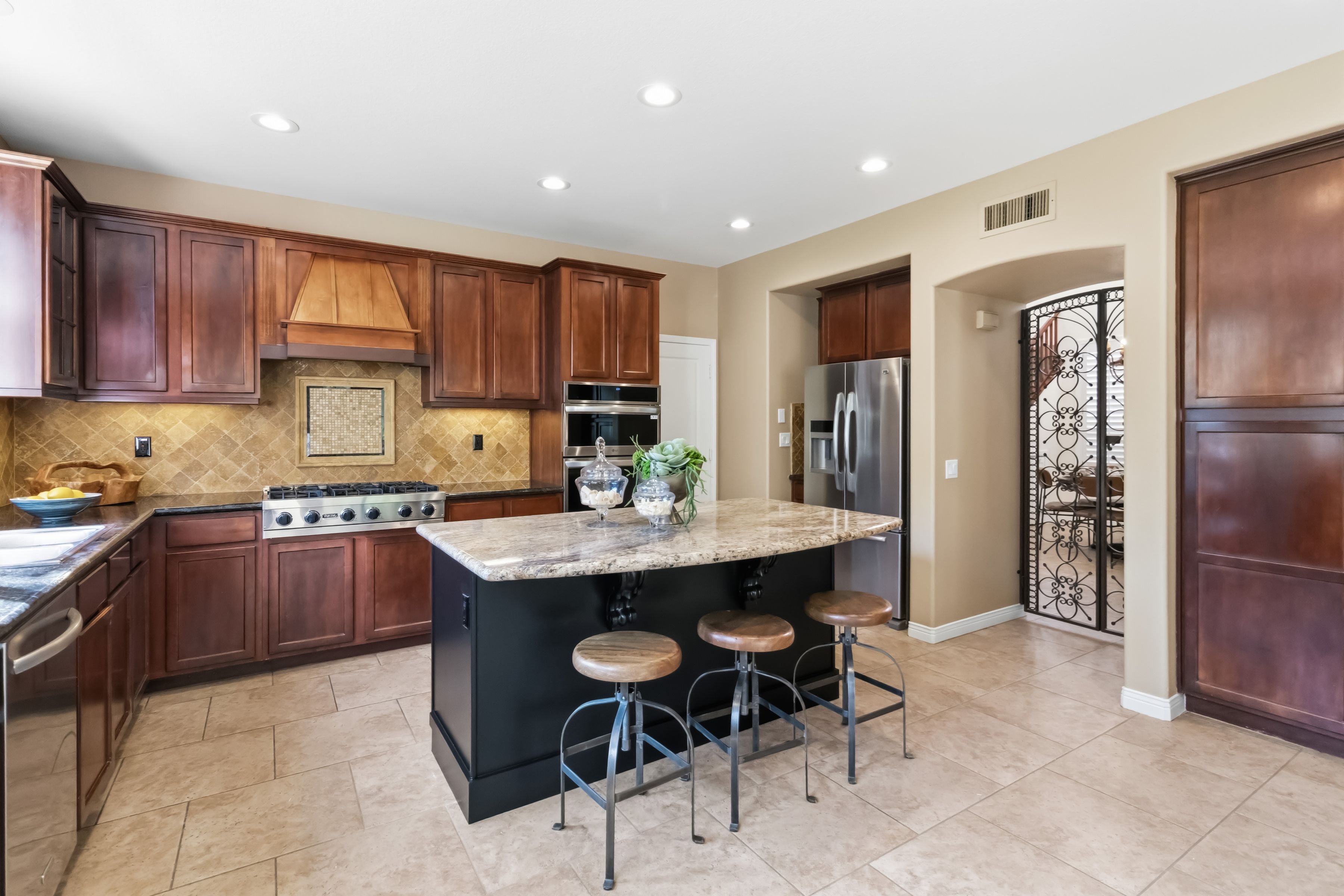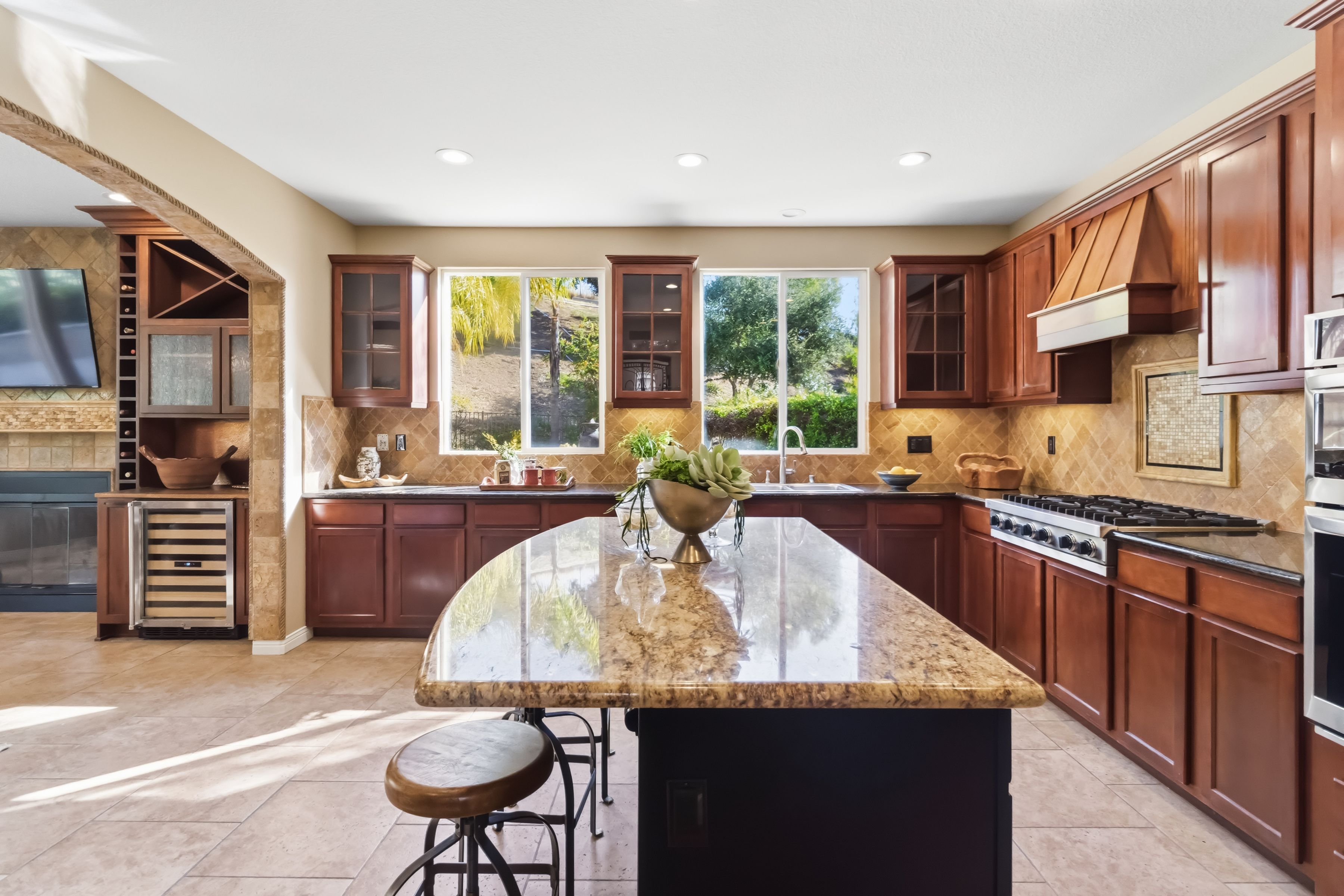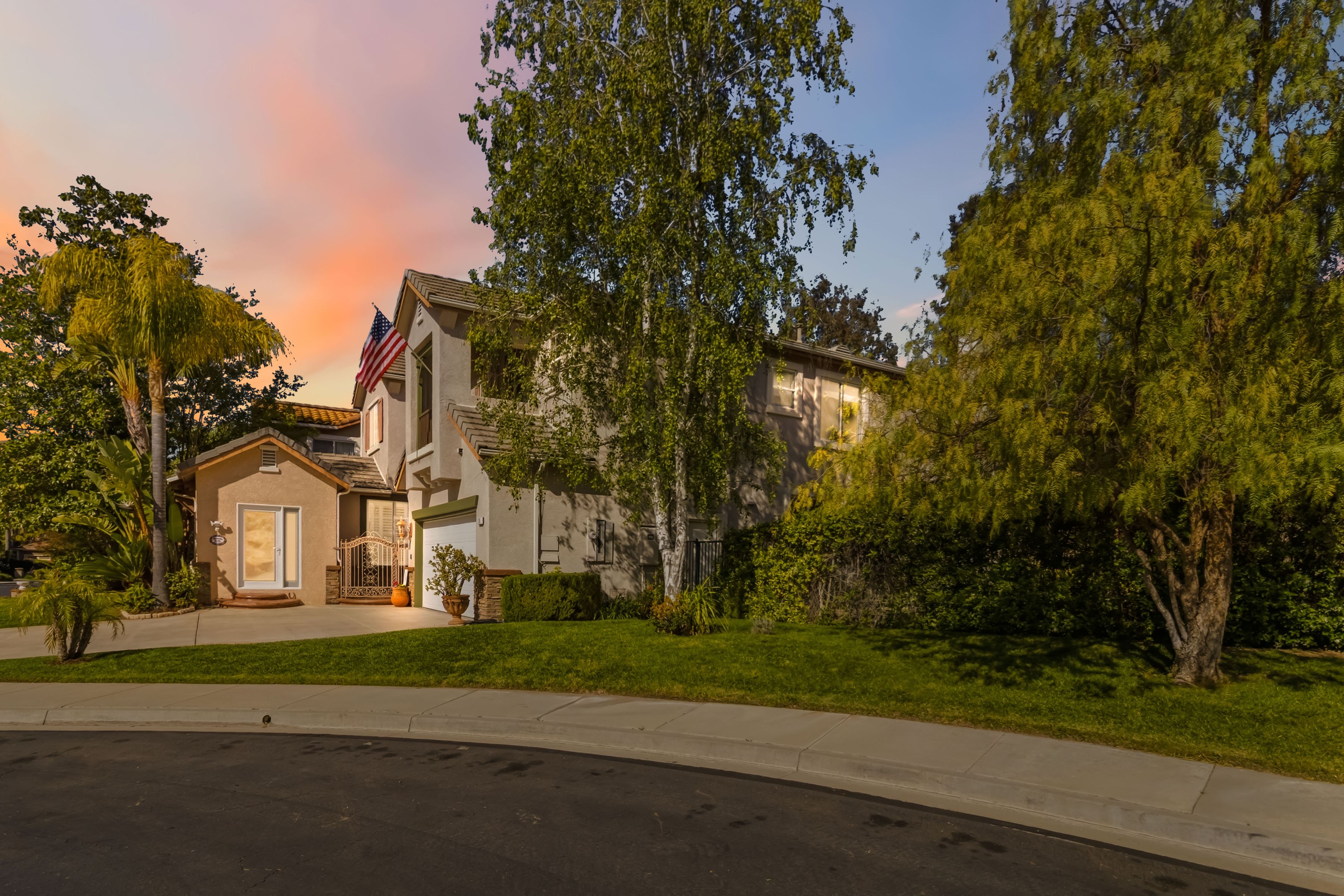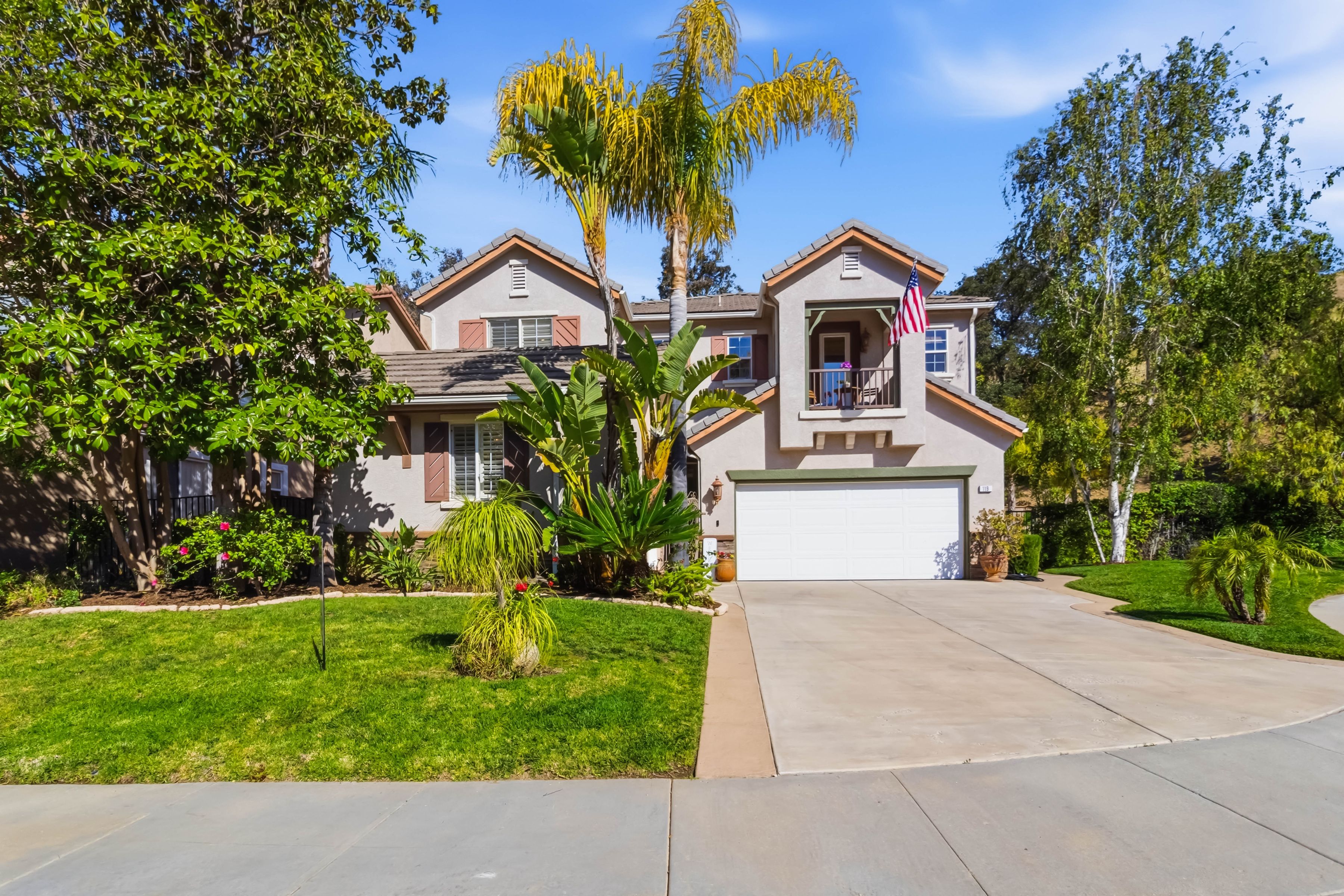 Welcome to an exceptional residence in the prestigious guard-gated Long Canyon Estates of Wood Ranch in Simi Valley--where privacy, space, and versatility define the lifestyle. With 4 community pools, paths, and tree lined streets where life slows down, this neighborhood is a refuge from hectic urban life. Positioned at the end of a private cul-de-sac street with an expansive 27,000+ sq ft lot, this property offers a rare and highly desirable setting--with no close neighbor on one side, creating added privacy, openness, and a true sense of retreat. This spacious two-story home features 5 bedrooms and 5 bathrooms with a two story, light-filled entry and sweeping staircase with custom tilework. The large kitchen and great room serve as the heart of the home, offering an open, functional layout ideal for both everyday living and entertaining. There are two interior fireplaces that add warmth and charm, including one in the primary suite for a cozy, elevated retreat. The third fireplace is in the backyard and is wood-burning. A standout feature is the separate-entry apartment--providing exceptional income-producing potential or the perfect setup for multi-generational living, long-term guests, or a private office. This flexible space significantly enhances both the usability and long-term value of the property. Recent upgrades include fresh interior paint, two new AC units, new appliances, and new carpet in 3 of the upper-level bedrooms, delivering modern comfort to this move-in-ready home. The outdoor spaces are designed for both beauty and ease. Beyond the kitchen-great room is a low-maintenance rear yard with extensive hardscaping and views to the hillside maintained by the HOA. The setting offers privacy and tranquility with a lovely fountain as well as a raised seating area that includes the third wood-burning fireplace. Step through the Spanish arch to an adjacent ''secret garden,'' complete with another tranquil, bubbling fountain, grassy expanse and separate gate to the front of the house. This property offers the ideal setting for relaxing evenings and entertaining under the stars. Residents enjoy close proximity to one of the community pools located just at the end of the street, along with access to three additional pools, spas, and clubhouses within this secure, guard-gated community. The neighborhood is known for its tree-lined streets, scenic walking trails, and peaceful natural surroundings, with protected open space and recreational areas nearby. Located in one of Simi Valley's most coveted areas and nestled near protected open space. this area is recognized as one of the safest pockets in Southern California. The development is near the Ronald Reagan Presidential Library and surrounded by breathtaking natural beauty. There are endless opportunities for outdoor activities such as mountain biking and hiking with numerous, protected trails off Long Canyon Road. Combining a premium cul-de-sac location, oversized lot, income-generating potential, and thoughtful updates, this property presents a rare opportunity for buyers seeking comfort, flexibility, and long-term value.