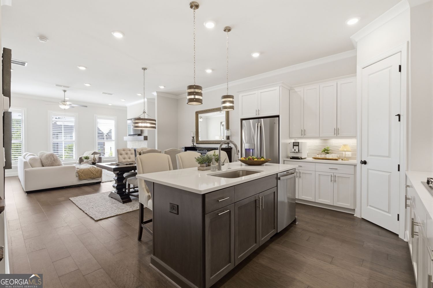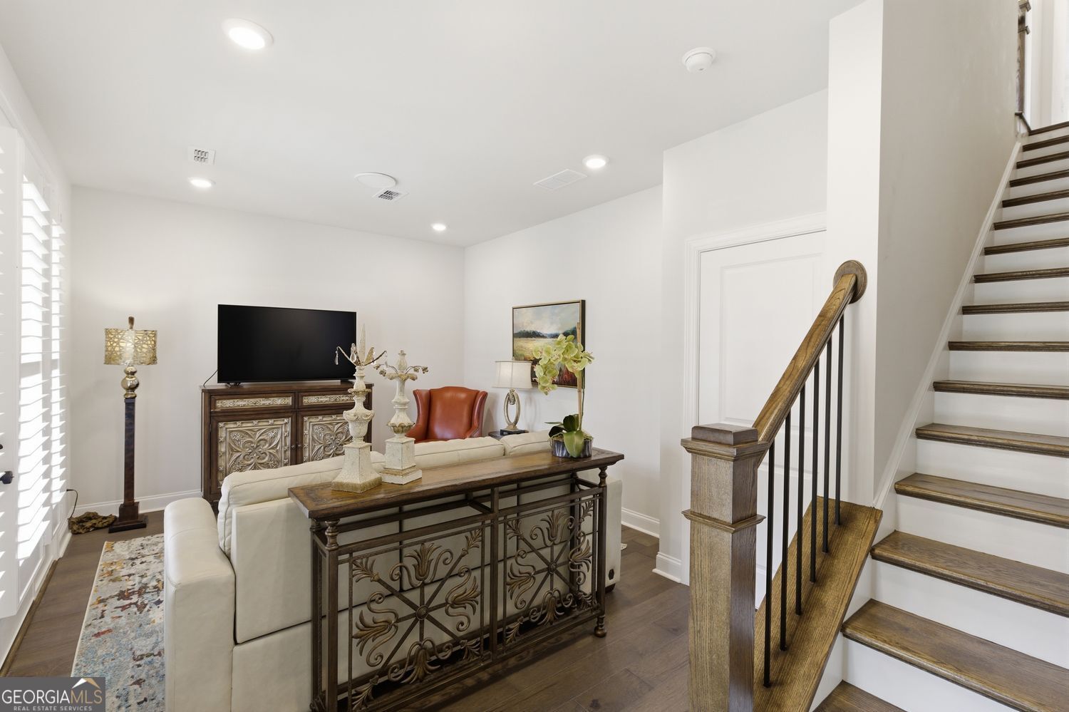 Elevated Living in Gated Waterside Rare 3-Story Townhome with Unmatched Views Welcome to one of the most sought-after opportunities in the gated Waterside community by The Providence Group-a rare three-story townhome perfectly positioned on a premium lot with unobstructed views of the community green. The approach is as inviting as the home itself, with a gated entrance leading to a beautifully designed garden-front terrace complete with a cozy fireplace-an ideal setting for entertaining or unwinding in a private, outdoor retreat year-round. Inside, the home unfolds with a seamless, thoughtfully designed flow. Natural light pours through custom plantation shutters, creating a bright yet private atmosphere throughout. The main living level is both functional and refined, featuring custom built-in floating fireside cabinetry and a beautifully designed separation between the living and dining spaces-perfect for both everyday living and effortless entertaining. At the heart of the home, the light-filled kitchen offers both style and substance, featuring a spacious island designed for gathering, a gas cooktop, and a custom-designed walk-in pantry that elevates both organization and everyday convenience. And, just around the corner is a lovely, sun-filled room perfect for an office, place to gather for games, or a cozy morning coffee retreat. Upstairs, the primary suite is a true retreat, offering a Juliette balcony, generous proportions, and a spa-inspired bath featuring both a soaking tub and separate shower-an uncommon and highly desirable combination in this community. Dual custom walk-in closets and thoughtfully designed storage throughout reflect the level of customization found in every corner of the home. The two additional bedrooms boast a shared balcony for additional outdoor relaxation. The lower level adds exceptional versatility, featuring a spacious bonus room that opens directly to the front terrace-perfect for a secondary living area, media room, home office, or private fitness studio. Beyond the home, Waterside offers a lifestyle that feels both elevated and connected. Residents enjoy a gracious two-story clubhouse designed for both intimate gatherings and larger social entertaining, along with a fully equipped fitness center featuring a dedicated barre studio, private yoga space, and massage rooms. Outdoor amenities are equally impressive, with lighted pickleball, a resort-style pool overlooking tranquil views of the Chattahoochee River, access to trails, and beautifully designed spaces to unwind-including a firepit gathering area and outdoor dining pavilion with a built-in grill-perfect for evenings with friends and neighbors. All of this, just minutes from The Forum, top dining, and major commuter routes, with access to highly regarded public schools and premier private options including Wesleyan School, Greater Atlanta Christian School, and Cornerstone Christian Academy. This is not just a home-it's a lifestyle, thoughtfully designed and exceptionally located.