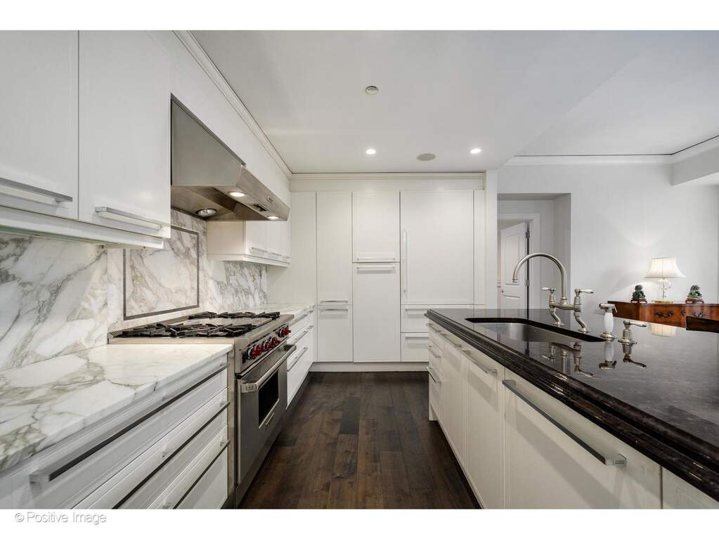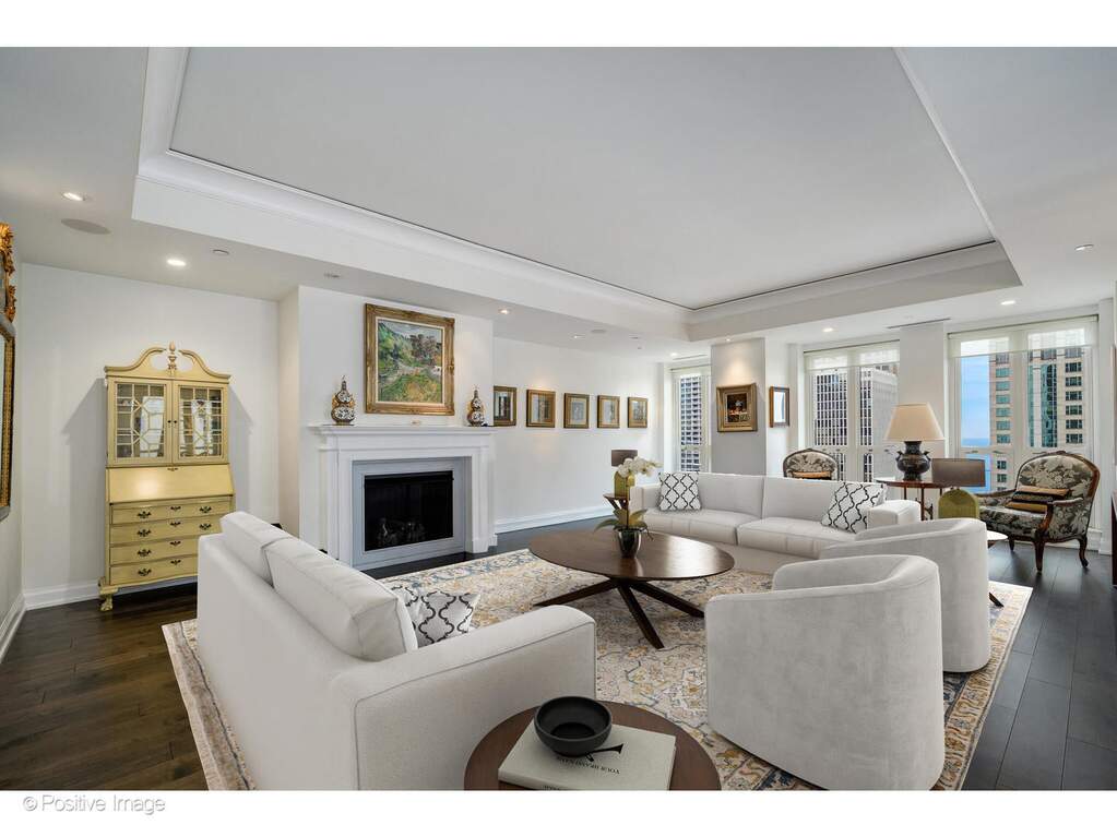 This exceptional 4,000+square-foot Waldorf condo residence offers east, south, west, plus city & lake views. Featuring two ensuite bedrooms plus a custom 20' X 12' office/den in the primary bedroom, this home offers a level of flexibility rarely found in the coveted "01" tier of the Waldorf Astoria Chicago. Beyond its remarkable exposures, the home is distinguished by its rare open kitchen and family room configuration, a layout unique to this unit. The paneled foyer leads into expansive formal living and dining spaces with 10-foot ceilings, oversized windows, and wide-plank hardwood flooring. The living room is anchored by a fireplace and east-facing vistas, while the dining area features corner exposures and access to the first balcony. The eat-in kitchen is exceptionally well-appointed with an extra-large island and Sub-Zero, Wolf, and Miele appliances. The kitchen opens into an intimate seating area and then continues into the spacious family room creating an open, connected layout. A commercial-grade state-of-the-art, temperature-controlled 500-bottle wine cellar offers an impressive amenity for wine enthusiasts and entertainers alike. The corner primary suite enjoys west-facing views from the second balcony, along with two large walk-in closets. The primary bath includes a custom double vanity, radiant heated floors, an oversized shower, a freestanding tub, and a private water closet. The office/library features floor-to-ceiling paneling, extensive built-ins, and a large window. Residents benefit from five-star amenities including in-room dining, spa, lap pool, fitness center, Pilates studio, concierge services, and valet. Located steps from Chicago's premier dining and shopping, the Waldorf Astoria offers exceptional privacy, service, and timeless sophistication.