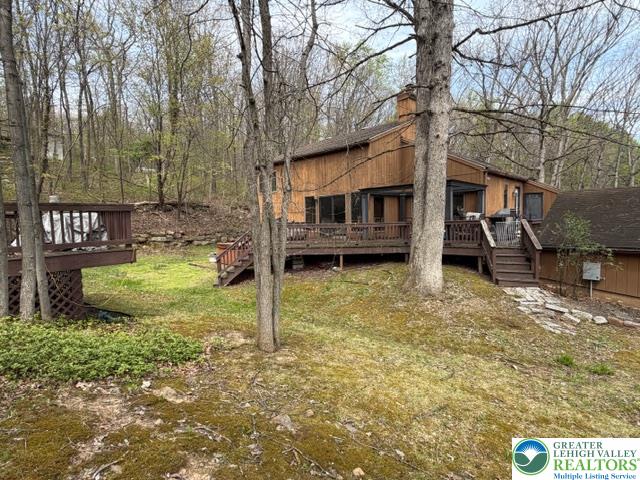 Don't wait to see this 3 or 4 Bedroom Contemporary in a wooded setting. The 4th bedroom is presently being used as a living room for guest quarters that also has a bedroom, bathroom, and a kitchenette. That living room can easily be used as the 4th bedroom with a bathroom between bedroom 3 & 4 and a kitchenette for evening snacks. The living room has a fireplace and a sliding glass door that leads to a large wrap around deck. Sit on the deck to enjoy the wooded setting that looks at the hot tub and pool. The pool, filter, heater, and hot tub have not been used for up to 10 years and are in " as is " condition. The eating area has room for a table PLUS there is a breakfast bar to have a quick meal. The kitchen includes a dishwaher, range, and Jennaire. The second level has 2 more bedrooms. Between the bedrooms there is a laundry room/ bathroom combination. The basement could be finished for addtional living space if you desire more room. This home has everything you need and is waiting for you to do any updates you desire to make it your own. Don't delay, see it today!