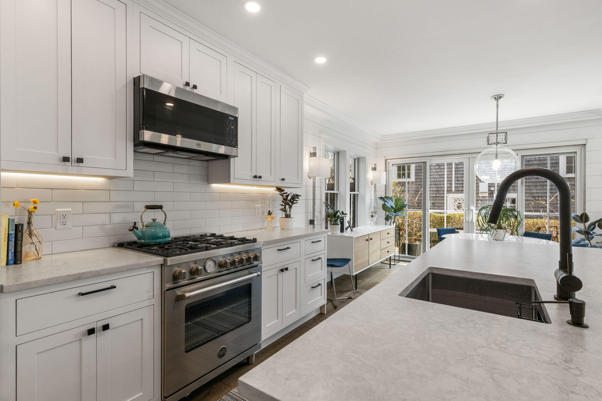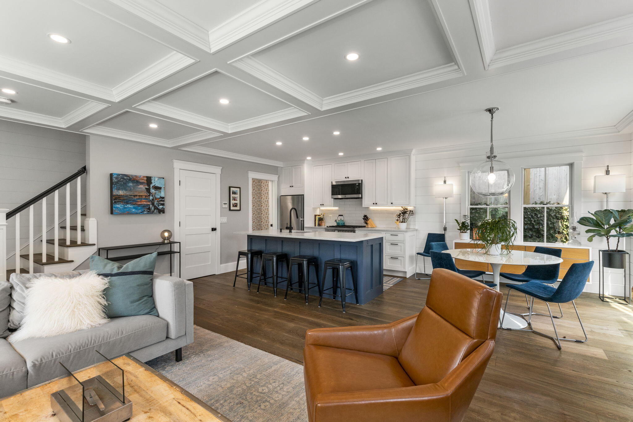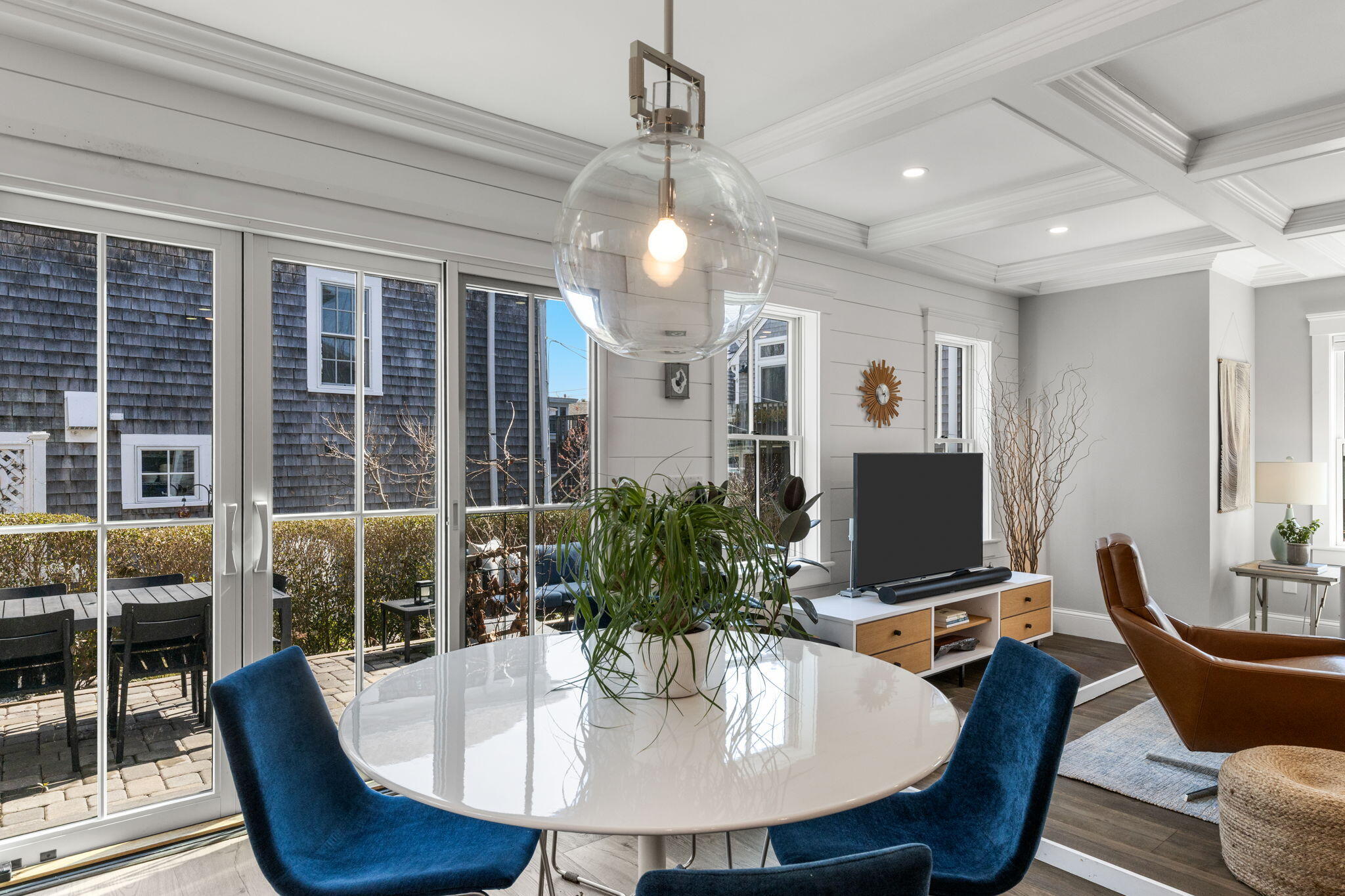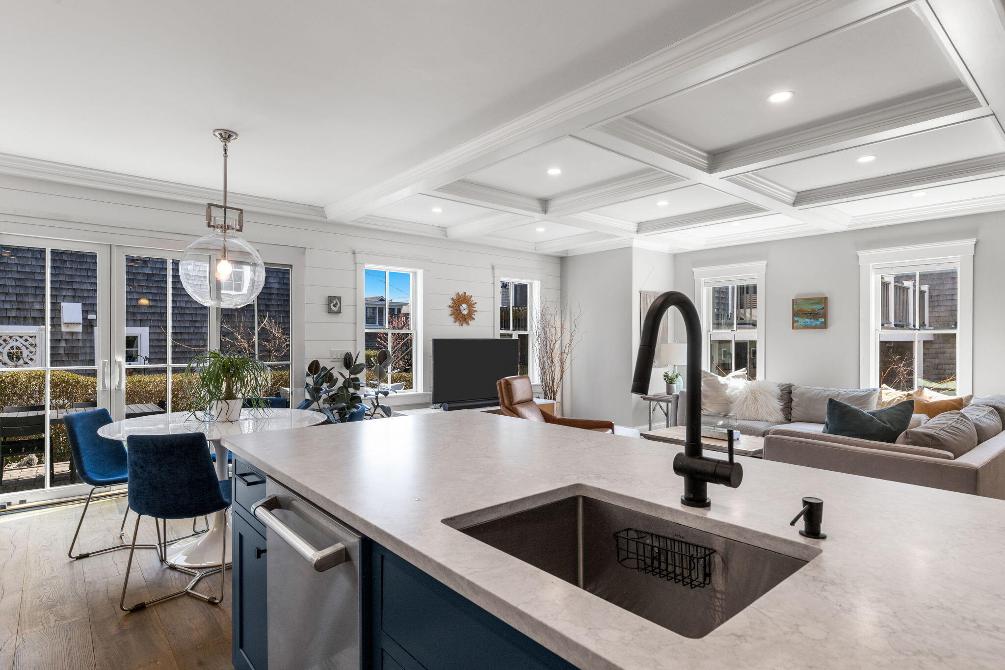 Freestanding and thoughtfully designed, this recently constructed (2021) residence offers a rare blend of privacy, modern comfort, and water views tucked back from Commercial Street. The first floor features an open-concept great room with kitchen, dining, and living areas, highlighted by a coffered ceiling and a center island with seating. A sliding glass door leads directly to an exclusive-use patio with an outdoor shower -- an easy extension of the living space, well-suited for hosting, from morning coffee to evening get-togethers. Upstairs, two en-suite bedrooms provide comfort and separation for guests or owners alike. Two dedicated parking spaces add meaningful convenience and value -- an uncommon offering in this location. Well-executed and turnkey, this property delivers easy living with the added benefit of newer construction and a freestanding layout.