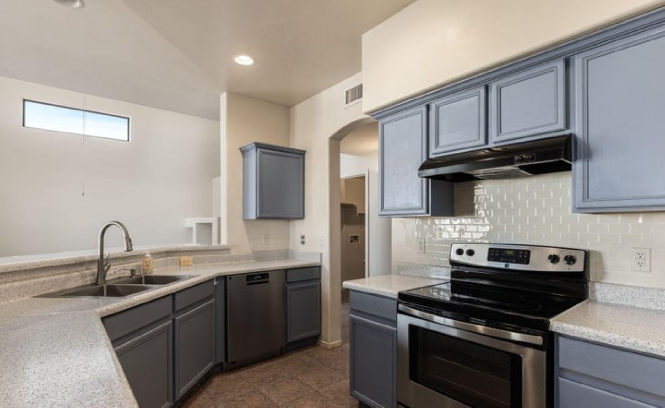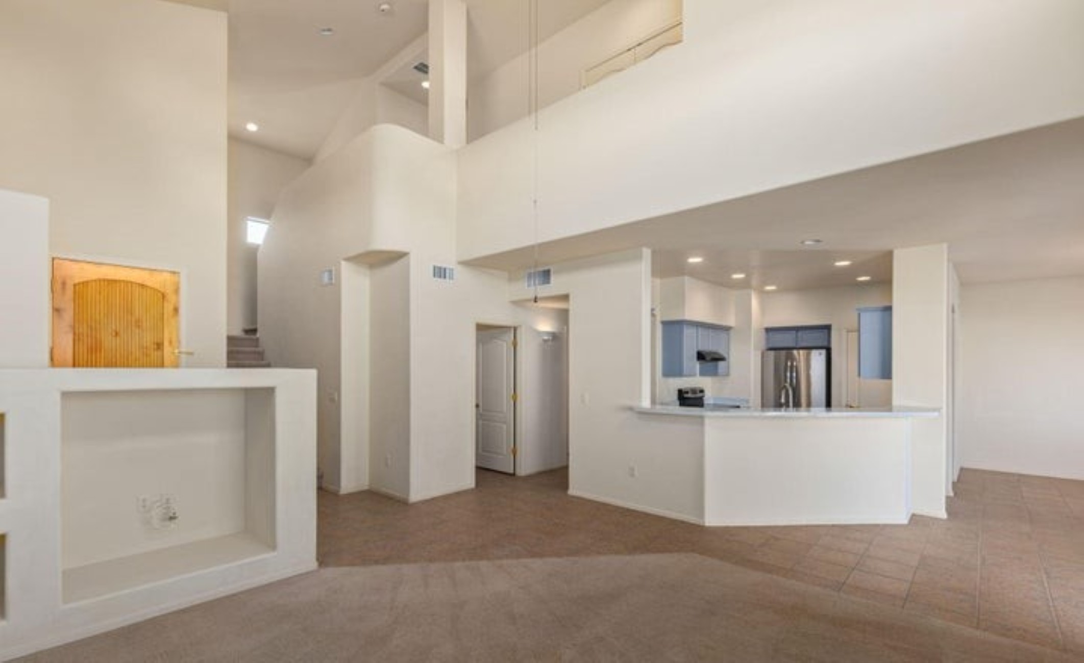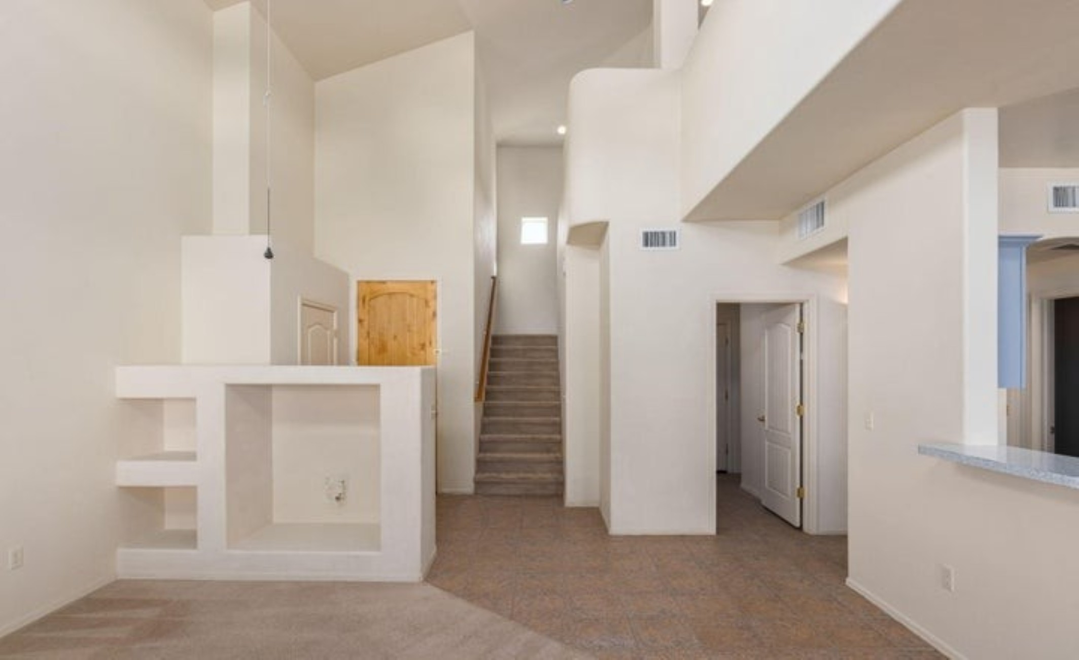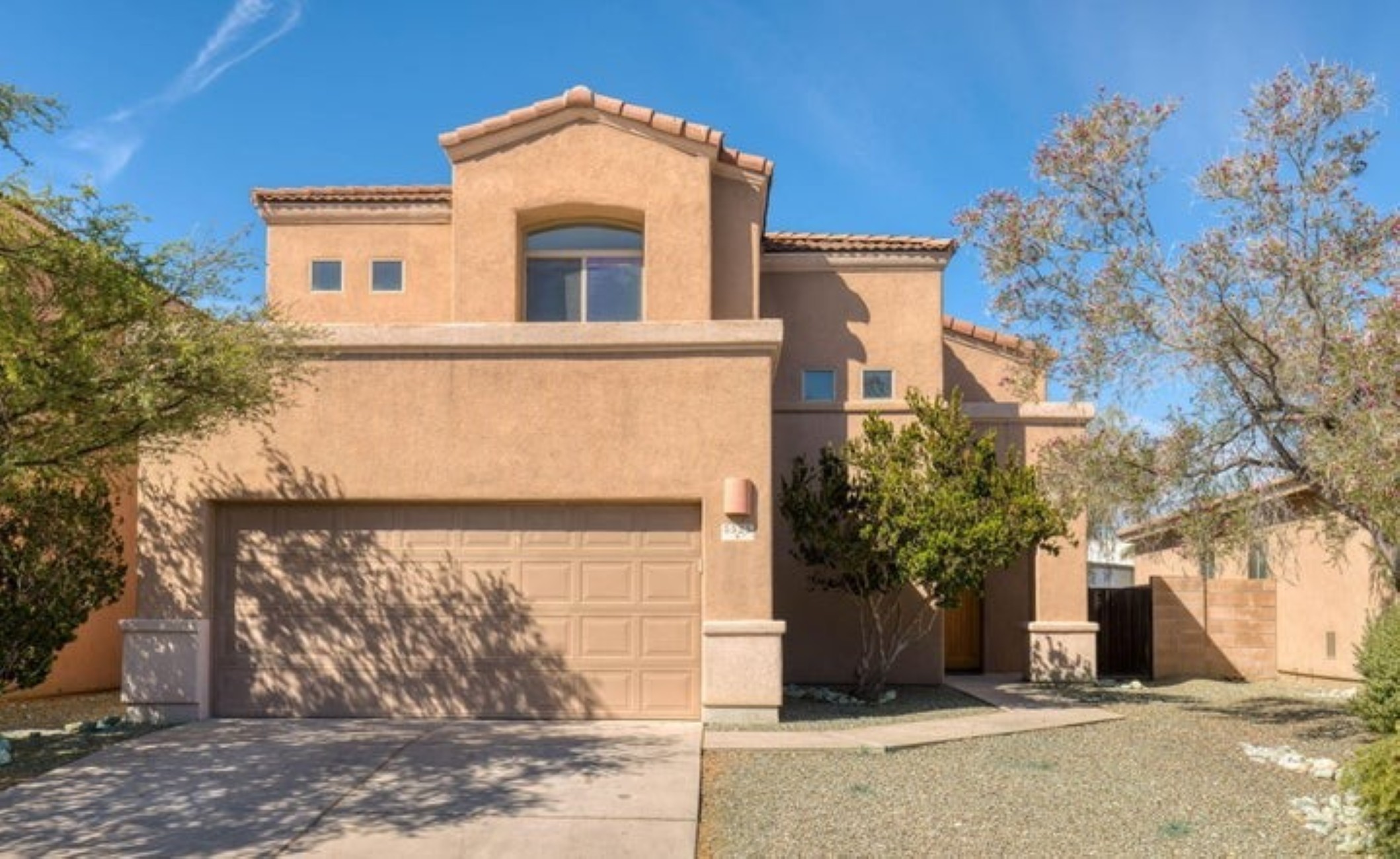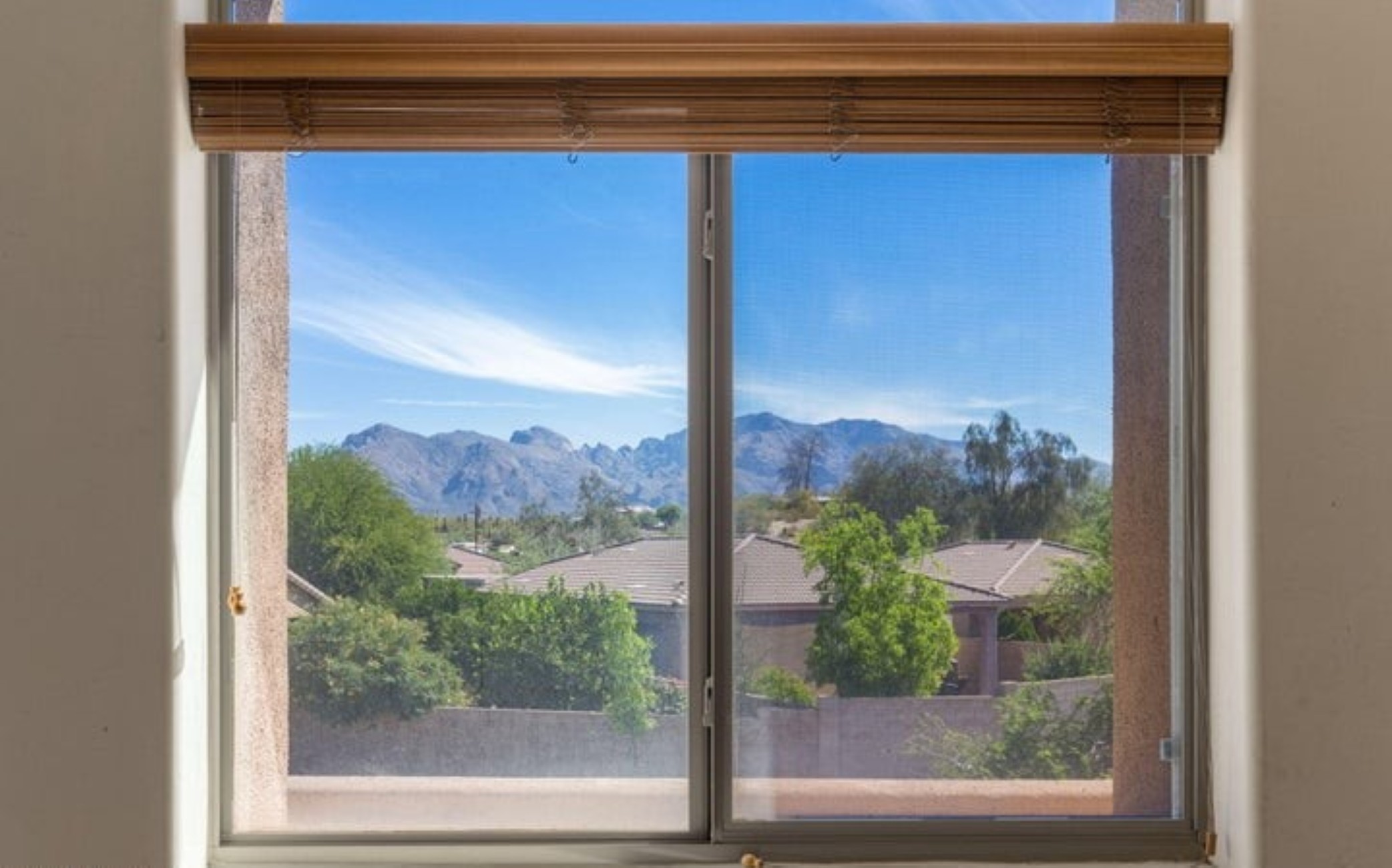 Discover this 2,080 sq. ft. AF Sterling home featuring 4 bedrooms and 3 bathrooms in a prime Tucson location. The interior welcomes you with soaring ceilings in the living room, creating an open and airy atmosphere that flows naturally into the kitchen and dining areas. The versatile floor plan includes one full bedroom and bathroom on the main level, with three additional bedrooms upstairs--including a functional Jack-and-Jill bathroom. The upper-level bedrooms offer striking views of the surrounding mountains. Step outside to a private backyard oasis featuring a patio surrounded by roses, and fruit trees. Residents also enjoy access to a refreshing community pool.