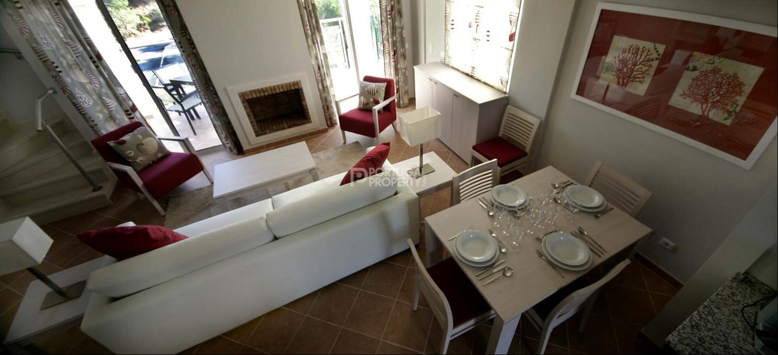 V3 Village Houses of this Golfe & Country Club, share a double pool, with snack bar and terraces. The village way of life is great for families who want to meet other people and make friends. Both the two and three bedroom Village Houses, share a pool that’s 25 meters long and a tropical pool. The properties are built to very high speci?cations and offer a choice of two or three bedroom houses. The Village Houses are smaller than the Linked Villas, but have the advantage of being detached.A lot of thought has gone into the design of the Village Houses, making them perfect for easy living. They have many little touches, that you wouldn't necessarily expect.Bearing in mind that holiday homes often need to accommodate more than one group of people, the master bedroom and a small terrace is situated upstairs, for extra privacy.The Village Houses are easy to lock up and leave, with just one front entrance to the property and secure patio doors at the back.The Village Houses all have air conditioning units to cool in summer. These can switch to warm air in winter and there’s an open ?re, for cosy evenings in.The ?ttings and furnishings are of a high standard, with granite work surfaces and quality appliances in the kitchen.Whether you're looking to buy a classy villa holiday with your own pool and daily maid service (a Linked Villa), or are thinking of buying a luxury holiday home of your own with comunal pool (a Village House). In a dream location.You can pop over the border to Spain for tapas and culture, or enjoy the fresh fish and laid back lifestyle of Portugal. This place offers the best of both worlds - and you are just half an hour from Faro and an hour from Seville international airports.With three great nine hole golf courses, nearby beaches that stretch for miles and a friendly Clubhouse bar and restaurant, serving top quality food, this resort, near the medieval town of Castro Marim with its Moorish castle, has all the right ingredients.There's plenty to do in the local area, like walking and bird watching in the nearby Sapal nature reserve, or you can play tennis, go horseriding, biking, sailing or windsurfing. And there are some great places to eat nearby.One of the attractions of the Club resort is the low density approach, unlike that at some other housing developments. All properties enjoy amazing open views towards the Guadiana River, the Atlantic Ocean, Sapal nature reserve and golf courses.These properties, set in 230 hectares of land, offer great value for money. Individual Village Houses at a devine Golfe & Country Club, sell for the same price as apartments in the busier and more expensive central Algarve. The V3 Village Houses start at 450,000 € and there are many to choose from.