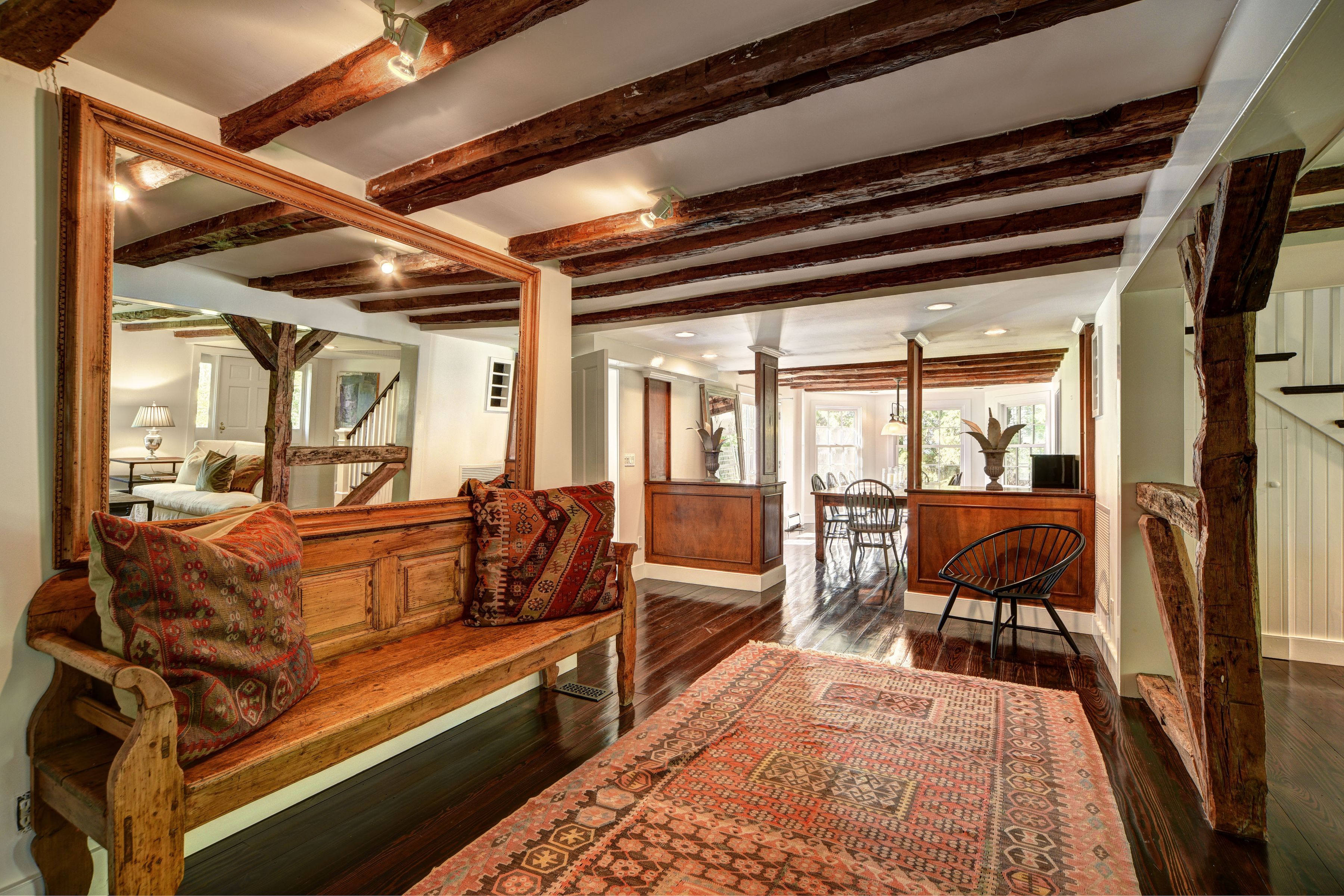 This unique, one of a kind, restored classic is located on the south side of Main Street in Amagansett. 4,000 sq. ft. of living space with original beams in the living room and dining room, as well as in the primary bedroom. This warm and welcoming home is furnished with wonderful English antiques. Offering 6 bedrooms, 4.5 baths, a large country kitchen with wood burning stove, and den with additional fireplace. Other features include: central air, attached garage, 20' x 45' gunite pool set back on the 3/4 acre property. Close to ocean, shops and transportation. [[Rental Registration # 24-1438]] EH RR #: 24-1438