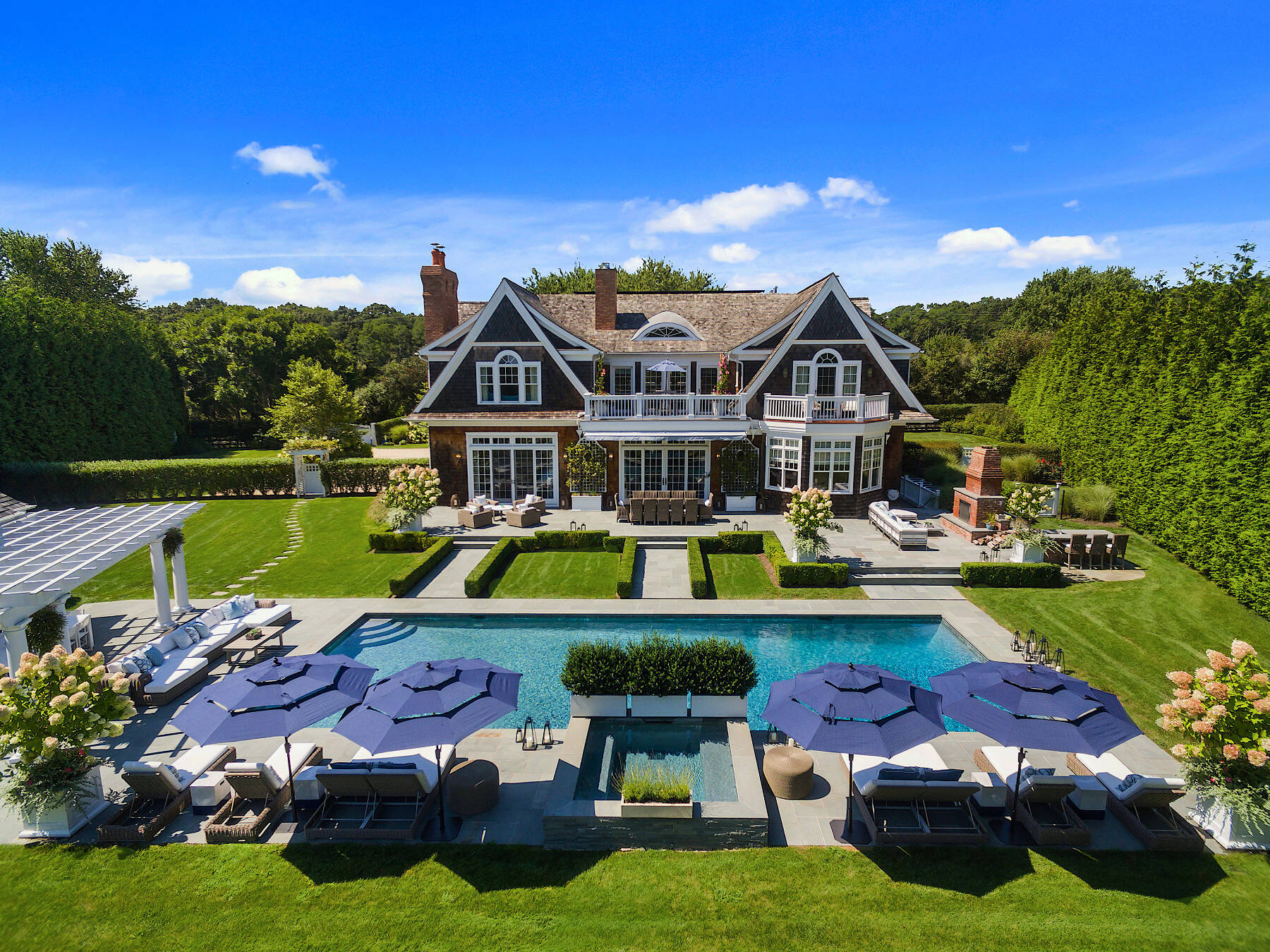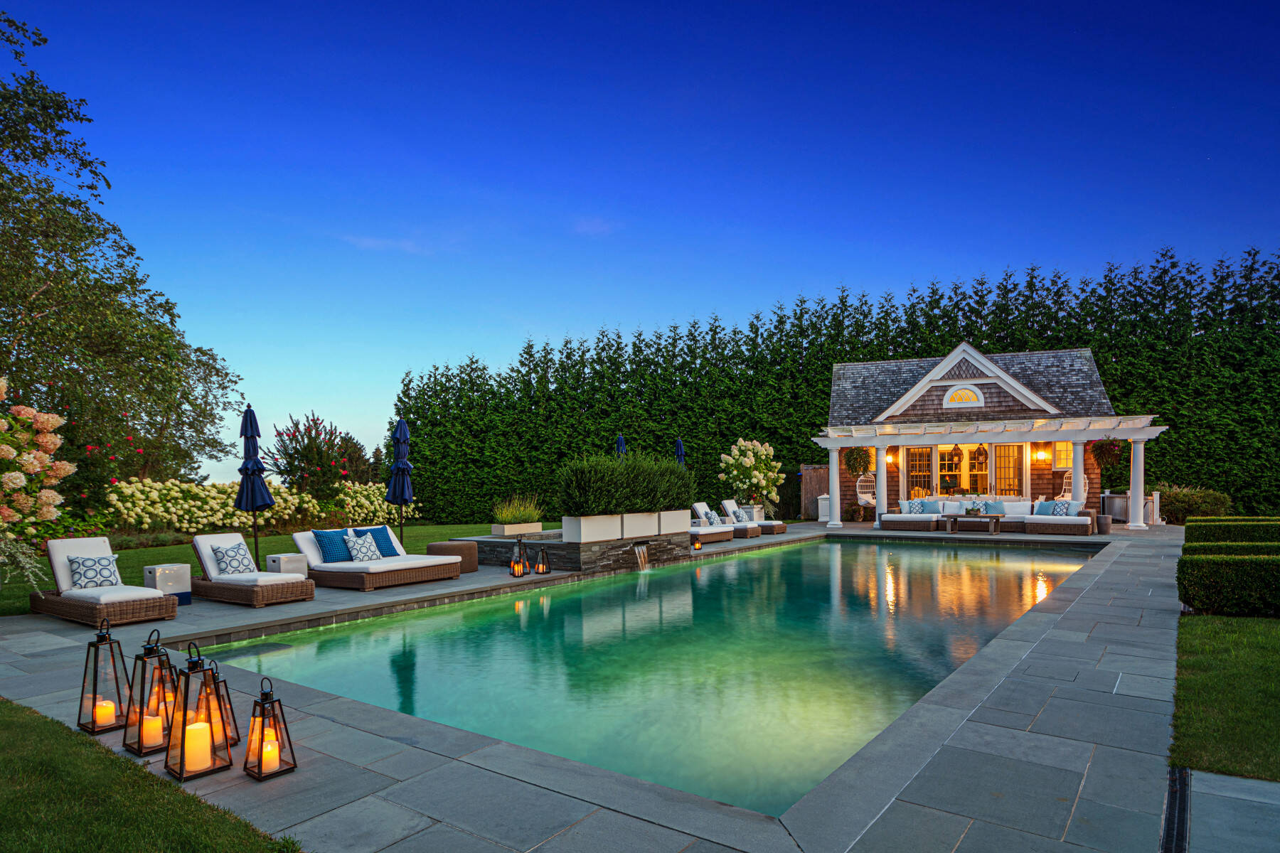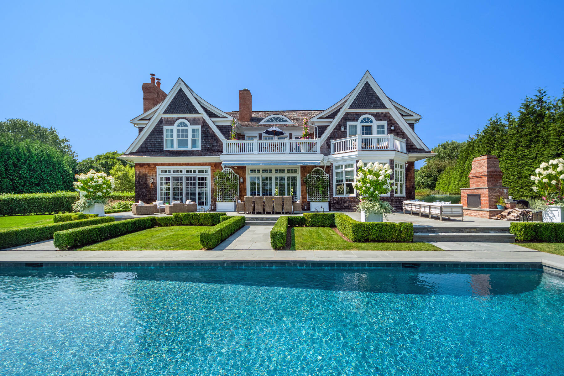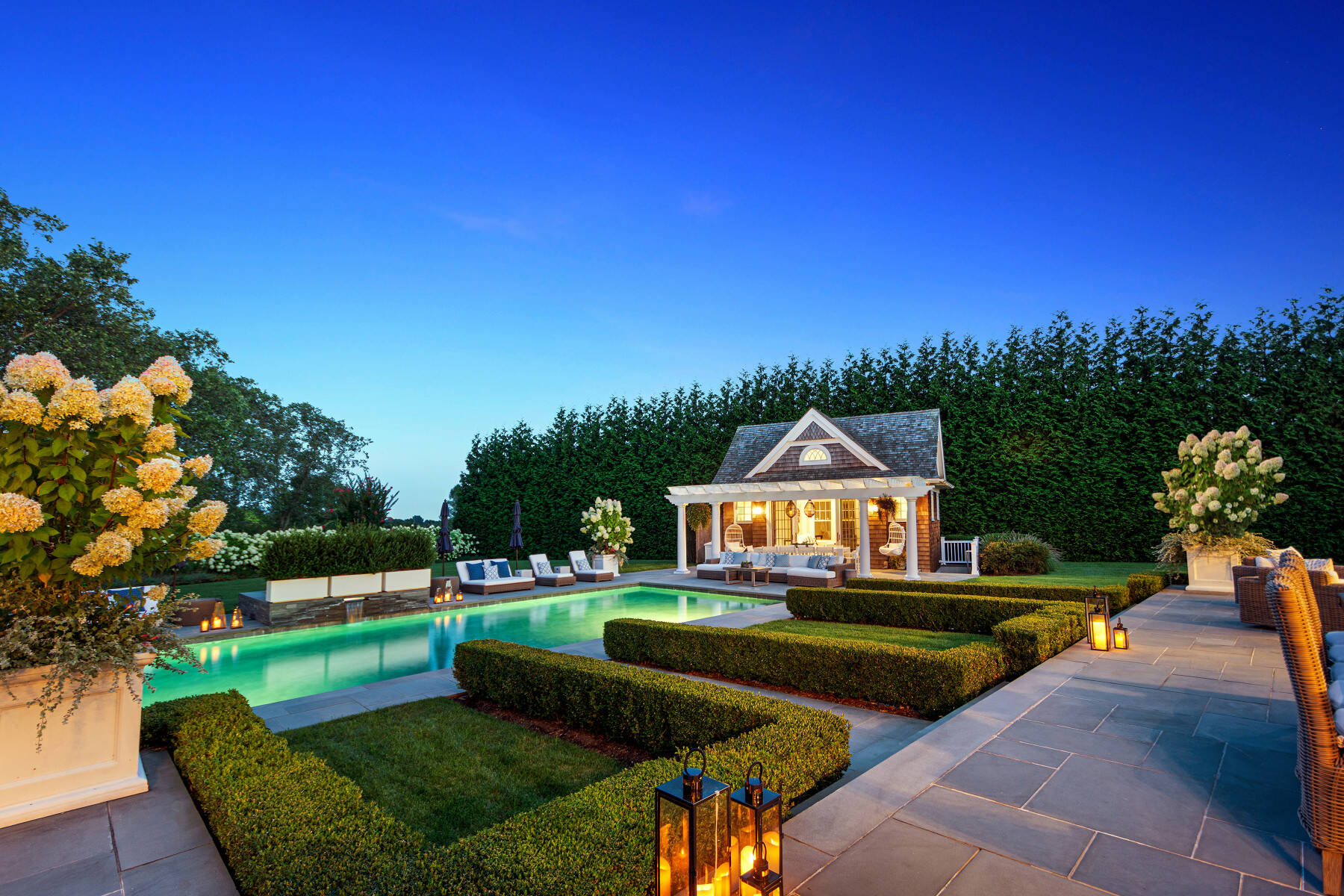 This very high-end, newer construction home is available for rent from July 1-Aug 15th, for 2-3 weeks or 1 month. Gorgeous architecture, landscaping and stylish designer interiors are hallmarks of this classic estate. The private gated home sits on a full-lawn property on a quiet street, buffered by fields in front and a pretty tree farm in back. The inside features high-end, custom-designed furnishings and art curated by Mabley Handler, one of the Hamptons most sought-after designers. The nearly 9000SF home offers the ultimate backyard--with an oversized pool with overflowing Hot Tub, and thousands of feet of patios and terraces. You have your choice of entertainment areas, including covered porches, pergolas, open terraces, a fireplace area and a pool house area. Nestled in the heart of Water Mill's horse country on a quiet cul-de-sac, this sleek shingle-style transitional home offers the finest in Hampton's living. Beyond the private gated entrance, the 6 Bedroom home (all with ensuite baths) spans 6300 feet above ground, with a 2500 SF, gorgeously finished lower level. The home features a dramatic 2-story paneled foyer that opens to three different living rooms--a great room, living room and TV room. The kitchen is enormous, designed by Bakes & Kropp kitchen, with a large breakfast area overlooking the yard and a butler's pantry that leads to the formal dining room. The second floor features an enormous primary suite with adjoining sitting room/office and a terrace with views. There are 4 additional ensuite designer bedrooms upstairs. The lower level is truly gorgeous and an extension of teh upstairs. If offers an expansive windowed entertainment space, including a living room, new theater, and an additional bedroom with ensuite bath. There is a state-of-the-art gym, spa bath, sauna and steam room. Spend each day relaxing on the expansive, south-facing terrace with all day sun. The pool house--with kitchenette, living room, outdoor shower and laundry--offer every amenity at your fingertips. The house is controlled by a fully integrated Control 4 Smart system. [[Rental Registration # Pending]]