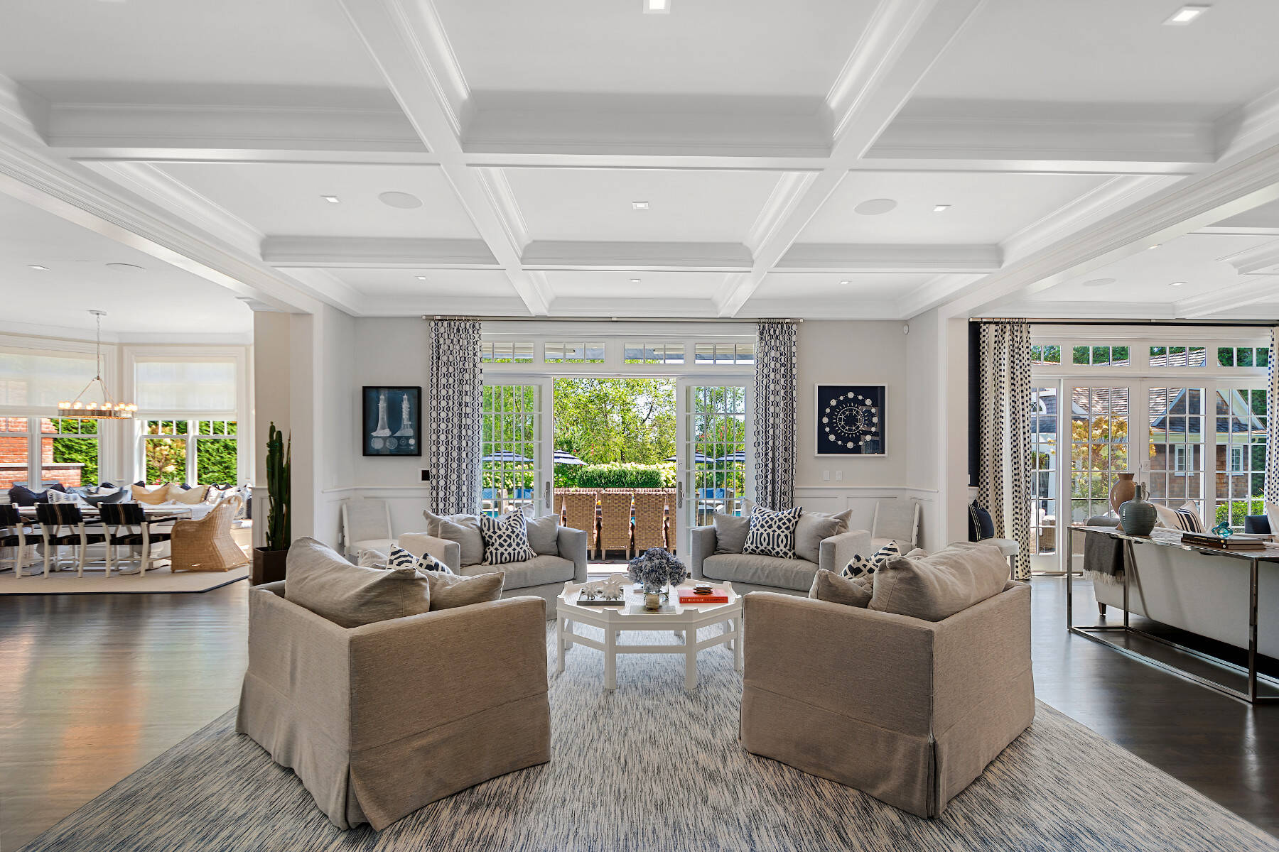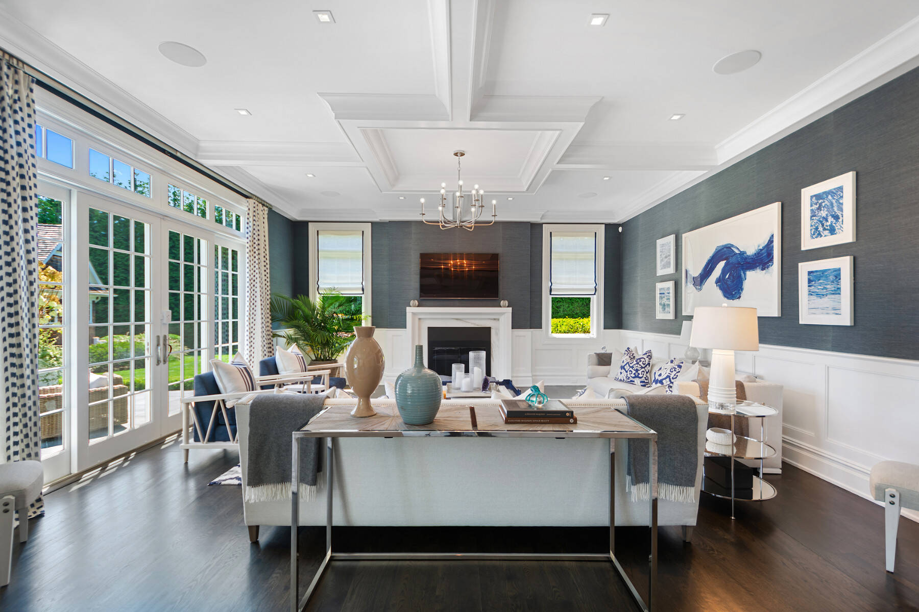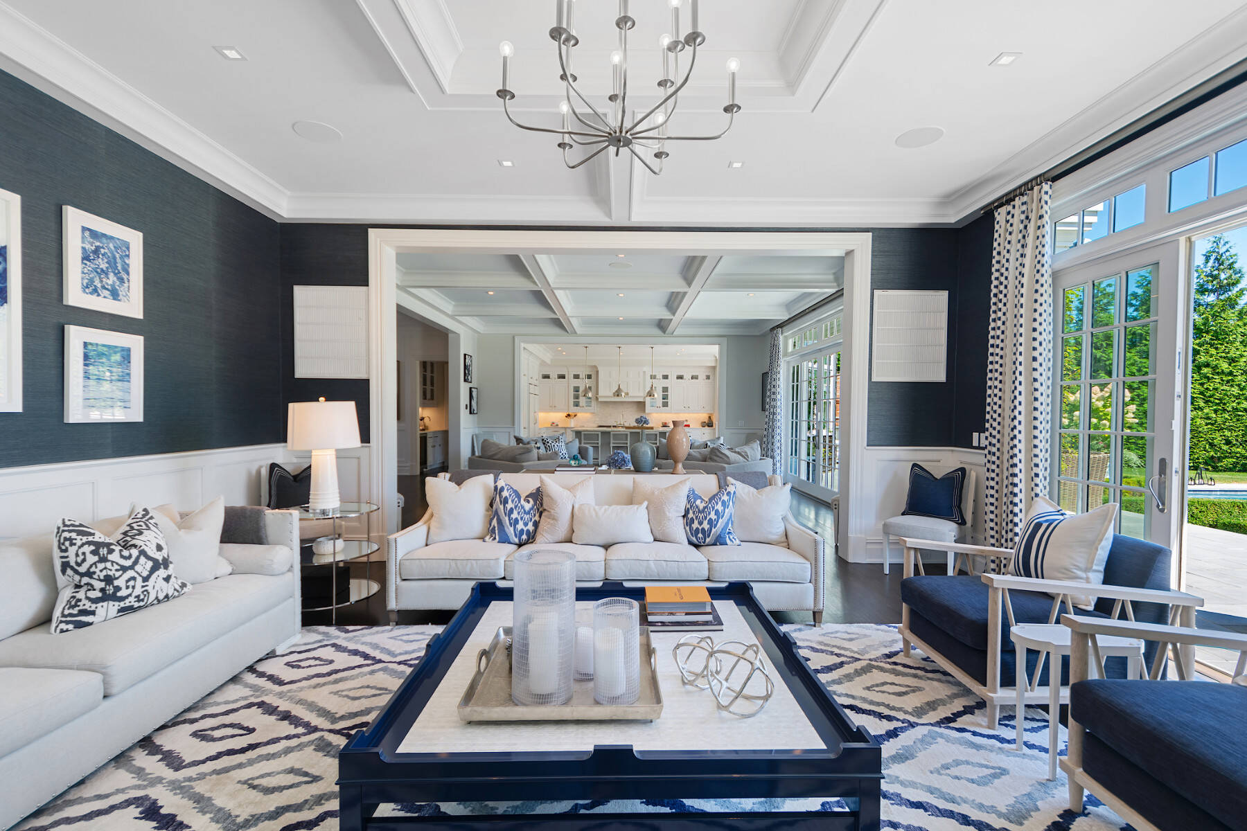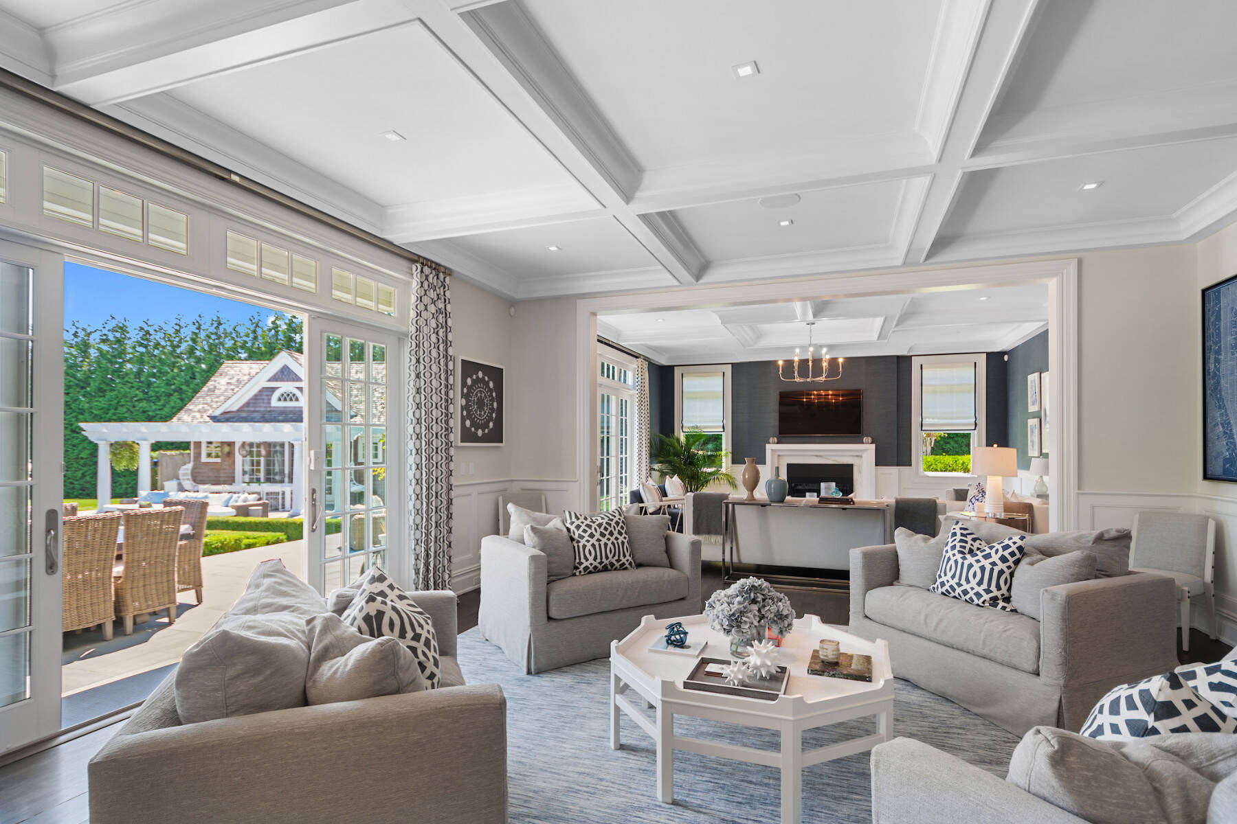 This very high-end, newer construction home is available for rent from July 1-Aug 15th, for 2-3 weeks or 1 month. Gorgeous architecture, landscaping and stylish designer interiors are hallmarks of this classic estate. The private gated home sits on a full-lawn property on a quiet street, buffered by fields in front and a pretty tree farm in back. The inside features high-end, custom-designed furnishings and art curated by Mabley Handler, one of the Hamptons most sought-after designers. The nearly 9000SF home offers the ultimate backyard--with an oversized pool with overflowing Hot Tub, and thousands of feet of patios and terraces. You have your choice of entertainment areas, including covered porches, pergolas, open terraces, a fireplace area and a pool house area. Nestled in the heart of Water Mill's horse country on a quiet cul-de-sac, this sleek shingle-style transitional home offers the finest in Hampton's living. Beyond the private gated entrance, the 6 Bedroom home (all with ensuite baths) spans 6300 feet above ground, with a 2500 SF, gorgeously finished lower level. The home features a dramatic 2-story paneled foyer that opens to three different living rooms--a great room, living room and TV room. The kitchen is enormous, designed by Bakes & Kropp kitchen, with a large breakfast area overlooking the yard and a butler's pantry that leads to the formal dining room. The second floor features an enormous primary suite with adjoining sitting room/office and a terrace with views. There are 4 additional ensuite designer bedrooms upstairs. The lower level is truly gorgeous and an extension of teh upstairs. If offers an expansive windowed entertainment space, including a living room, new theater, and an additional bedroom with ensuite bath. There is a state-of-the-art gym, spa bath, sauna and steam room. Spend each day relaxing on the expansive, south-facing terrace with all day sun. The pool house--with kitchenette, living room, outdoor shower and laundry--offer every amenity at your fingertips. The house is controlled by a fully integrated Control 4 Smart system. [[Rental Registration # Pending]]