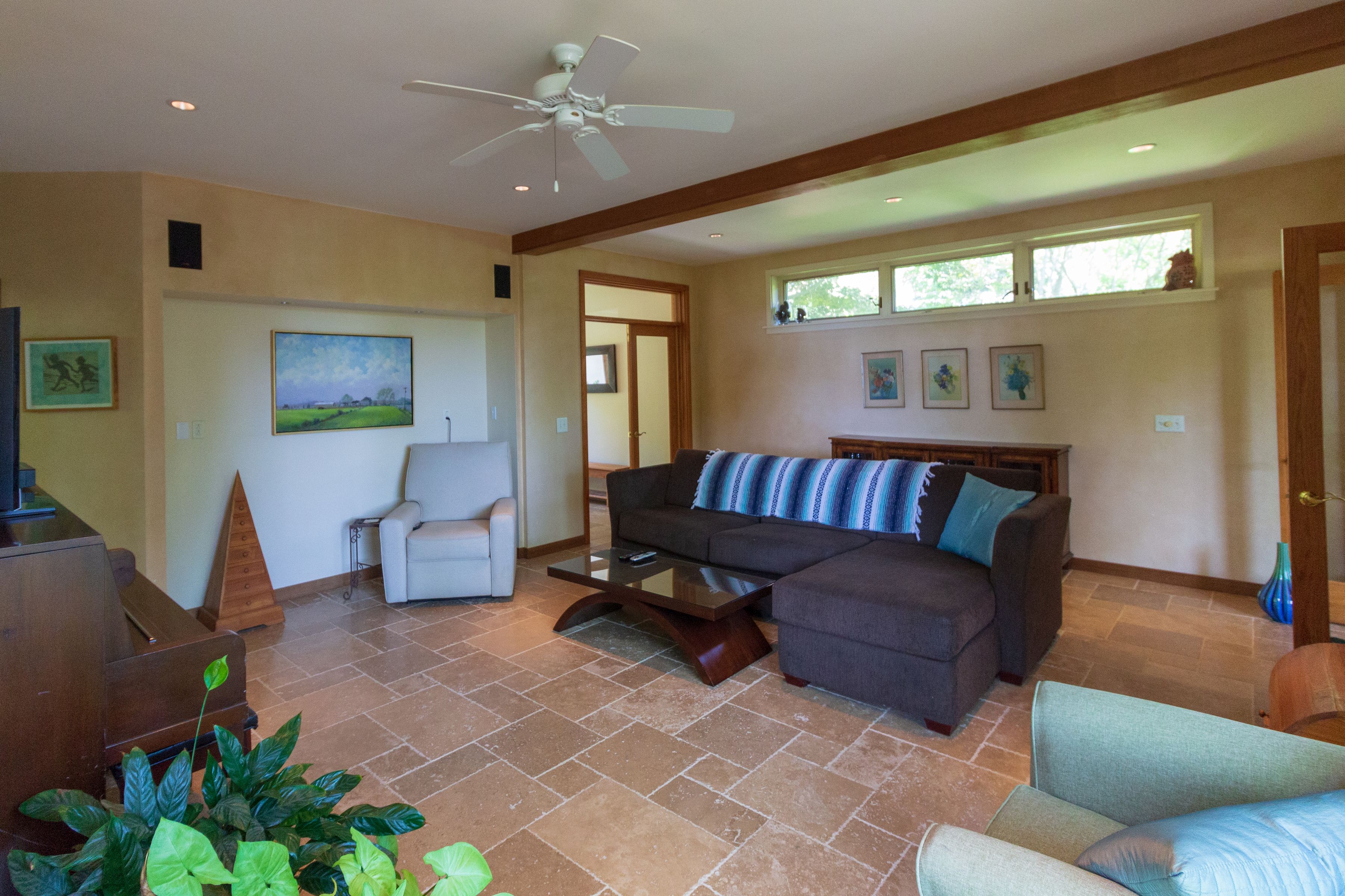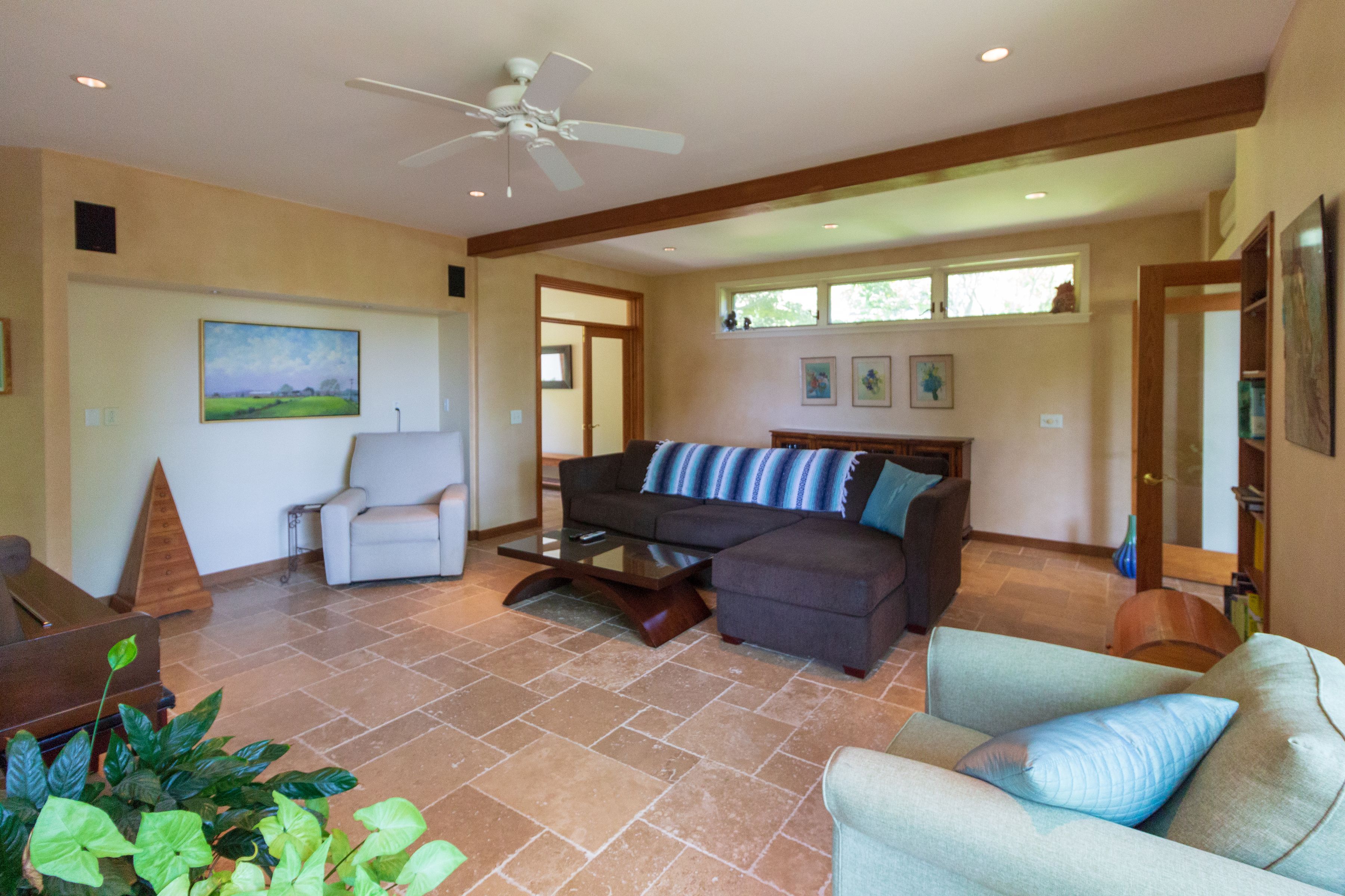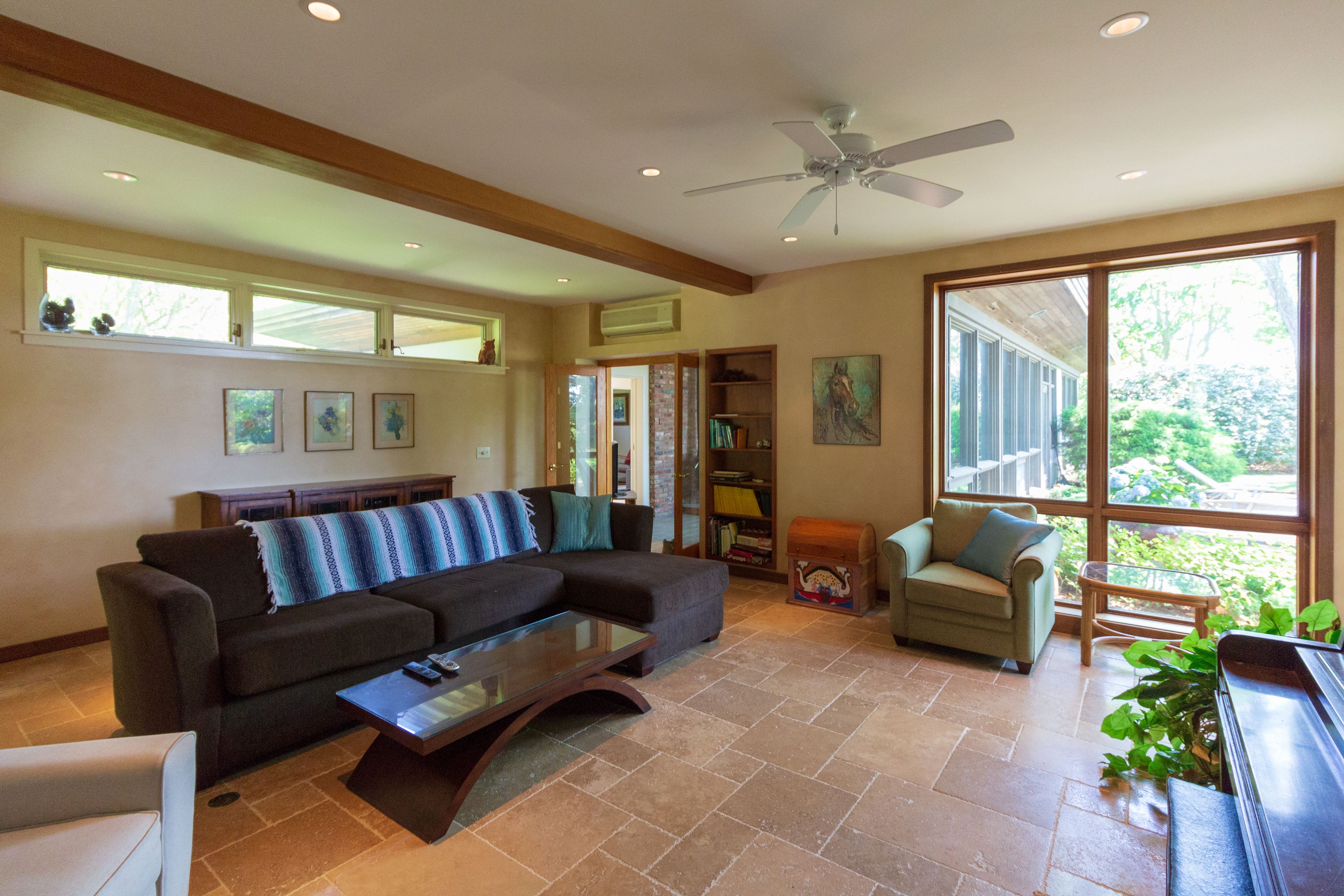The pastoral areas around the house make you relax, there are 3 wings- the master ensuite, the middle entertaining area with kitchen, dining room 2 small bedrooms with their own office area and a third 2 bedroom / bath wing. Very peaceful. 10 minutes to ocean and bay beaches. [[Rental Registration # RP241674]] EH RR #: RP241674