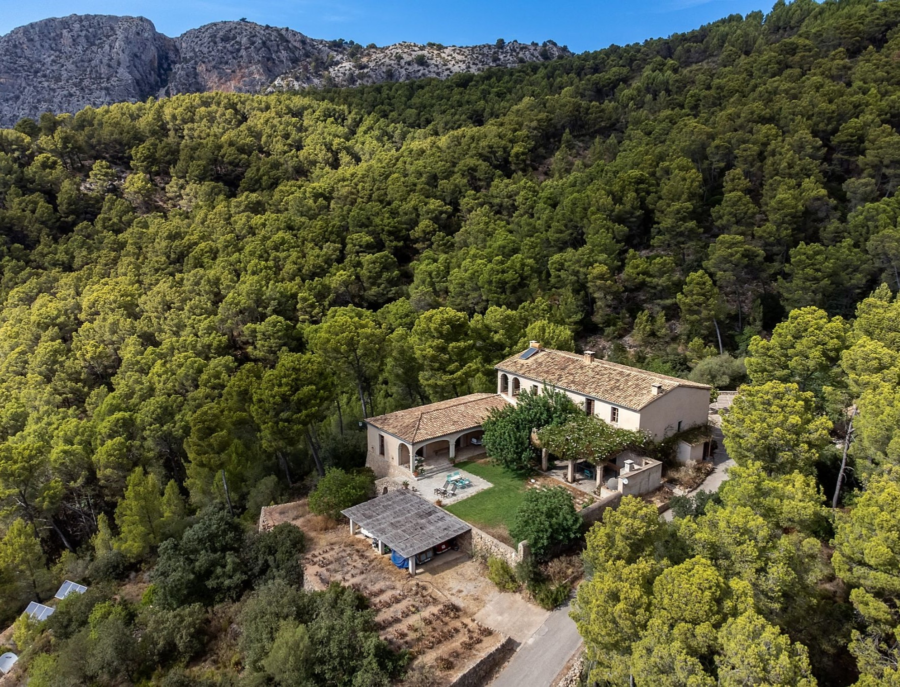 Typical Mallorcan house located in the municipality of Andratx, specifically in the Sa Coma area, in a tranquil setting that guarantees absolute privacy as it is situated at the end of a path with no nearby neighbors.The property features a built area of 501 m² on a vast plot of 69,548 m², allowing you to enjoy a privileged natural environment. The house is distributed in a spacious living-dining room with a fireplace, an independent kitchen, five bedrooms, and four bathrooms, offering comfort and functionality for families or as a vacation residence.Outside, its large terraces stand out, from which you can enjoy pleasant views of the mountains and the bay of Camp de Mar. The estate also has a pool surrounded by a garden, creating an ideal space for relaxation and enjoyment of the Mediterranean climate. Additional features include wooden beams that provide traditional character and a solar panel heating system, enhancing energy efficiency.The area of Sa Coma in Andratx is known for its natural surroundings and tranquil atmosphere, away from the tourist hustle and bustle. Just a few minutes away are Camp de Mar and the port of Andratx, where you can access services, restaurants, and beaches. This location combines privacy, landscape, and proximity to points of interest, making it a highly valued option in the southwest of Mallorca.