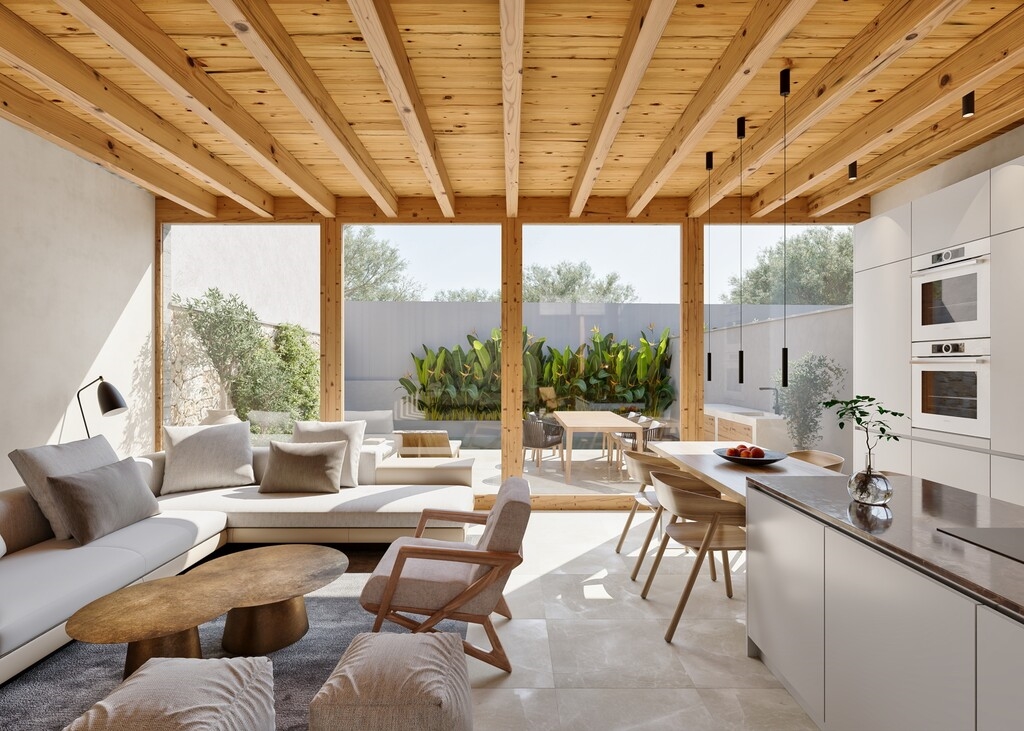 Fantastic luxury townhouses for sale in Son Espanyolet with 3 bedrooms, 2 bathrooms, a guest WC, private pool and 2 parking spaces, designed by renowned architects of AVW. Situated in a very sought after residential area, their location is ideal in front of a lovely park, and their proximity to the city centre, with all services and schools a short distance away. The houses will have lots of natural light and will be distributed over 3 floors. On the ground floor will be an entrance hallway, lounge-dining room with the designer kitchen incorporated and large sliding windows which give access to the terrace, patio garden and a small pool. Also on this floor is the master bedroom with walk in wardrobe and bathroom. On the first floor will be the other 2 bedrooms and 1 bathroom, plus a spacious terrace. In the basement will be the technical room, a multipurpose room apt for a gym or cinema room etc., plus a laundry room and a WC. The houses will be built using the best quality materials. Highly recommended.Locality and places of interestSince the middle of the last century, Palma de Majorca, has become a locality that has intelligently known how to conserve its rich cultural and architectural heritage, without forgetting to offer the best services possible to tourists and residents. The city is well-known for its varied offer of art galleries and museums as well as for its excellent shopping in one of the countless fashionable designer boutiques.