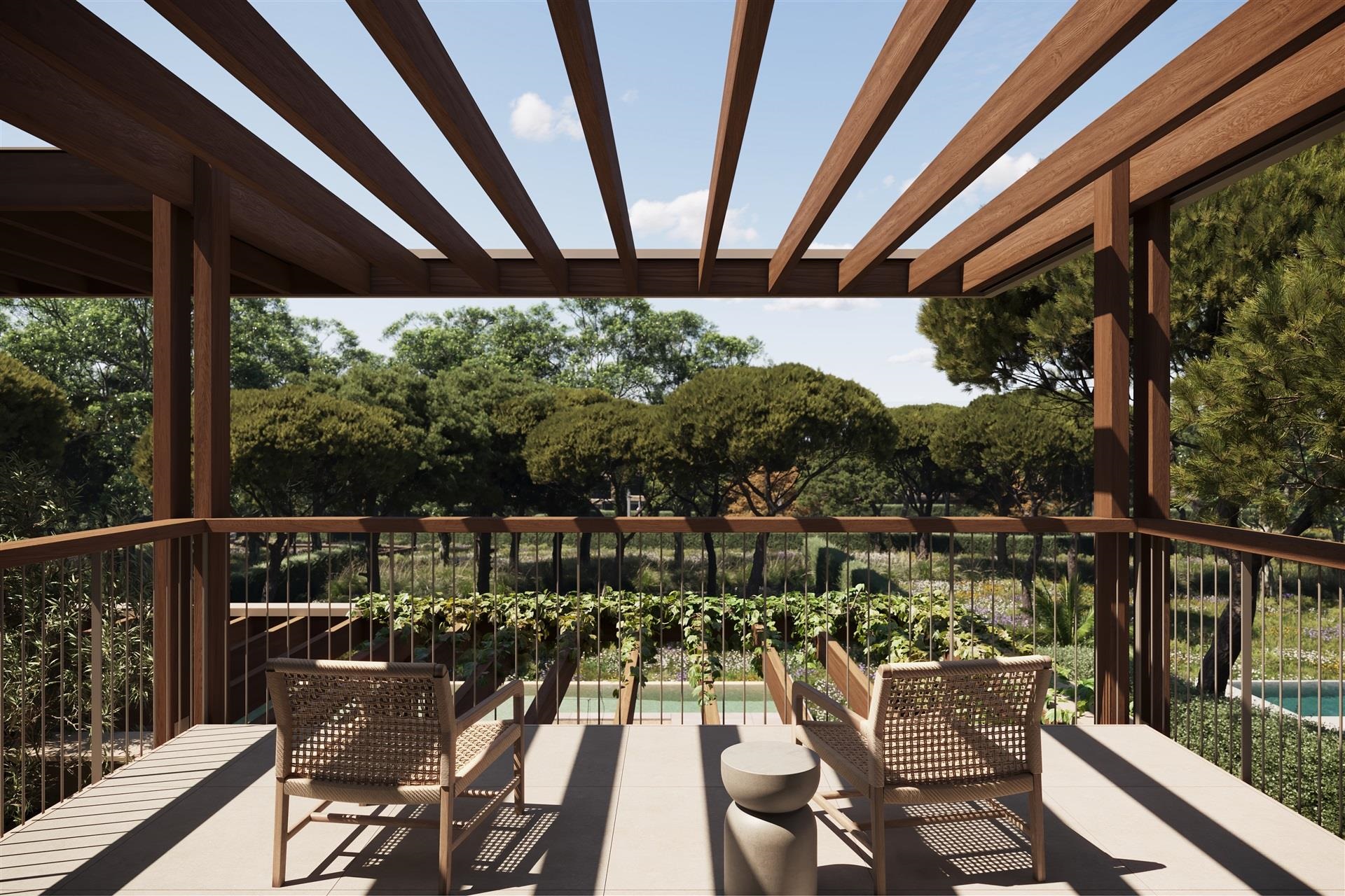 Arcaya is a project set to emerge in Vilamoura, with a focus on sustainability and a new concept of shaping an Algarve 3.0: a destination to live in, not just vacation at. Designed by the architecture firm Batlleiroig with a strong emphasis on sustainability, this project brings forth a new experience in luxury residential community living, surrounded by ample nature, parks, and trails. Arcaya Homes offer the perfect blend of indoor and outdoor spaces. These top-quality sustainable homes boast approximately 240 square meters of gross floor area, set within plots ranging from 1,000 to 2,000 square meters. With expansive outdoor areas, including gardens and terraces, you'll immerse yourself in nature while enjoying maximum comfort. Terracotta, Timber, and Sand are the three signature homes you'll find in Arcaya's initial release. Each featuring up to four bedrooms and a private pool, they are open to customization according to your preferences. Each home seamlessly integrates with nature in a unique way that will inspire your new life.