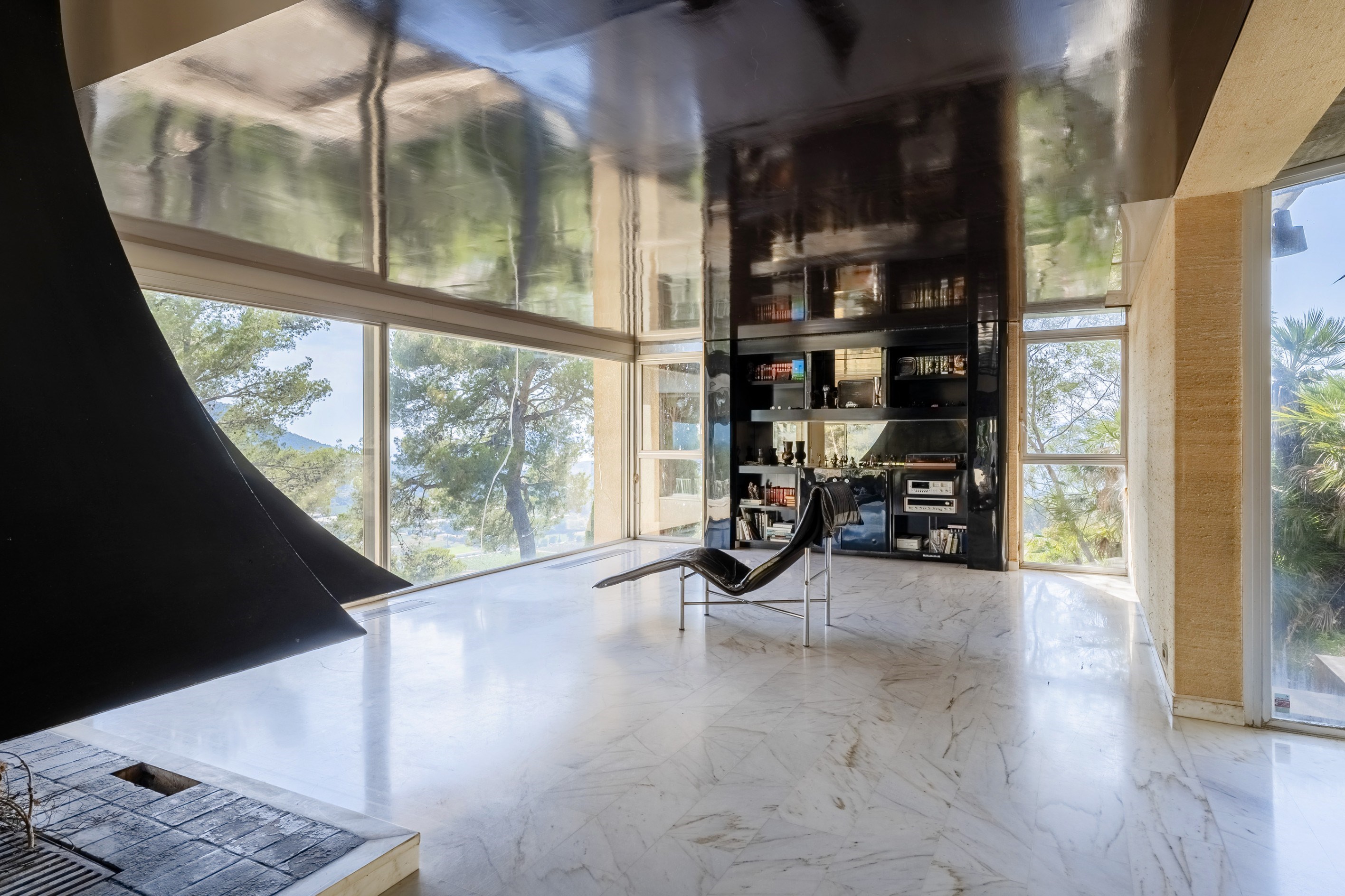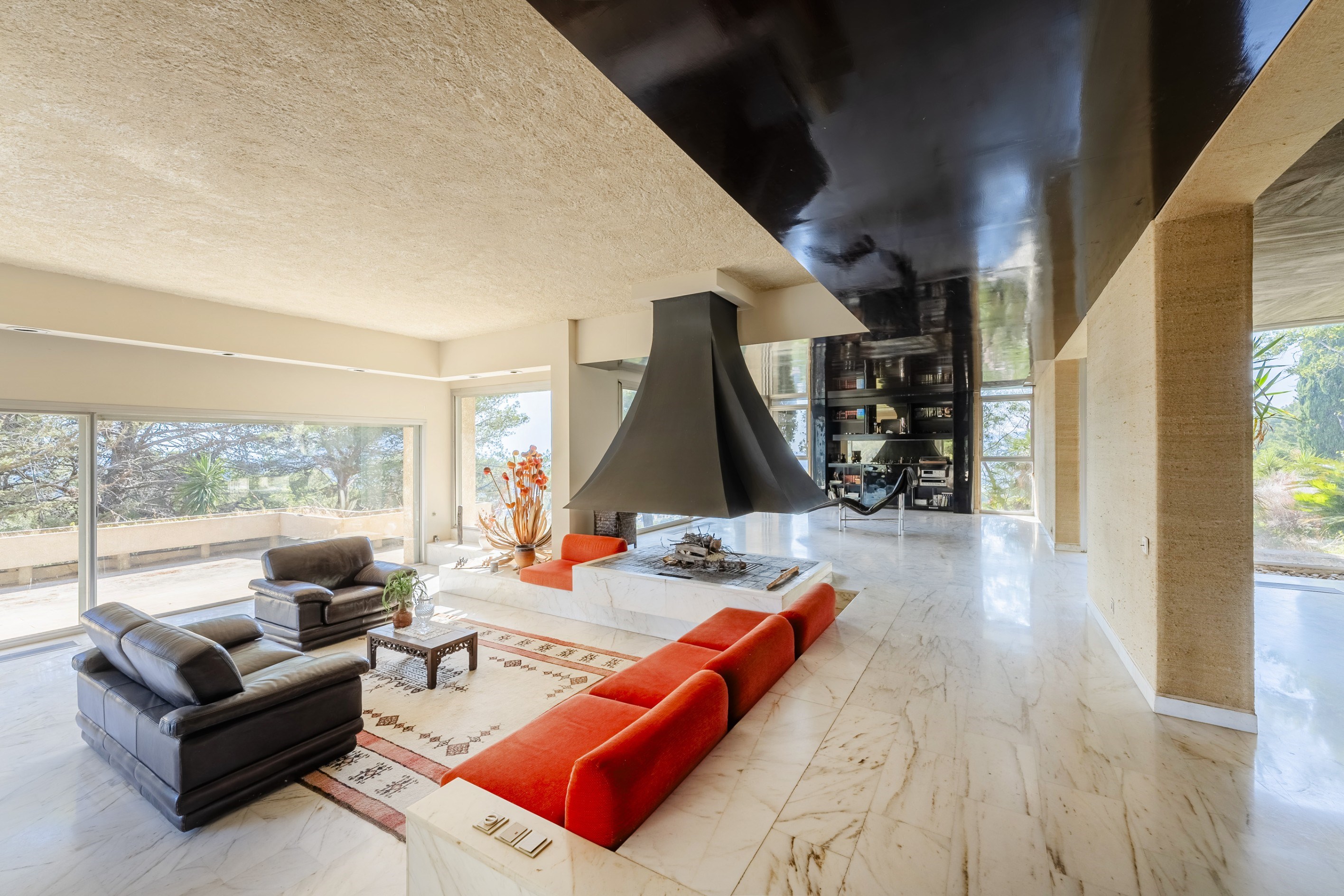 For sale in Carqueiranne, a modernist villa from the 70s designed by a renowned architect, offering exceptional sea views. Situated on an elevated position on a plot of over 3 900 sqm in a sought-after residential area, this property is a true architectural gem. With approximately 400 sqm of living space, the villa includes a vast living room of over 100 sqm with breathtaking views of the Mediterranean, a sumptuous master suite, 4 bedrooms, 2 shower rooms, and 2 bathrooms. The lower level houses a large garage, an independent studio, a games or sports room, and several storage areas. This exceptional villa will appeal to those who appreciate generous spaces and originality. Its prime location and quality features make it a rare opportunity in the Carqueiranne real estate market.