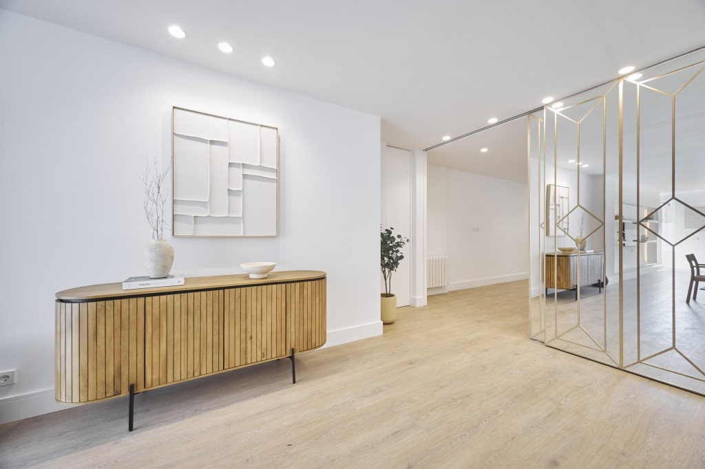 We present this property to be refurbished with a reform project to make a three en-suite bedroom flat and a large reception area. It is located on the sixth floor of a property with a modern façade built in 1966 in the best area of the Salamanca Castellana neighbourhood, in Castelló street, very close to the Instituto de Empresa.The flat is perfectly located, in the heart of the Salamanca district, a neighbourhood where family life and an intense commercial area coexist. The large number of terraces, restaurants, supermarkets and the wide range of leisure and cultural activities make this enclave the ideal place for both permanent residence and investment. It is perfectly communicated by public transport with any point of Madrid.The property of 175 meters can be distributed according to the project in an entrance hall, living room with two rooms and equipped with a large window to the street through which it receives a beautiful natural light. Beautiful kitchen integrated in the living room next to the dining area, furnished and equipped with appliances and furniture made to measure, a courtesy toilet completes the area. In the rest area there is a large exterior master bedroom, en suite with two windows facing the street, large dressing room and bathroom. Another two family bedrooms, both en suite with their corresponding bathrooms and large wardrobe areas, both bedrooms are facing a quiet and peaceful courtyard. It is worth highlighting the magnificent qualities of the materials that would be used in the reform of the property, solid wooden floors, double glazed windows with thermal break, heating and air conditioning throughout the house by ducts with independent regulators in each room. It has a garage space with direct access in the same building and a storage room under the roof. Included in the price.The property is an opportunity for investors or family housing as it is located very close to Velázquez street in the heart of the golden mile and perfectly communicated by public transport with the whole city.