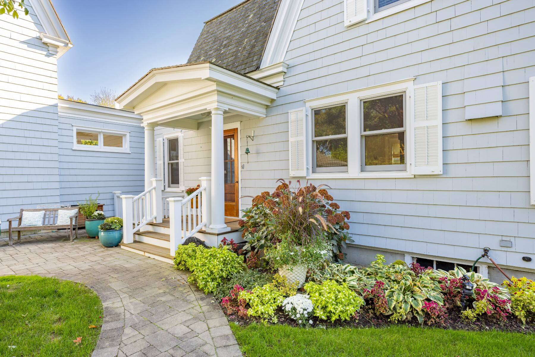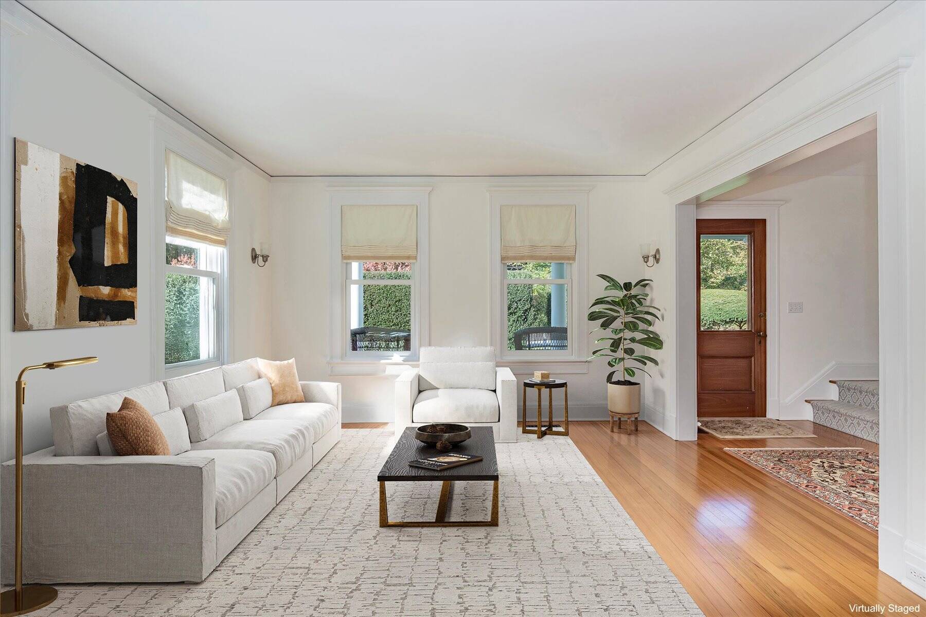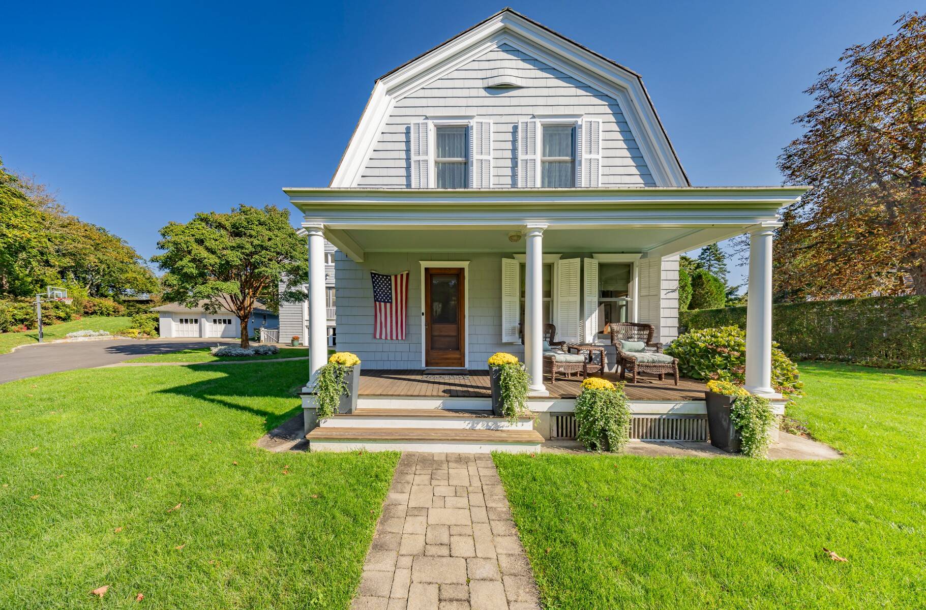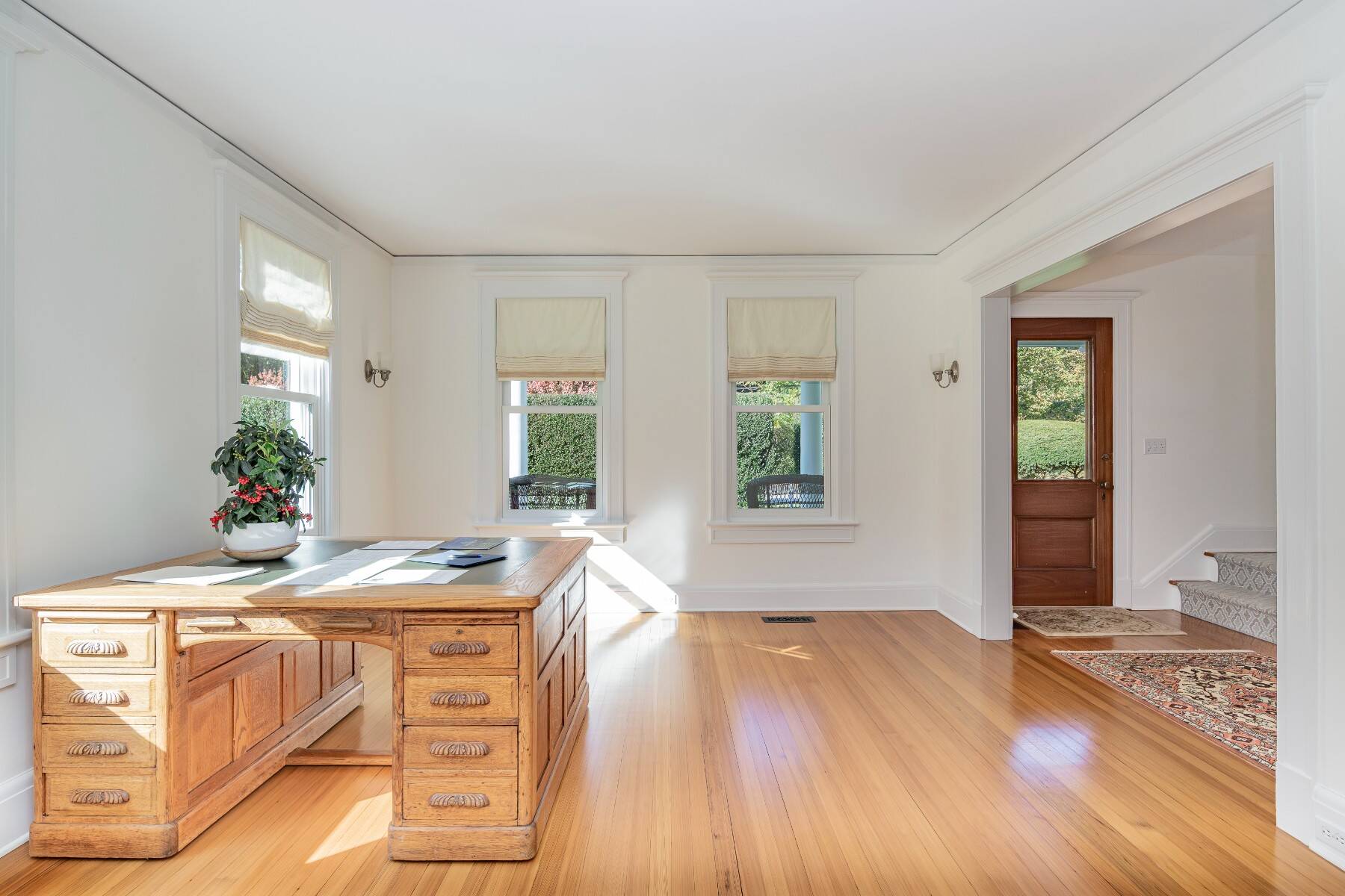 This beautifully restored classic home is set on a lush, full acre in Southampton Village, seamlessly blending timeless charm with modern comfort and exceptional potential. The first floor features a gracious formal living room, an elegant dining room, and a sunlit family room with expansive windows and French doors that open to a large rear deck-ideal for effortless indoor-outdoor living. The stylish, well-appointed kitchen is outfitted with stainless steel appliances, perfect for everyday living and entertaining. A flexible bedroom or office and a full bath complete the main level, while a detached two-car garage adds convenience. Upstairs, the private primary suite offers an ensuite bath and a spacious mahogany deck, creating a peaceful retreat. Two additional guest bedrooms share a full bath, providing comfortable accommodations for family or visitors. A true standout is the impressive, light-filled 2,200 sq. ft. attached studio. Designed with cathedral ceilings, skylights, and incredible scale, this space offers endless possibilities-ideal as an art studio, home office, or guest quarters. The lower level spans 22' x 50' with 10-foot ceilings, while the upper level features two expansive rooms with soaring 23-foot ceilings. Exterior access via a dedicated staircase seamlessly connects the studio to the backyard entertaining areas. Additional highlights include a charming front porch, mature landscaping, and privacy hedging, along with a detached two-car garage, a shed, and high-end mechanicals including 400-amp electric service, two Aprilaire systems, and geothermal air conditioning with heating capability. Set on a meticulously landscaped acre-rare within the Village at this price-this exceptional property offers ample room for a pool, gardens, or future expansion, presenting a unique opportunity to create a true retreat.