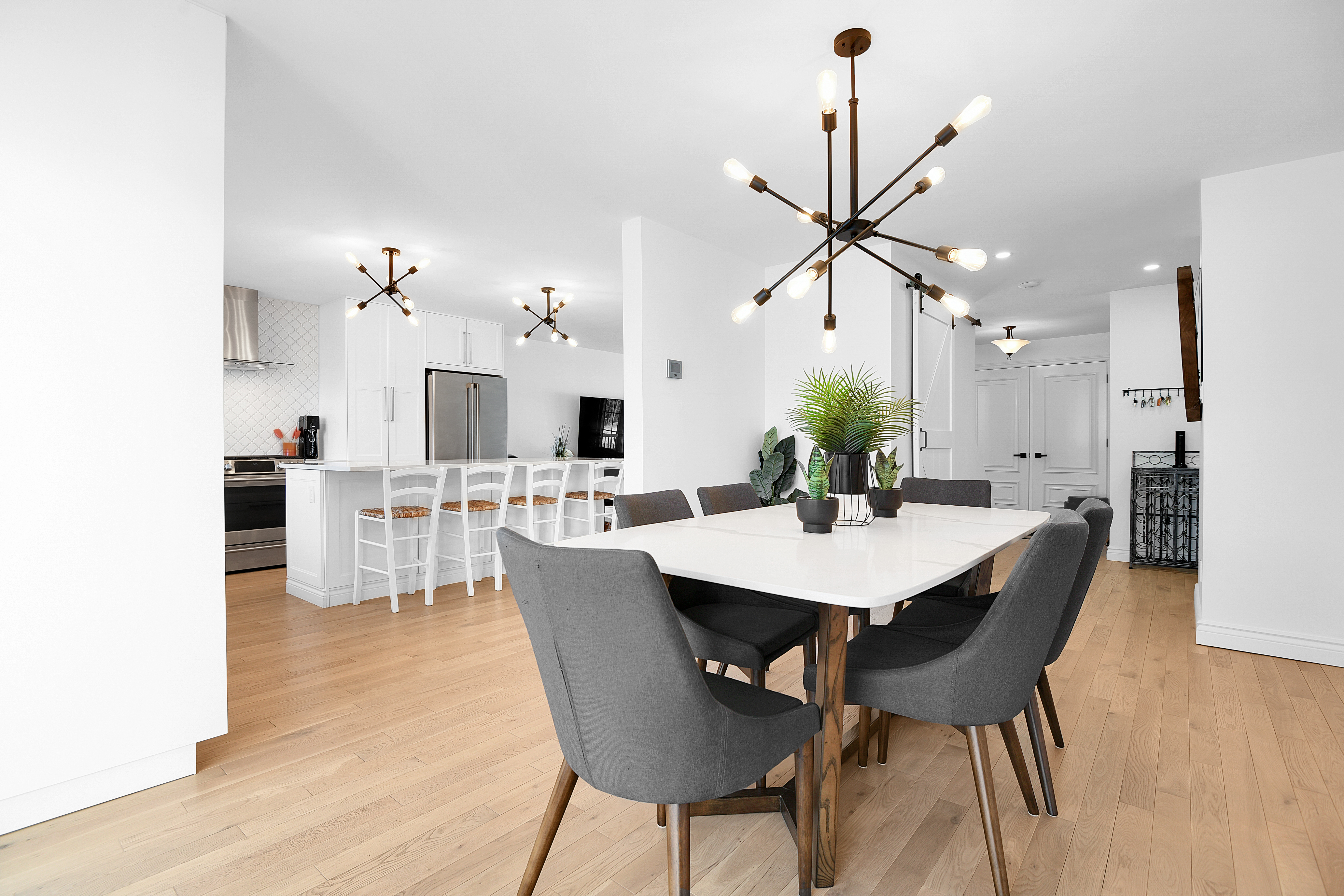 This beautiful, renovated residence (2020/2021) offers a unique and incredible living experience perfect for a multi-generational family. One side of the home offers a spacious, 4-bedroom, 2-storey layout and the other offers a fabulous bungalow-style space with a huge primary suite. The two sides are connected by a shared basement and triple attached garage, which offers inside entry to both parts of the home. Each side has its own entrance. The main floor was previously connected, a change which could easily be reversed by adding back a doorway.