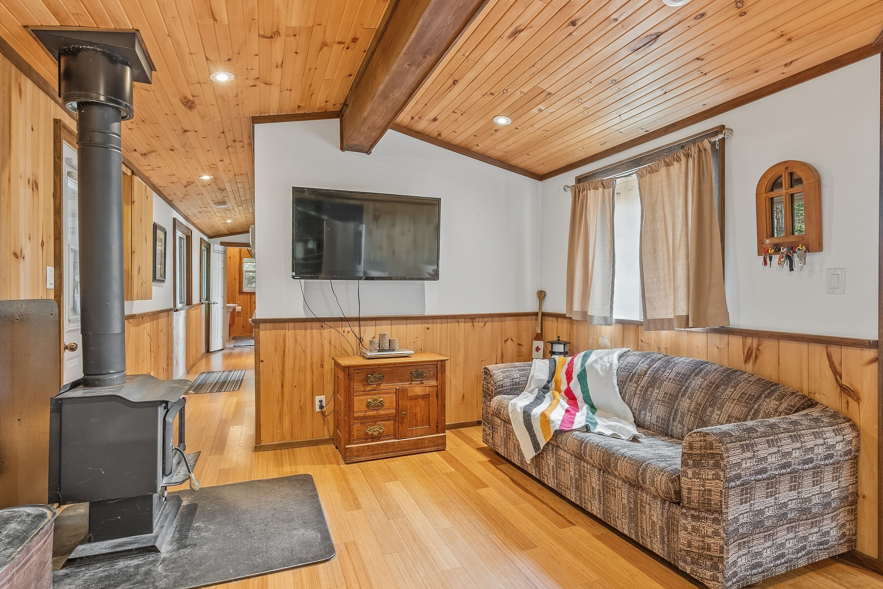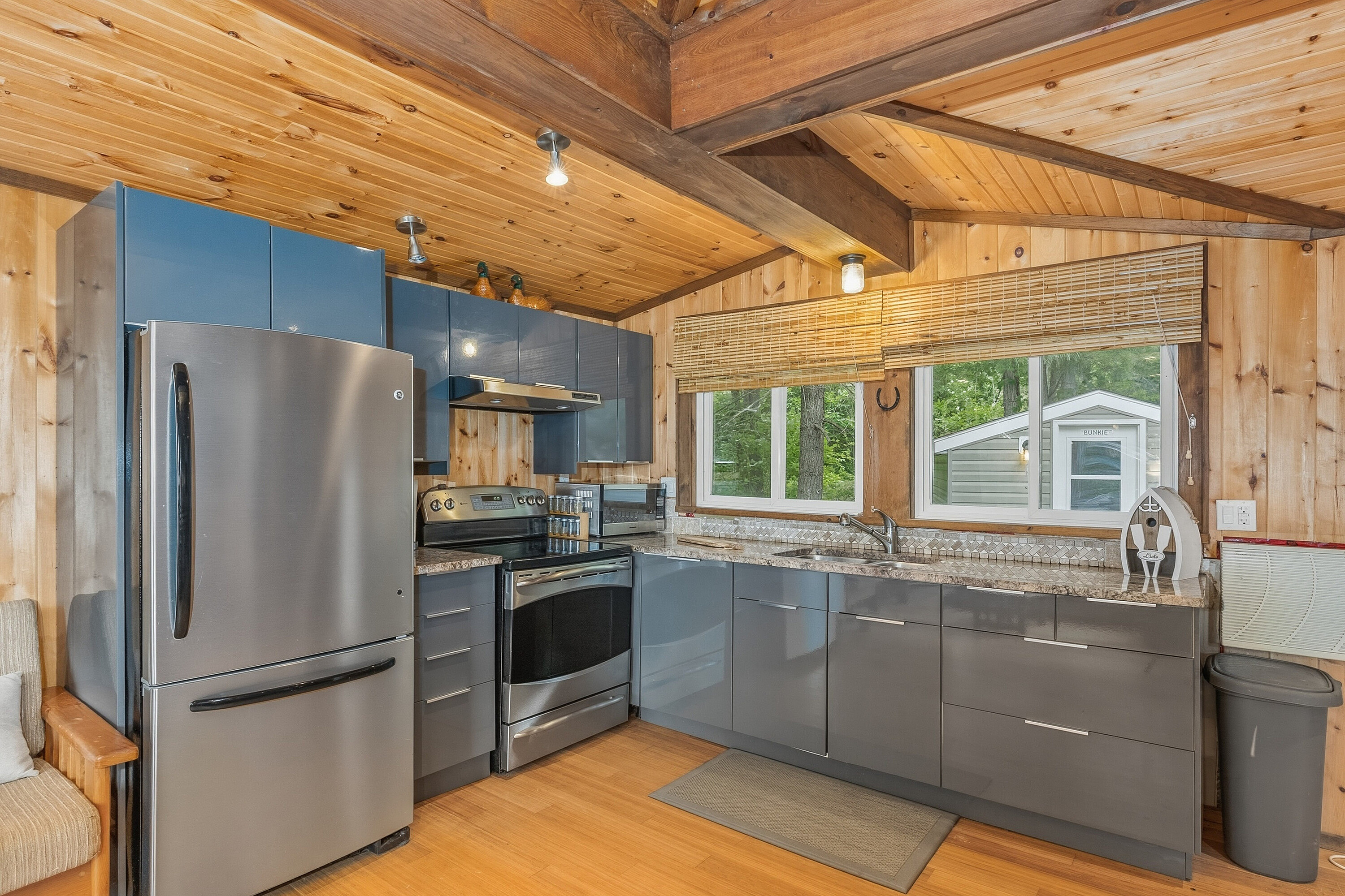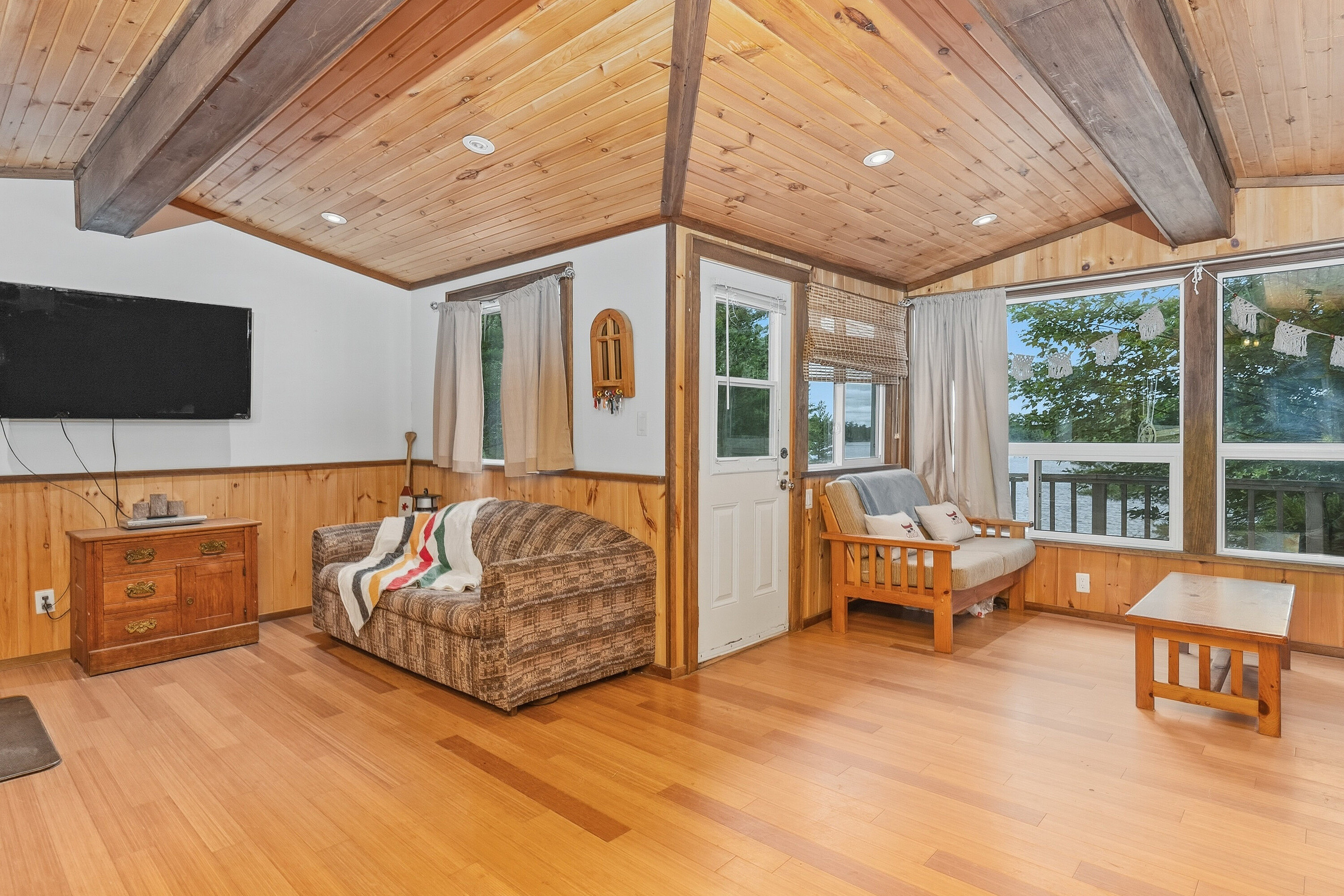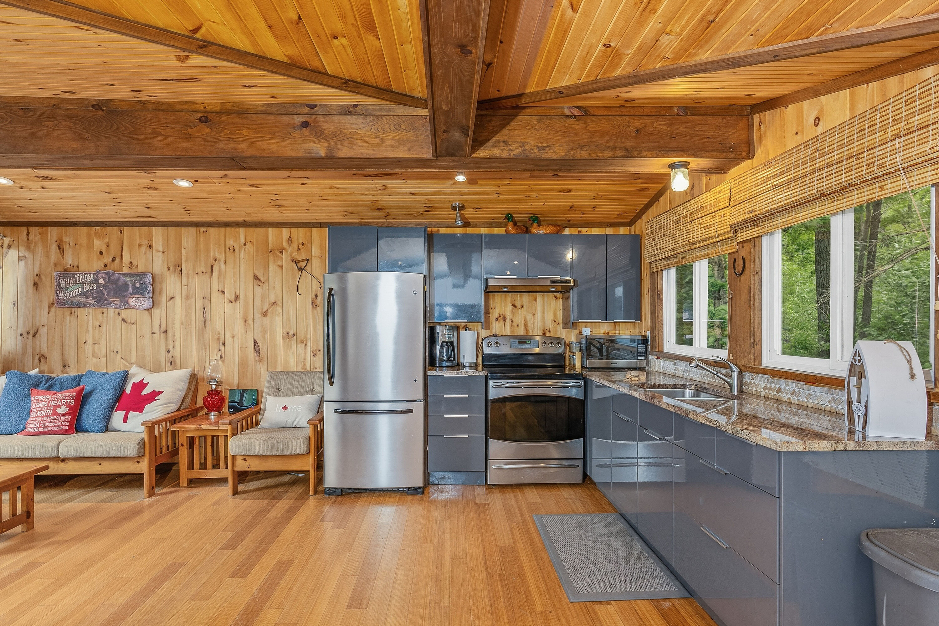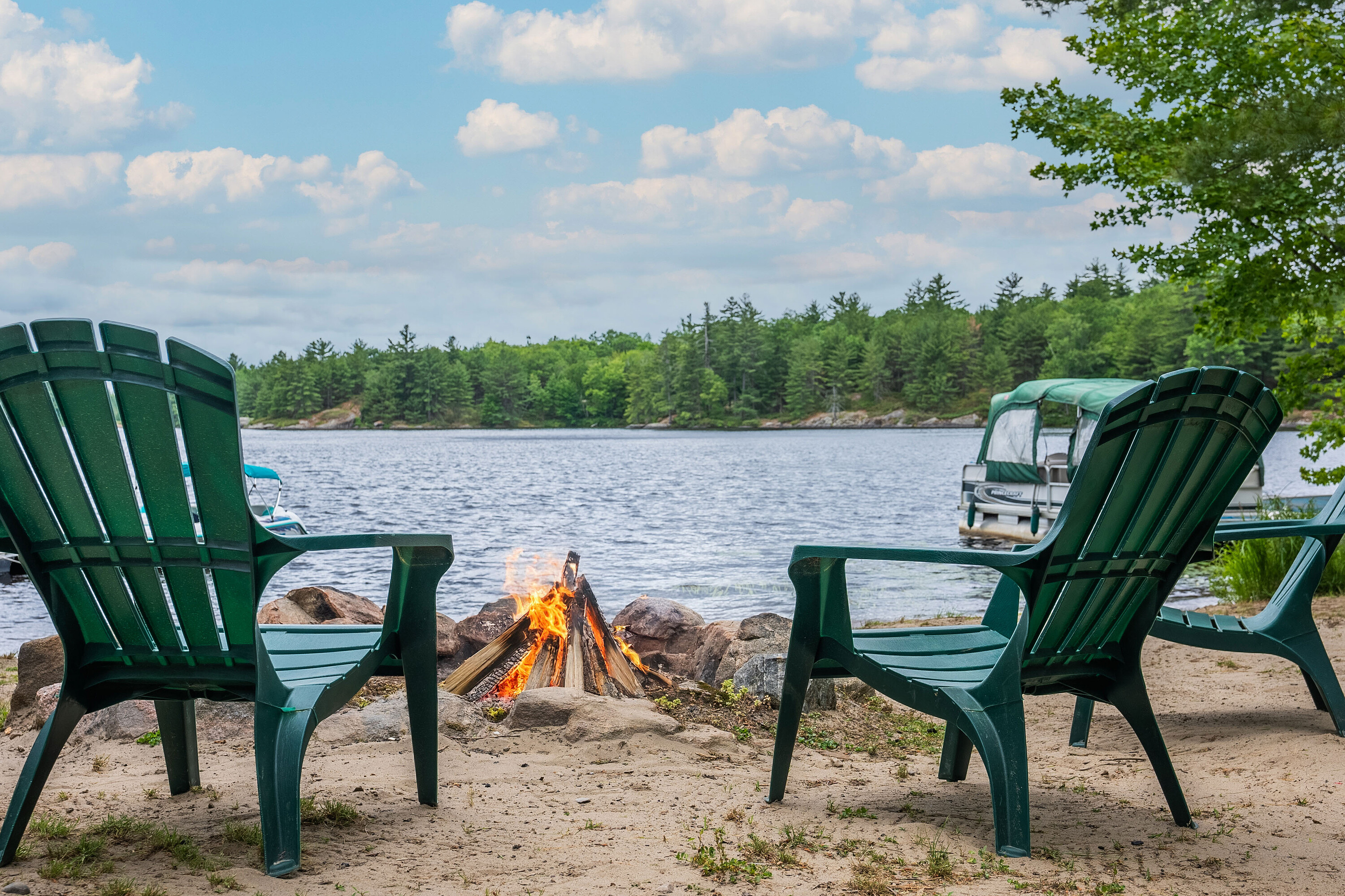 If stealing the spotlight in family lawn games (or just stealing a little sunset quiet time outside) excites you, this expansive lakeside yard is calling your name! Boat access from the mainland brings you to an exceptional west-facing retreat with over 337 feet of private shoreline, capturing iconic Muskoka sunsets and expansive lake views. Set in a quiet bay shared by just two other cottages and backed by stretches of crown land, the setting is both private and unspoiled. The 1.5-acre property features a level, granite shoreline with a sandy, shallow-entry beach-ideal for families and easy swimming-while the dock extends into deeper water. A raised waterside gazebo offers the perfect place to take in the view, and a lakeside shed keeps all your gear organized and within reach. Inside, the open-concept cottage offers two bedrooms plus a flexible laundry room that could be converted into a third, along with a cozy wood stove and warm pine finishes throughout. A separate insulated bunkie provides comfortable overflow space for guests. Offered fully turnkey, this package includes a 50HP pontoon boat and a 1987 StarCraft V6 - arrive and start enjoying cottage life immediately. Recent updates include a new water line (2024), septic lift pump (2022), new bunkie flooring, and deck stairs with dock (2021), along with fresh beach sand added in 2022. Earlier improvements include a modernized kitchen with granite countertops, and upgrades to electrical, plumbing, windows, and septic. Evenings are best spent by the fire pit or under the stars along your private shoreline. Located just under two hours from the GTA, the property includes two parking spaces and a boat slip at Denne's Marina (yearly fee), just a five minute boat ride away-making access simple and convenient. A move-in-ready Kahshe Lake cottage with space, privacy, and all the essentials already in place. Your three-season turnkey cottage is ready to enjoy!