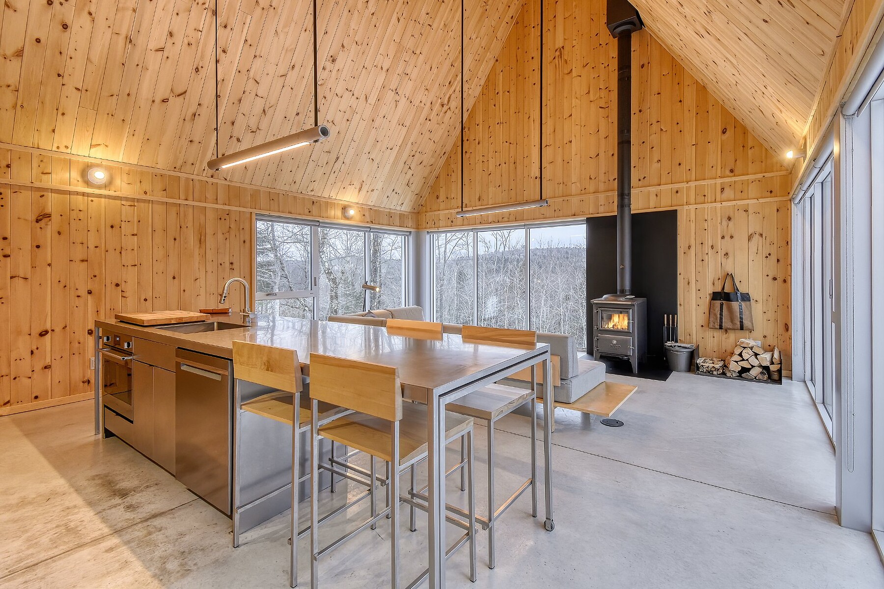 Nestled in the heart of nature in Chertsey, this exceptional chalet stands out with its bold architecture and seamless integration with the environment. Spanning three levels, its all-wood interior, heated concrete floors and large windows create a warm yet contemporary ambiance. High ceilings enhance the sense of space and natural light. As an owner, you become part of a rental pool managed by Habitat Beside, which handles short-term rentals. A unique opportunity to invest in a turnkey property while enjoying the freedom to use it at your convenience.