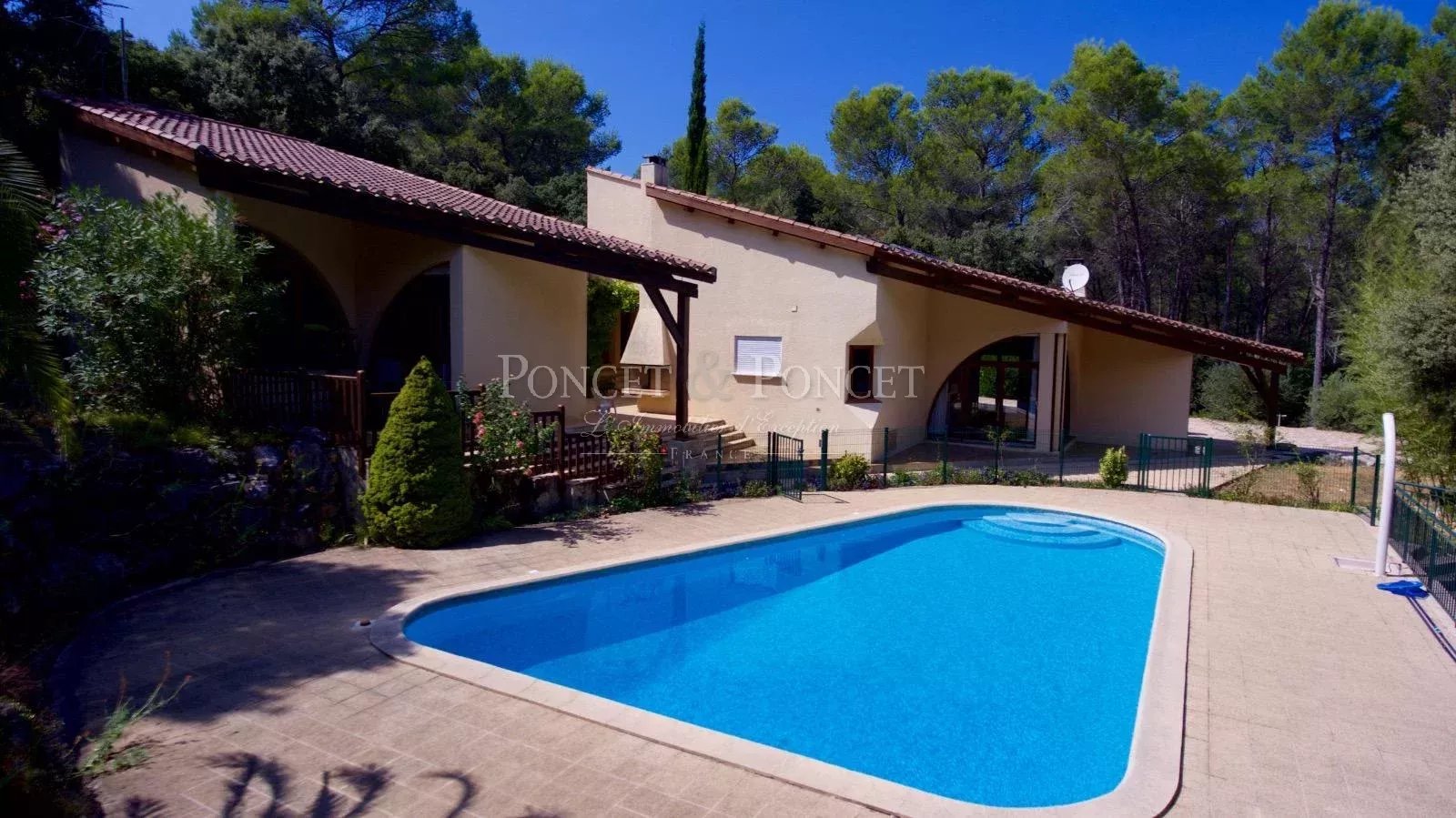 Five minutes north of Montpellier in a green setting, a classic and contemporary architect-designed villa comprising three buildings under a shared roof with a living area of 282m² plus 106m² of outbuildings.