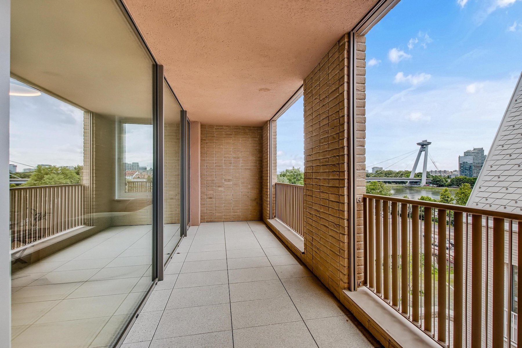 Slovakia Sotheby’s International Realty is pleased to offer for rent a bright two-bedroom apartment located on the 4th floor of the new urban development Vydrica, nestled beneath Bratislava Castle. With a total area of 85 sqm and panoramic views of the Danube River, the SNP Bridge and the iconic UFO Tower, this home is ideal for individuals, couples or small families.