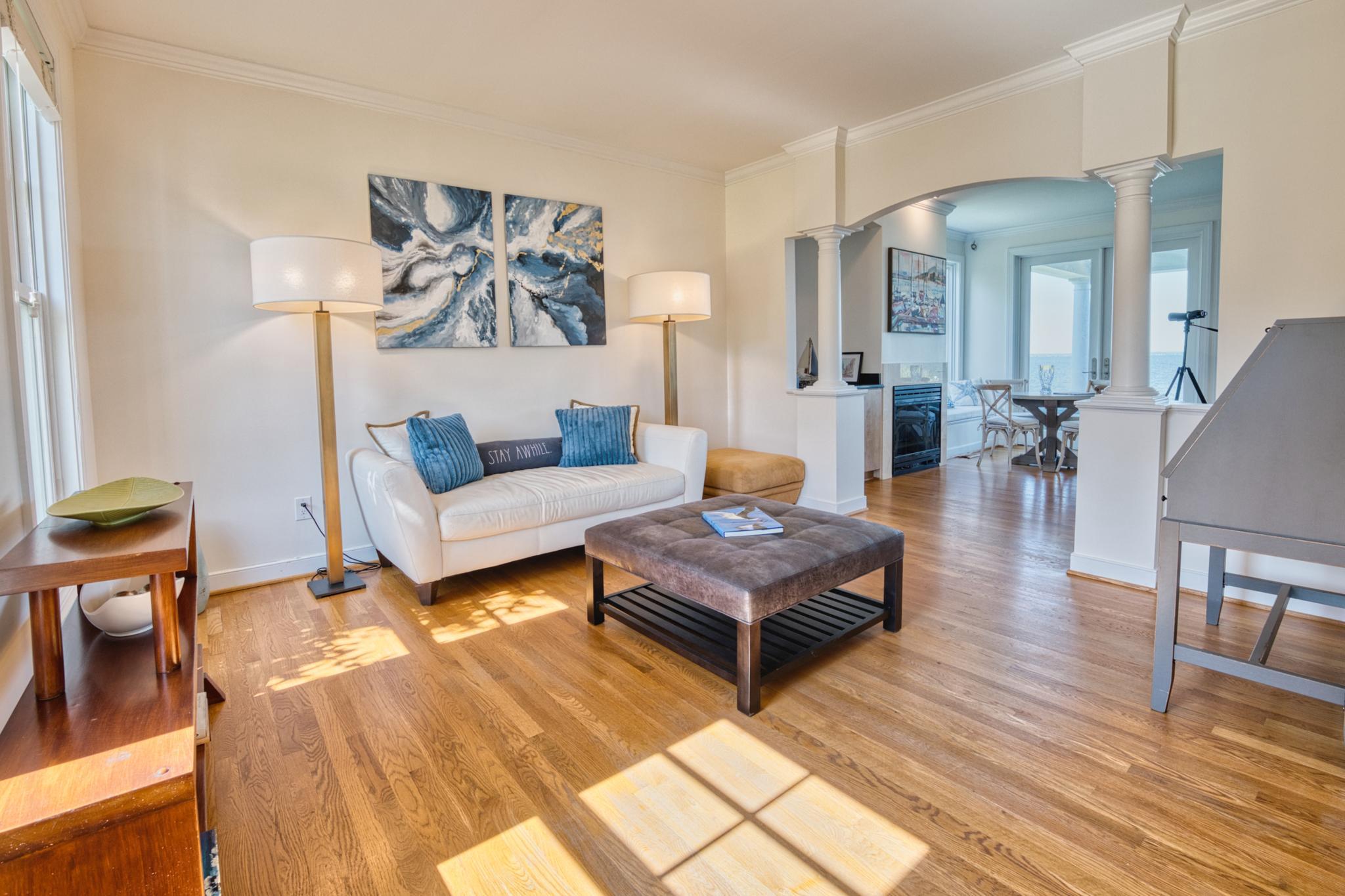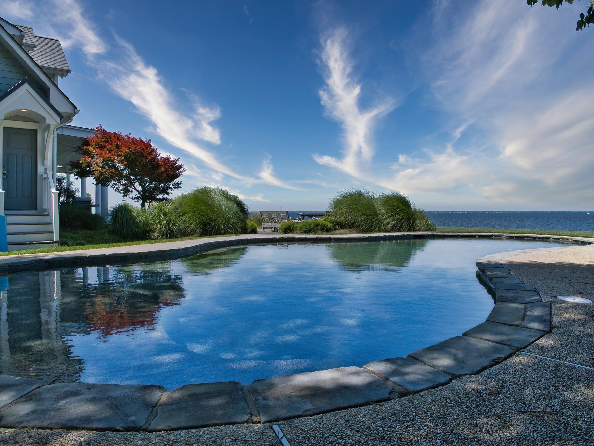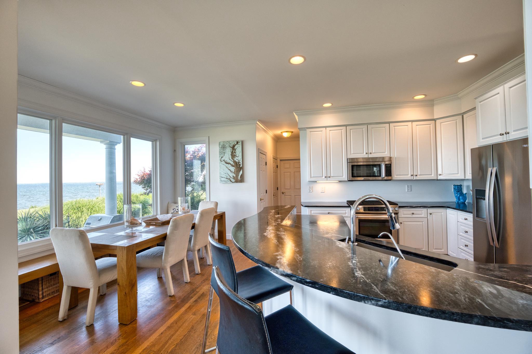 Welcome to a Chesapeake Bay retreat where spectacular views and unparalleled waterfront living await. Perfectly positioned on a serene cul-de-sac, this elegantly appointed home offers breathtaking vistas of the iconic Bay Bridge, majestic lighthouses, and sunsets that will leave you speechless.Upon entering the two-story foyer, the formal living room and bonus room welcome you and provide ample space for unwinding or hosting guests. The thoughtfully designed interior offers four bedrooms and four and a half baths, including an upper-level primary suite with a cozy sitting room and a yacht-inspired bathroom. On the lower level, a fifth bedroom studio suite features an ensuite bath, sitting area, and granite bar top — ideal as an in-law or au pair suite. A separate entrance to the outdoors provides additional flexibility and privacy.Natural light floods every room and frames the serene water views at every turn, accentuating the open-concept kitchen, dining area, and family room that flow seamlessly into the outdoor covered living spaces.Three sets of oversized French doors open to the stunning waterside patios, featuring a PebbleTec saltwater heated pool, lush mature landscaping, and perfect elevation outside of the flood zone — a rare combination that enhances both beauty and peace of mind. A covered patio and pool cabana with a dedicated pool bath create the perfect environment for relaxing or entertaining as you take in the beauty of the bay.The private dock with two boat lifts (12,500 lb and 30,000 lb) provides endless opportunities for fishing, crabbing, and boating, completing the ultimate waterfront lifestyle.This home is more than a residence—it’s a masterpiece of design and nature, crafted to immerse you in the soothing rhythm of life on the bay.Welcome Home.